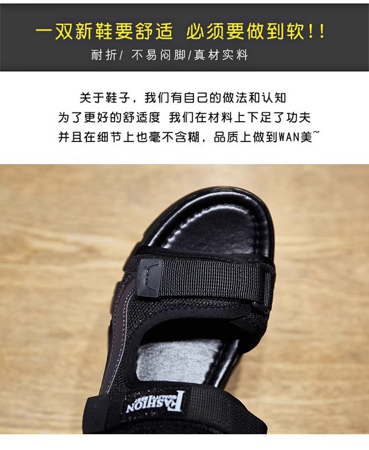 简约露趾休闲凉鞋男夏季外穿沙滩鞋小众潮牌溶解厚底魔术贴凉拖鞋