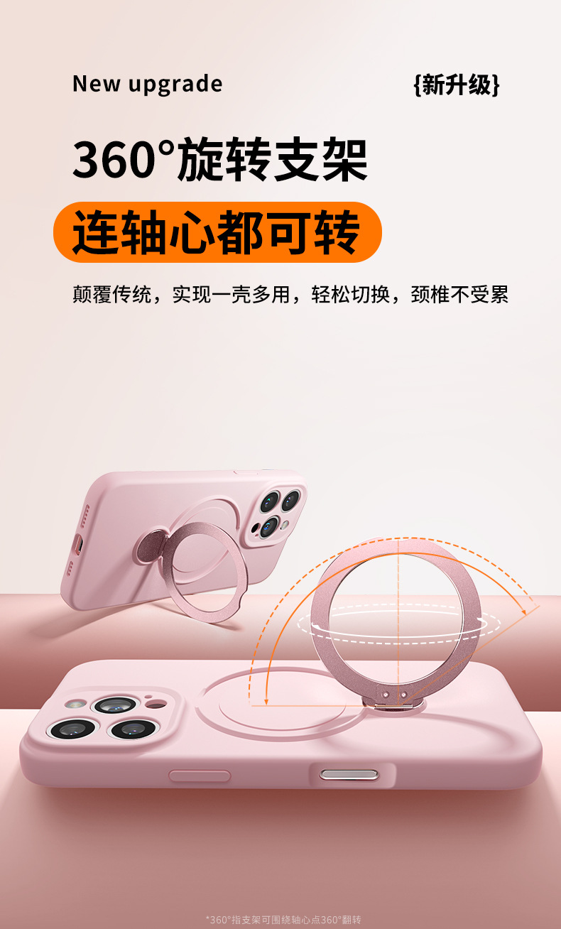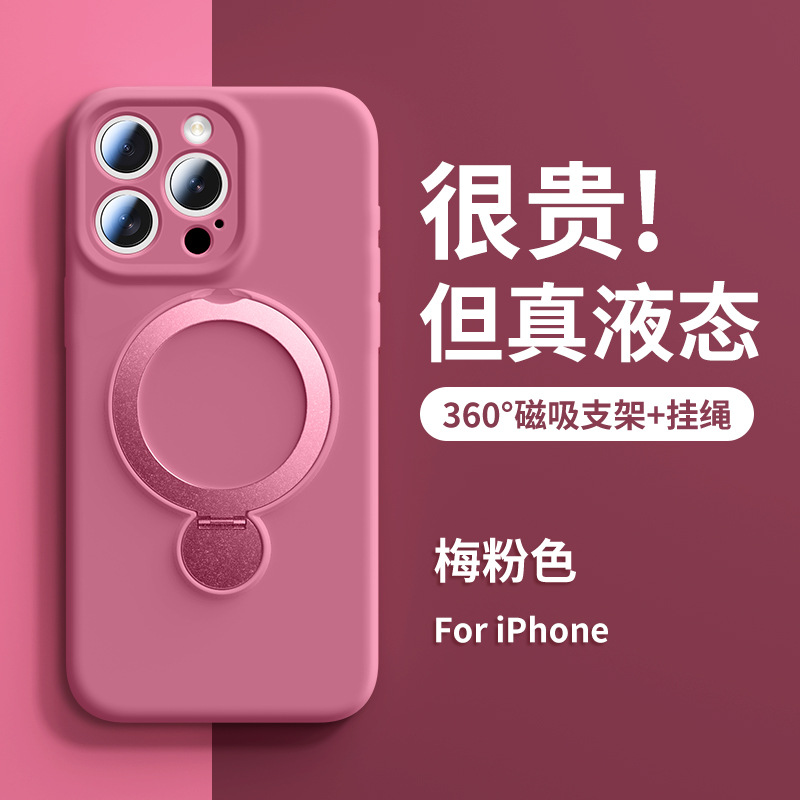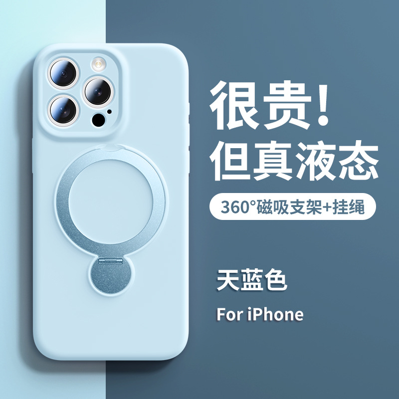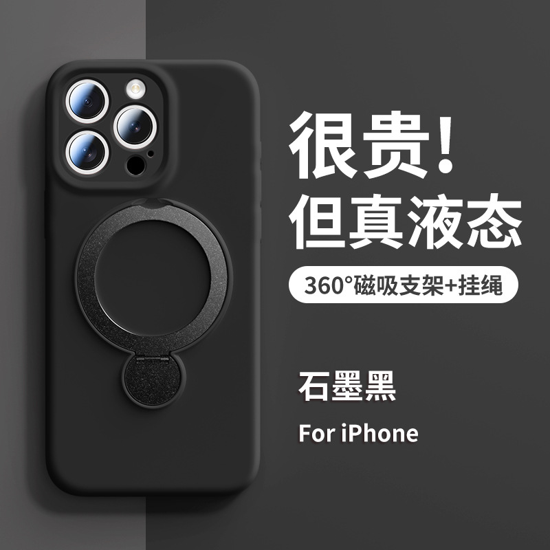 360 ° 아이폰17 액체 실리콘 휴대폰 케이스에 적합한 지지대, 아이폰16프로 풀커버 케이스, 끈 포함