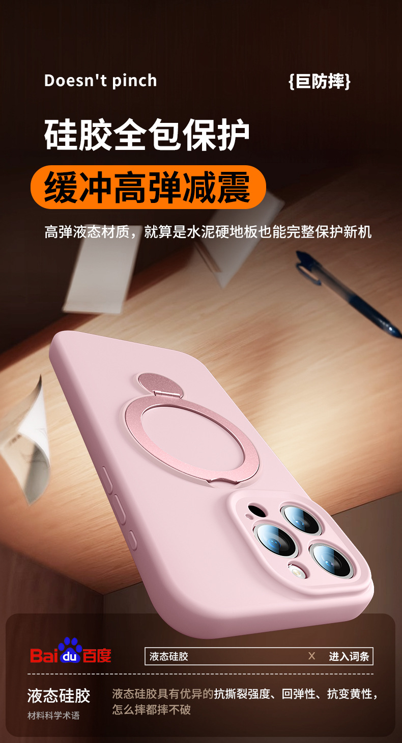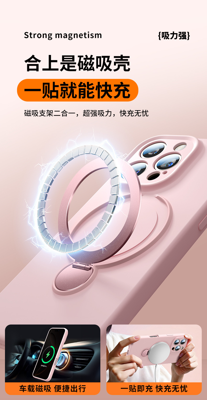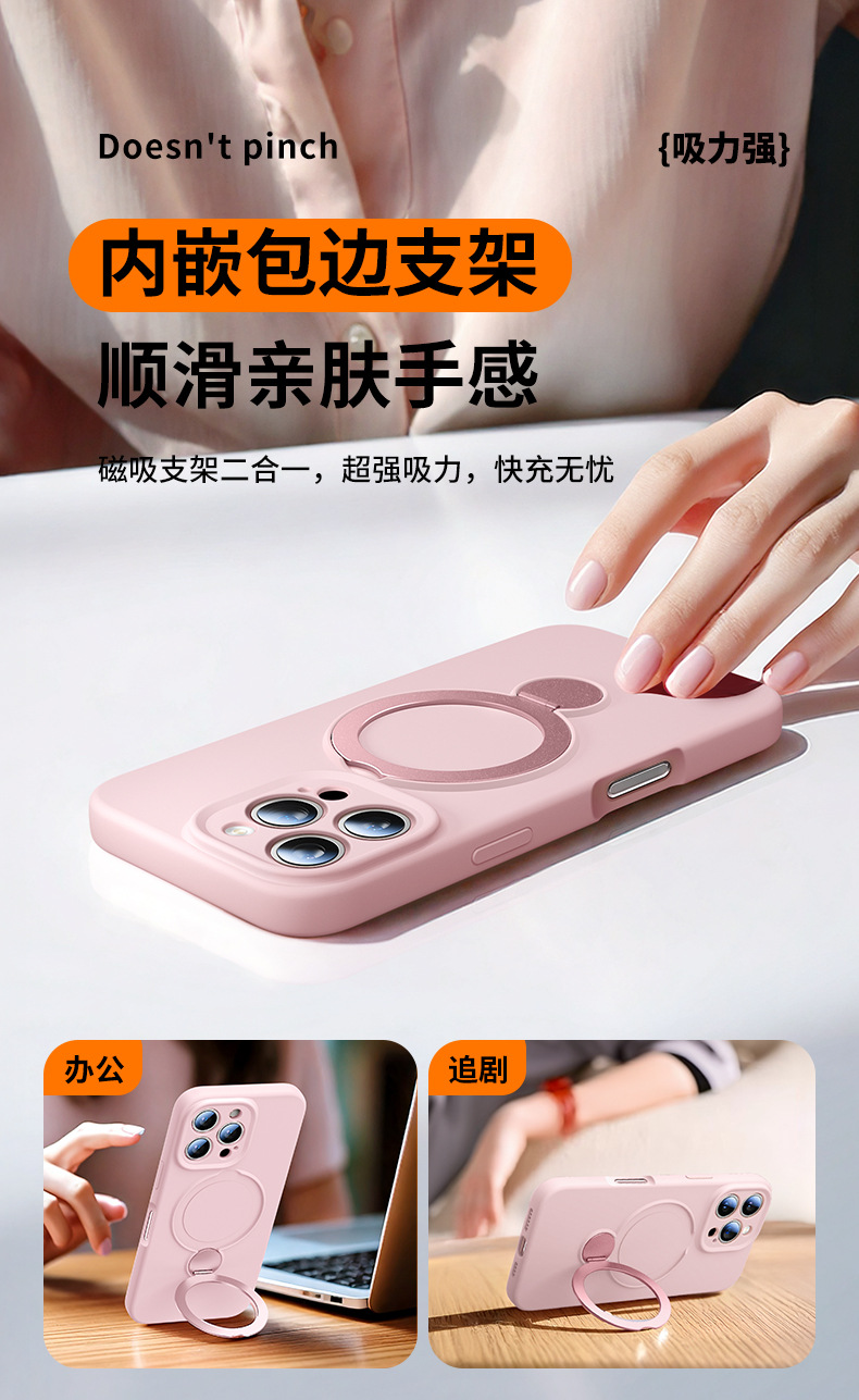 360 ° 아이폰17 액체 실리콘 휴대폰 케이스에 적합한 지지대, 아이폰16프로 풀커버 케이스, 끈 포함