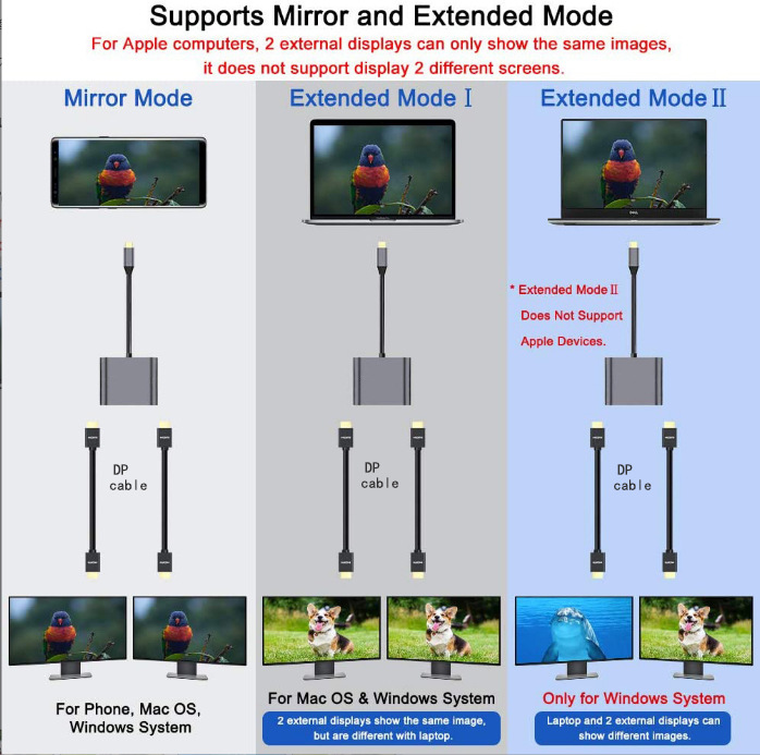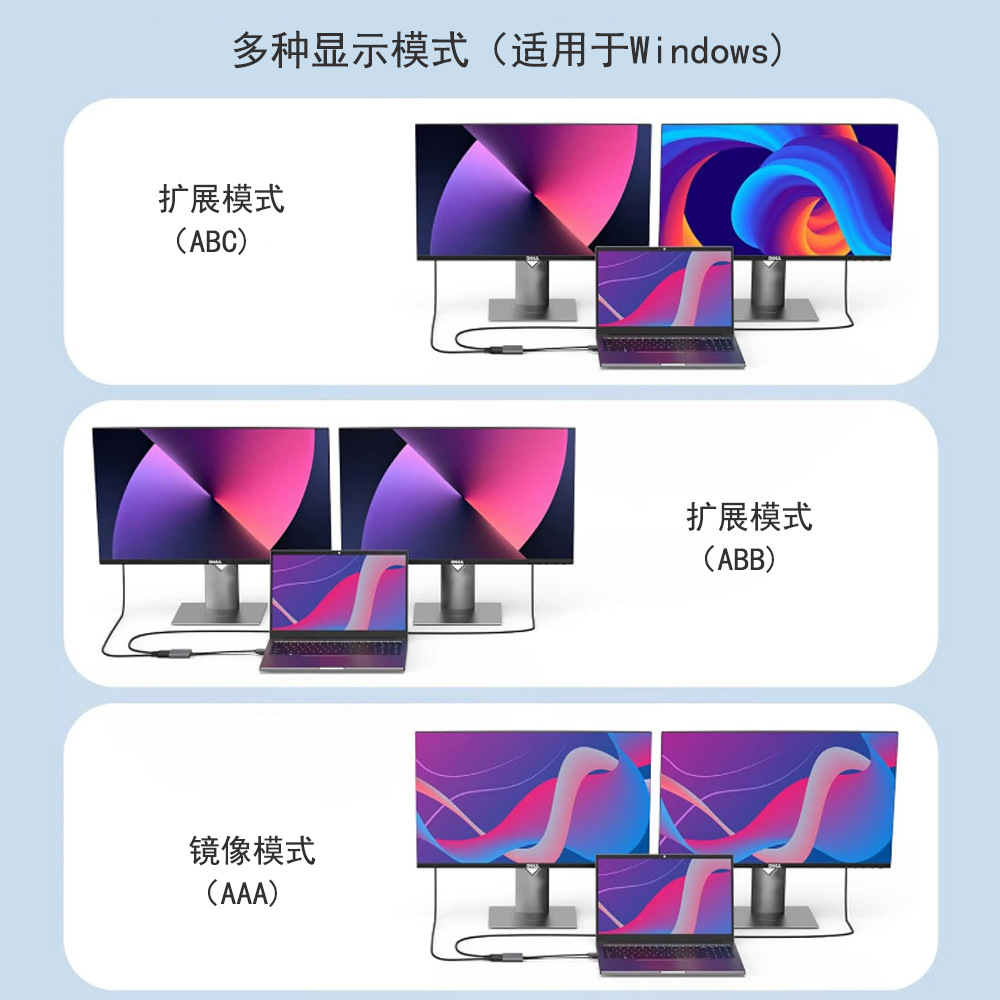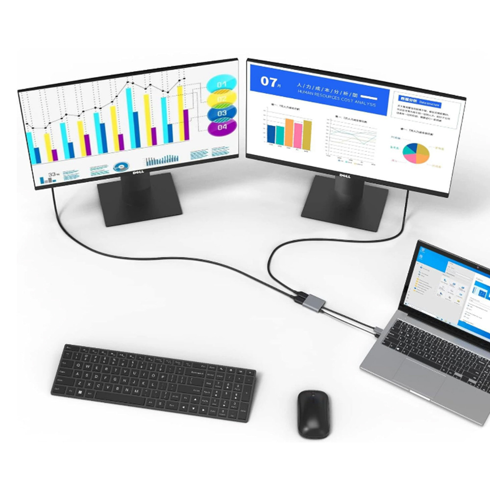 这款高端USB C转双DP允许您将笔记本电脑的内容显示到2个显示器上,最高分辨率支持3840*2160@144Hz。双DP扩展显示时支持3840*2160@60Hz。 在工作中使用2台显示器绝对可以提升将您的工作效率提升到一个更高的水平。
