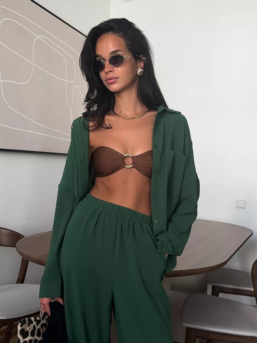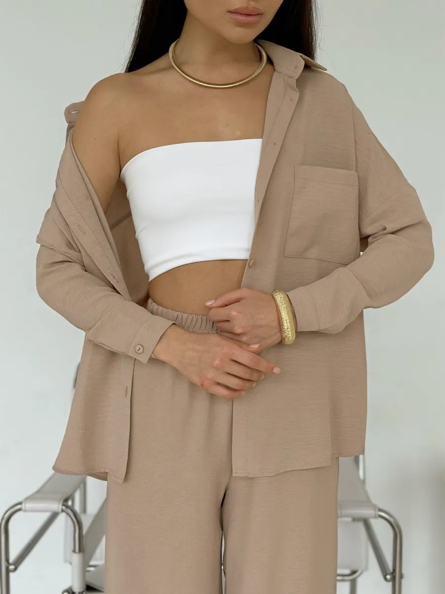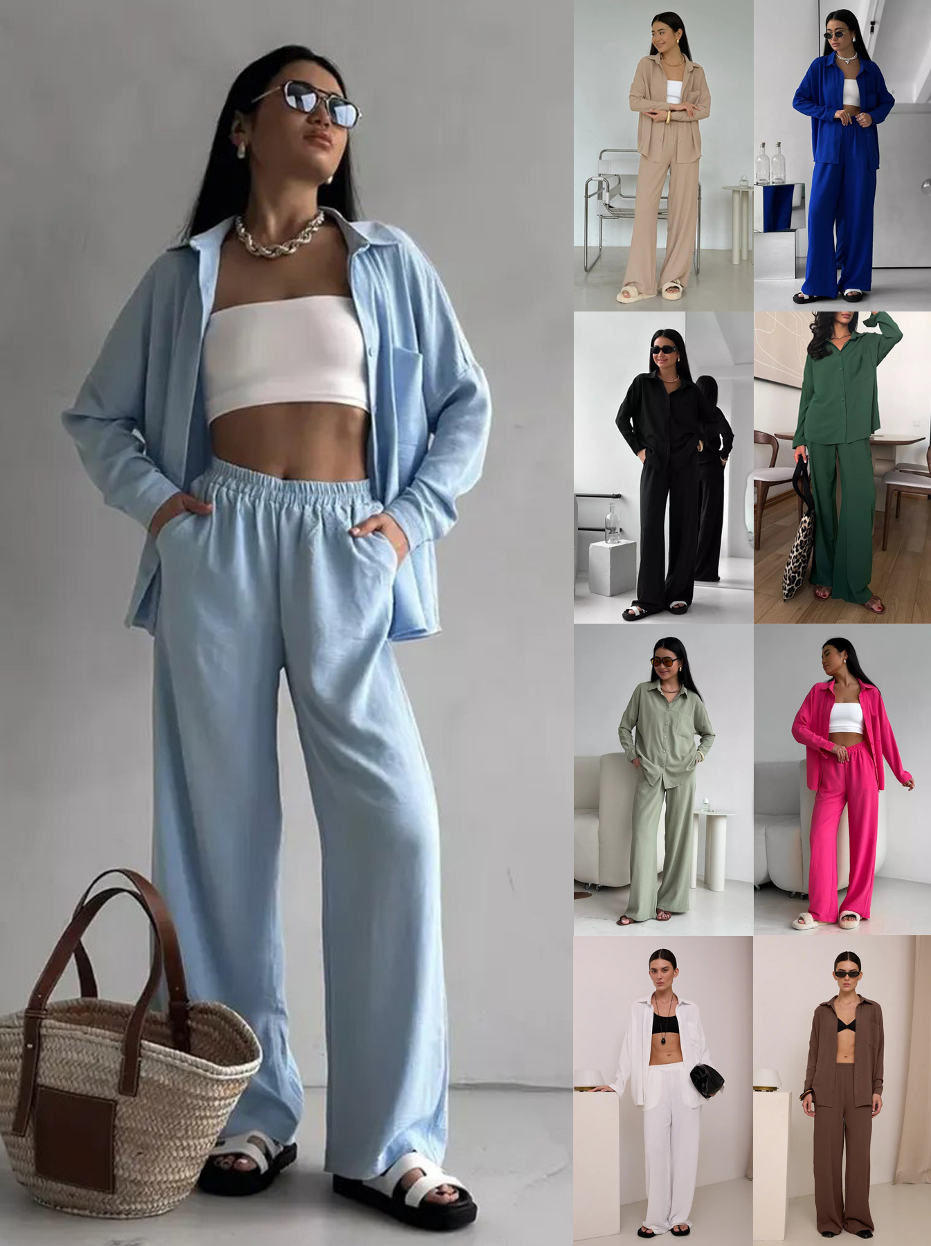 2025 크로스보더 유럽과 미국 아마존 여성 솔리드 컬러 카디건 포켓 캐주얼 와이드 레그 팬츠 슈트스토어 가기