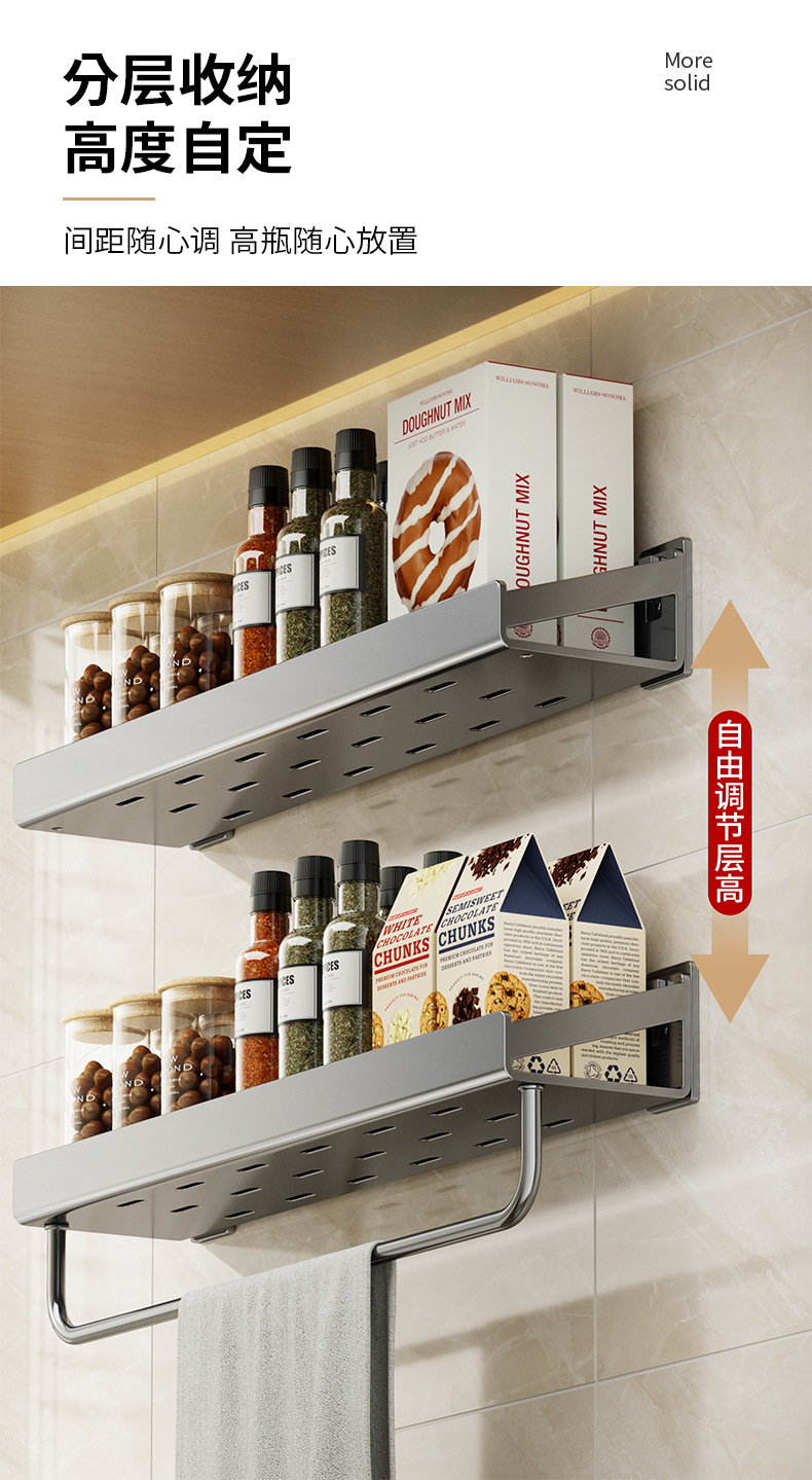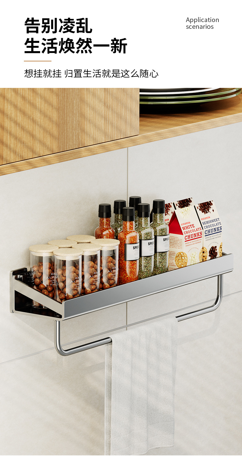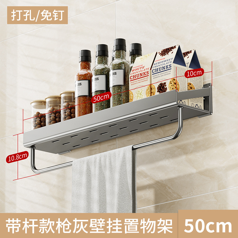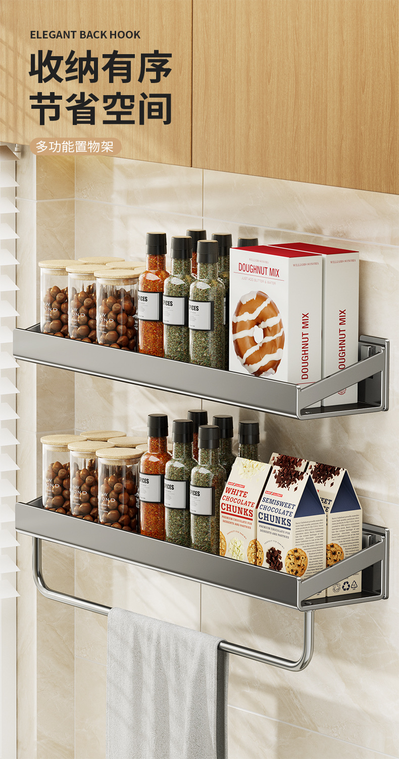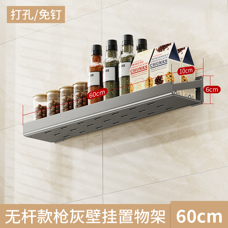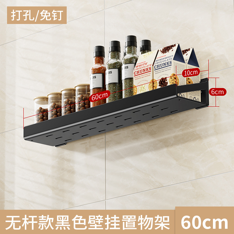 주방 수납 선반, 구멍이 없는 벽걸이형 조미료 걸이, 가정용 다기능 조미료 용품 수납 선반