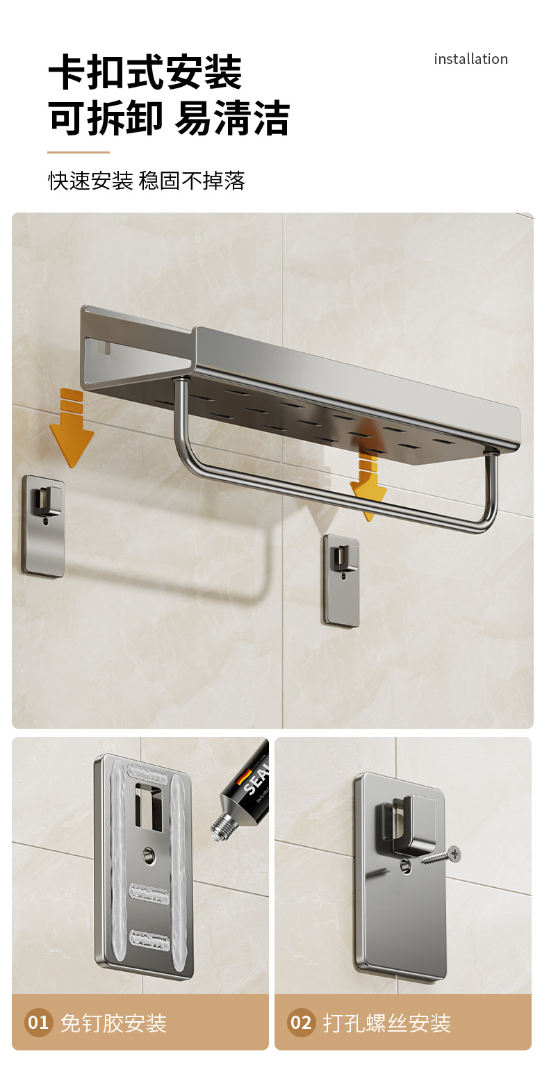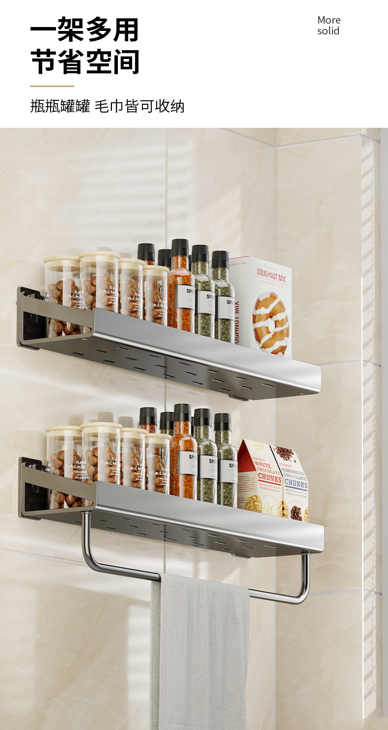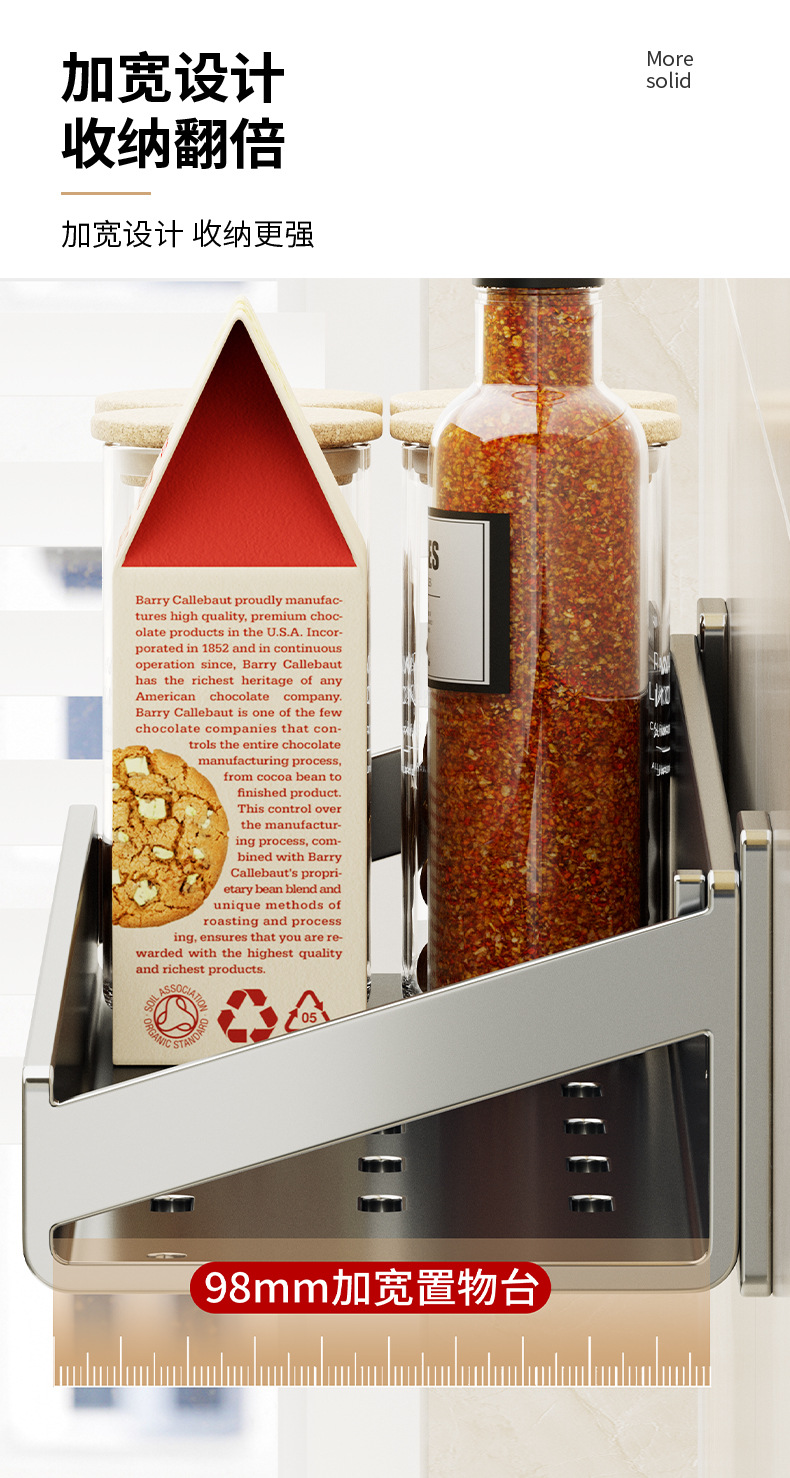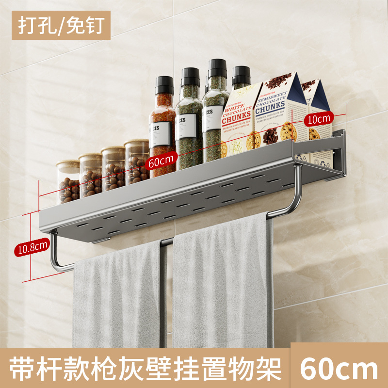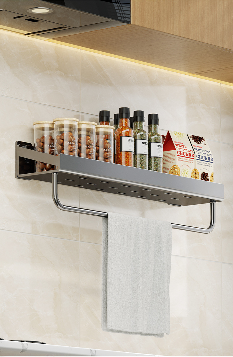 주방 수납 선반, 구멍이 없는 벽걸이형 조미료 걸이, 가정용 다기능 조미료 용품 수납 선반
