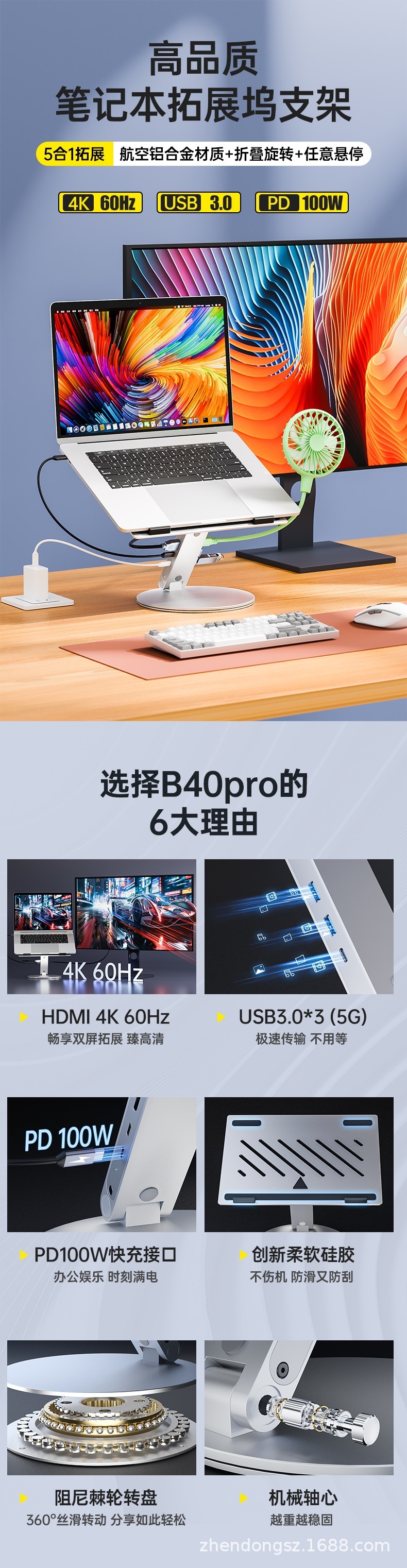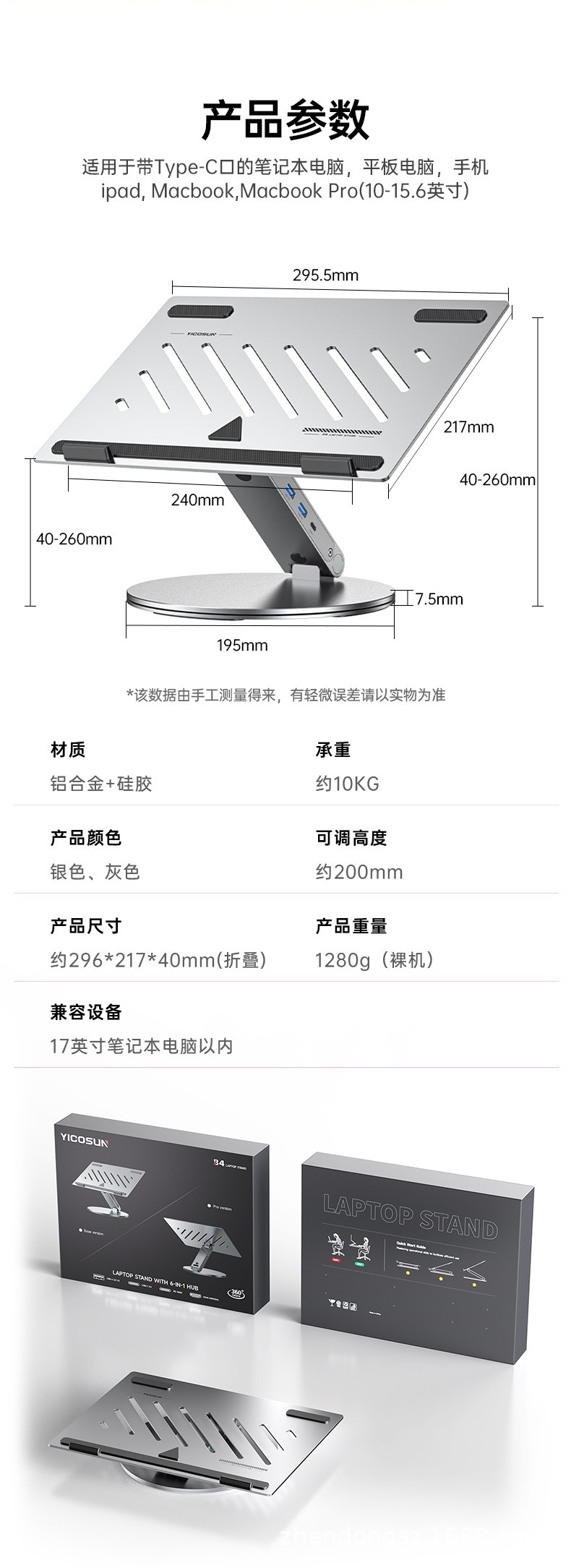 새로운 알루미늄 합금 노트북 스탠드 다기능 6-in-1 도킹 스테이션 회전식 높이 조절 냉각 브래킷스토어 가기