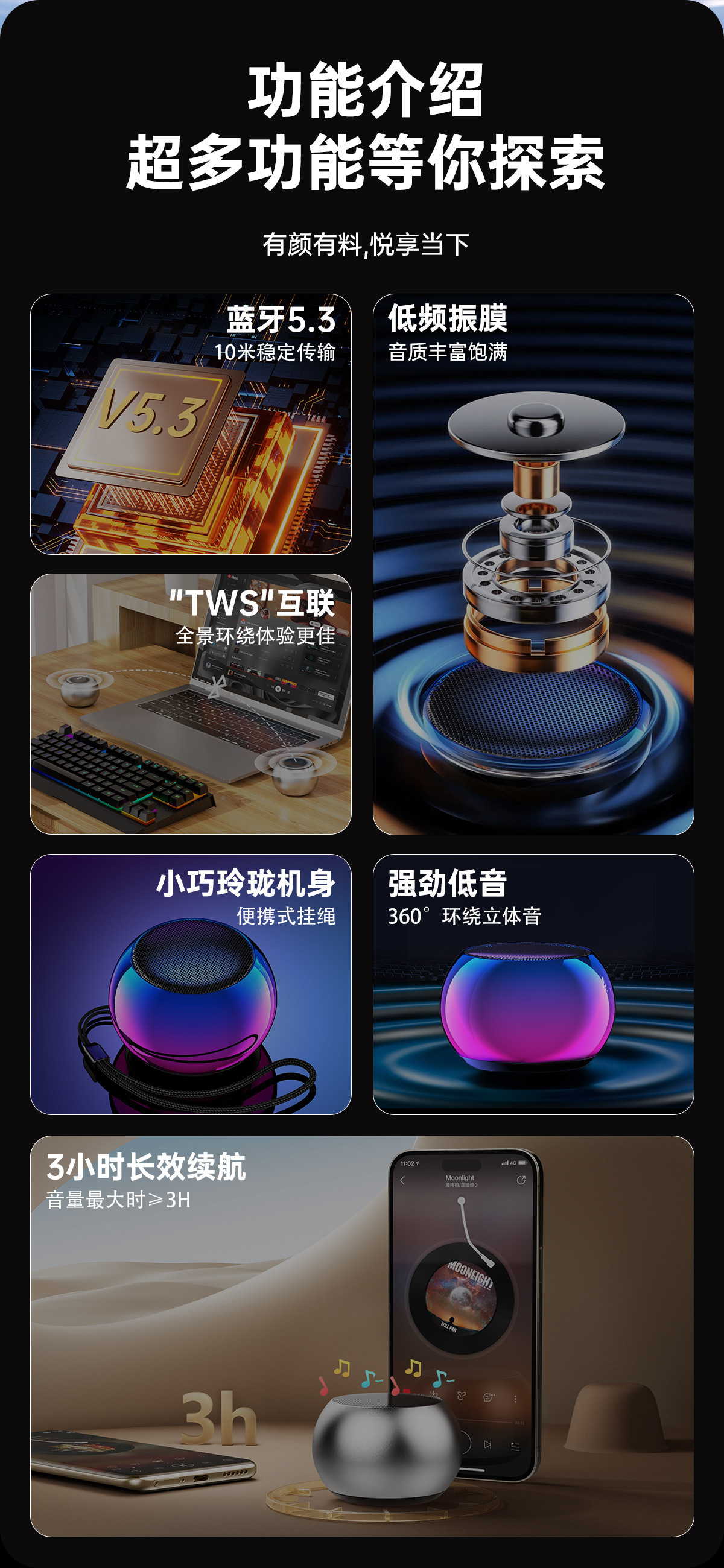 M3 알루미늄 합금 블루투스 소형 스피커 미니 서브 우퍼 휴대 전화 야외 편리한 오디오 선물 저렴한 전자 상거래 실행 볼륨