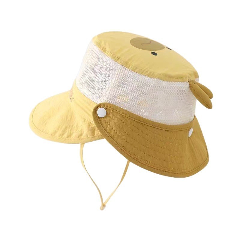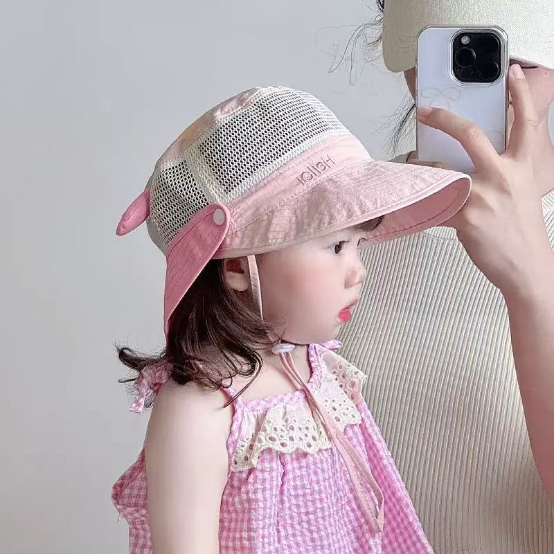 어린이용 봄여름 메쉬 자외선 차단 모자, 챙이 큰 속건 통기성 목 보호 숄, 아기용 햇빛 가리개 모자