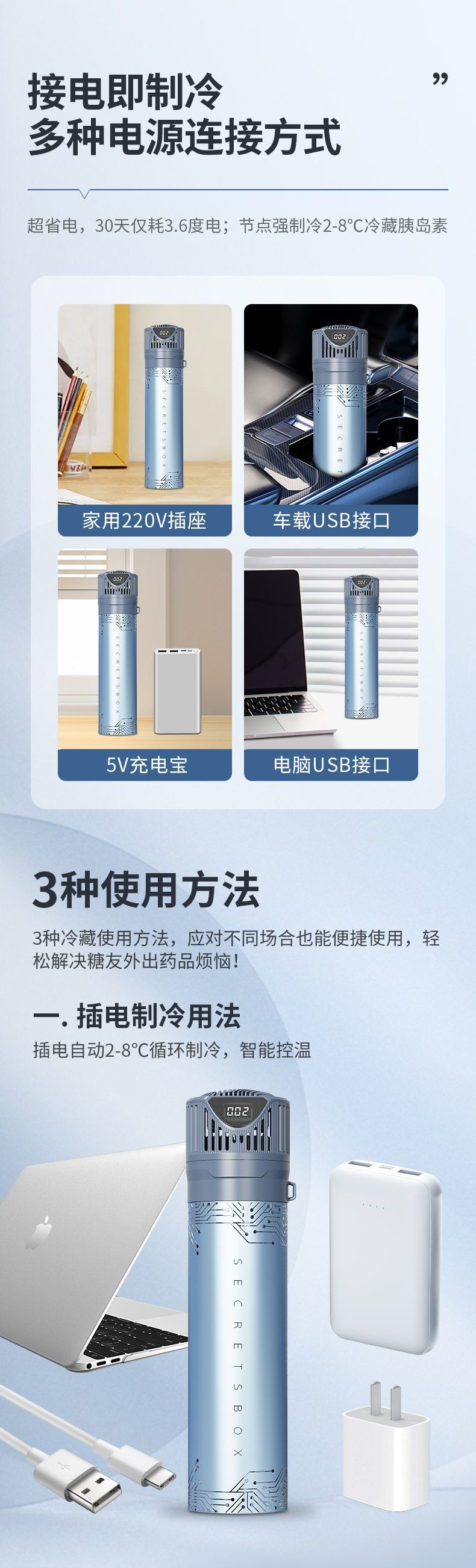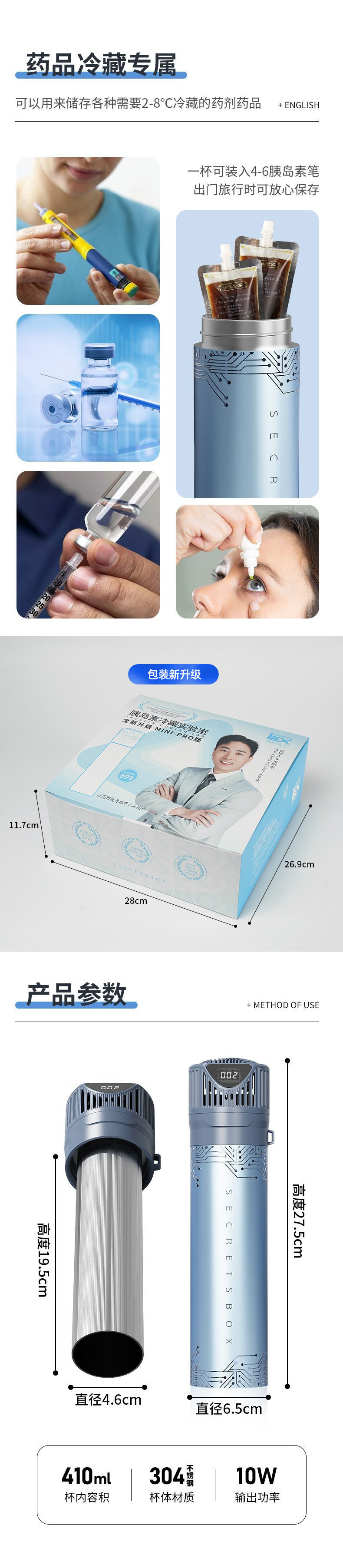 인슐린 냉장 상자 휴대용 충전식 미니 가정용 냉장 기숙사 소형 냉장고 의약품 자동차 냉장고스토어 가기