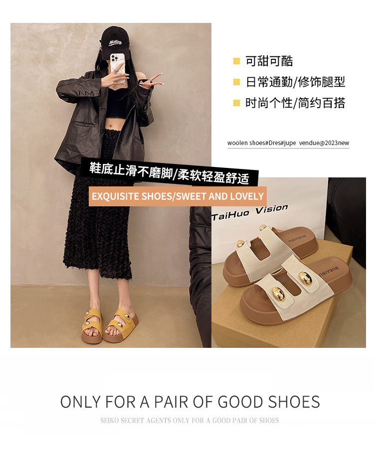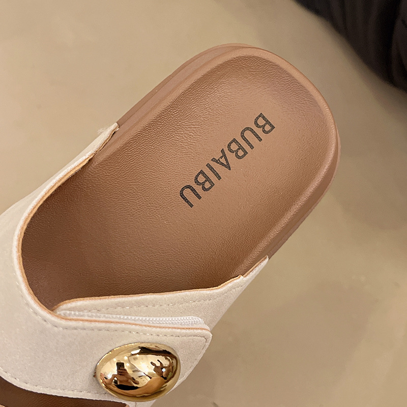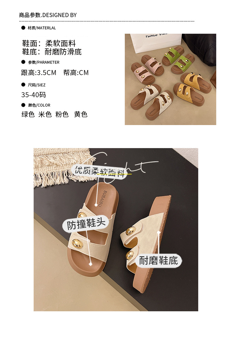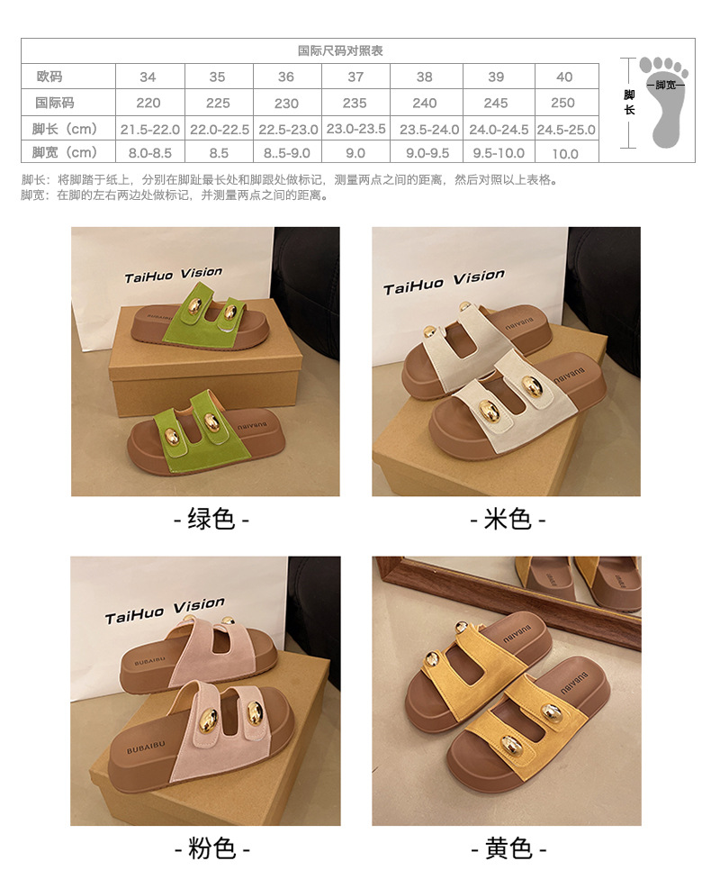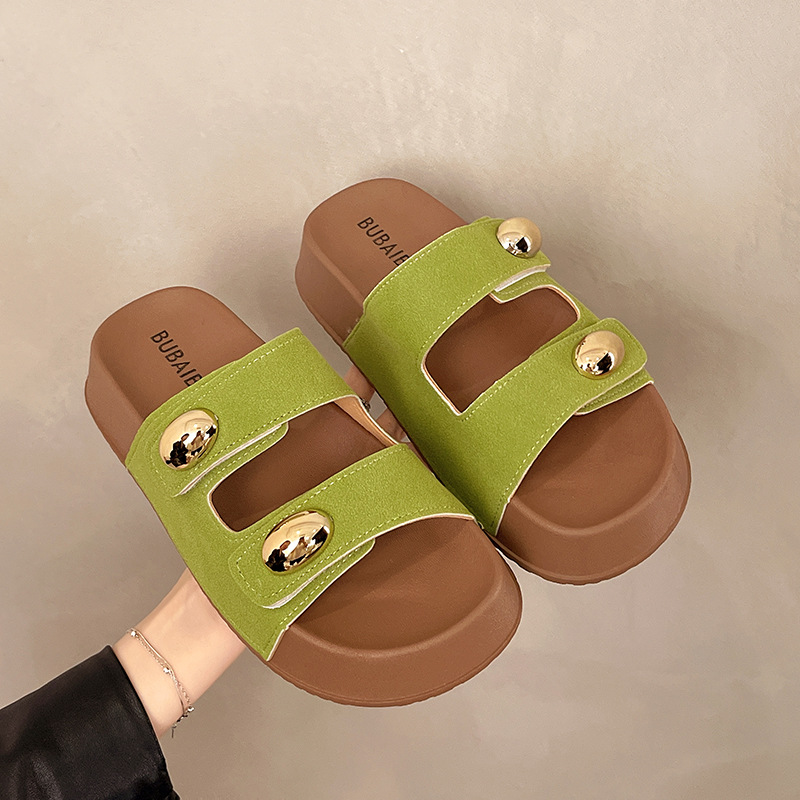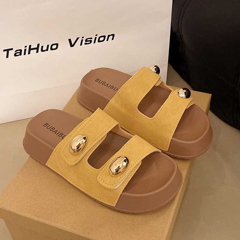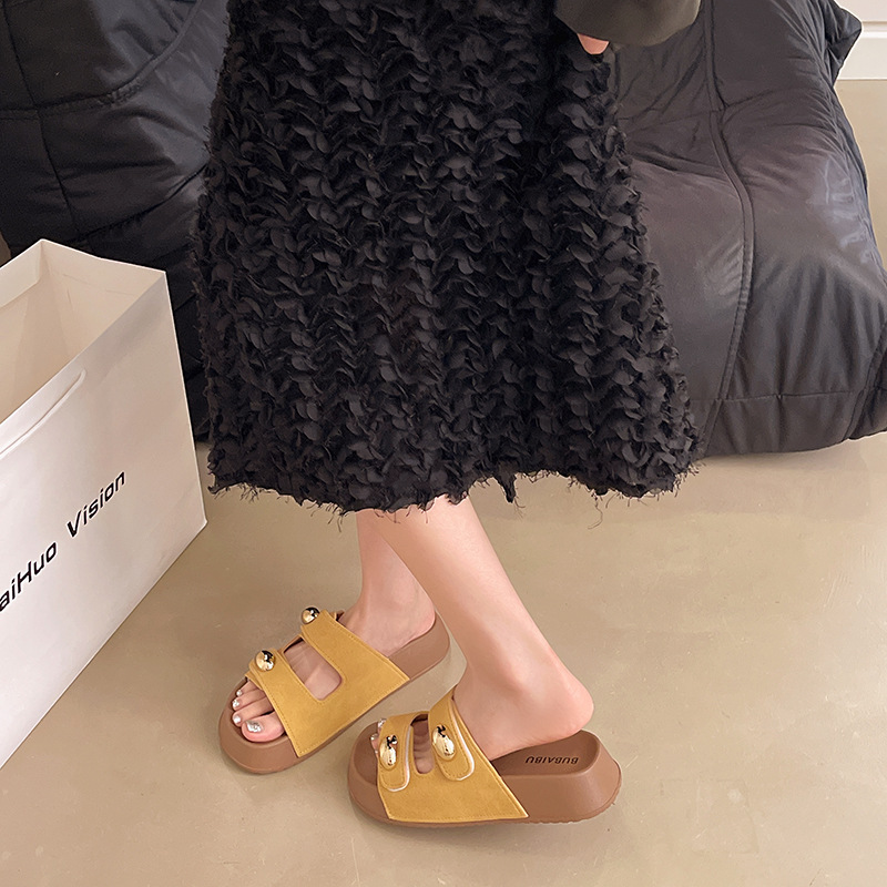 2025 새로운 여름 더블 스트랩 Boken 신발 간단한 골드 콩 장식 샌들 해변 비치 슬리퍼 여성을위한 도매스토어 가기