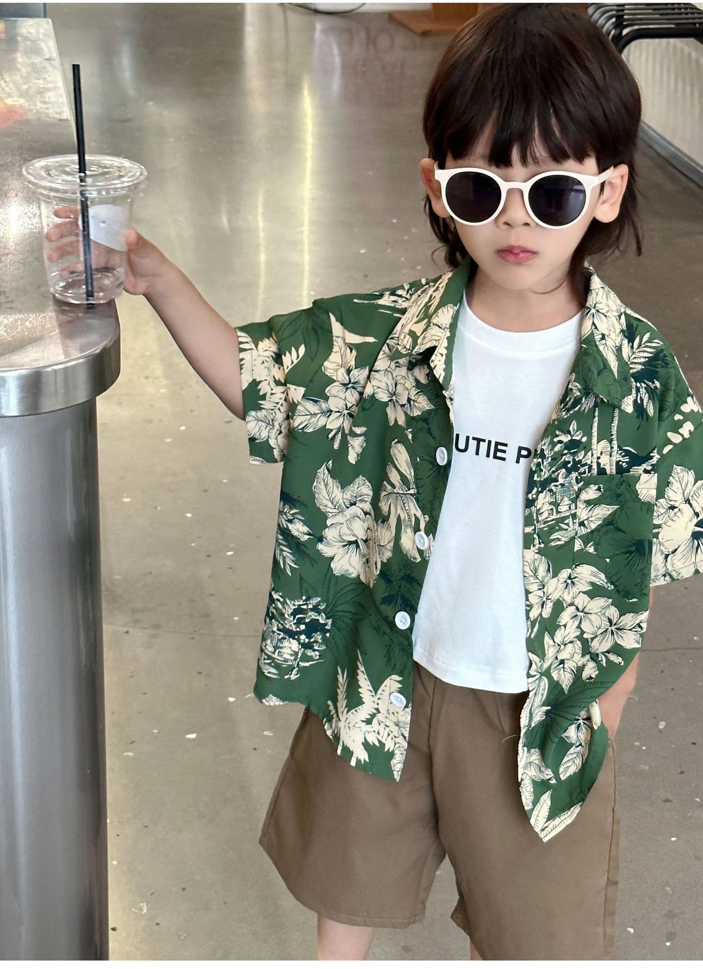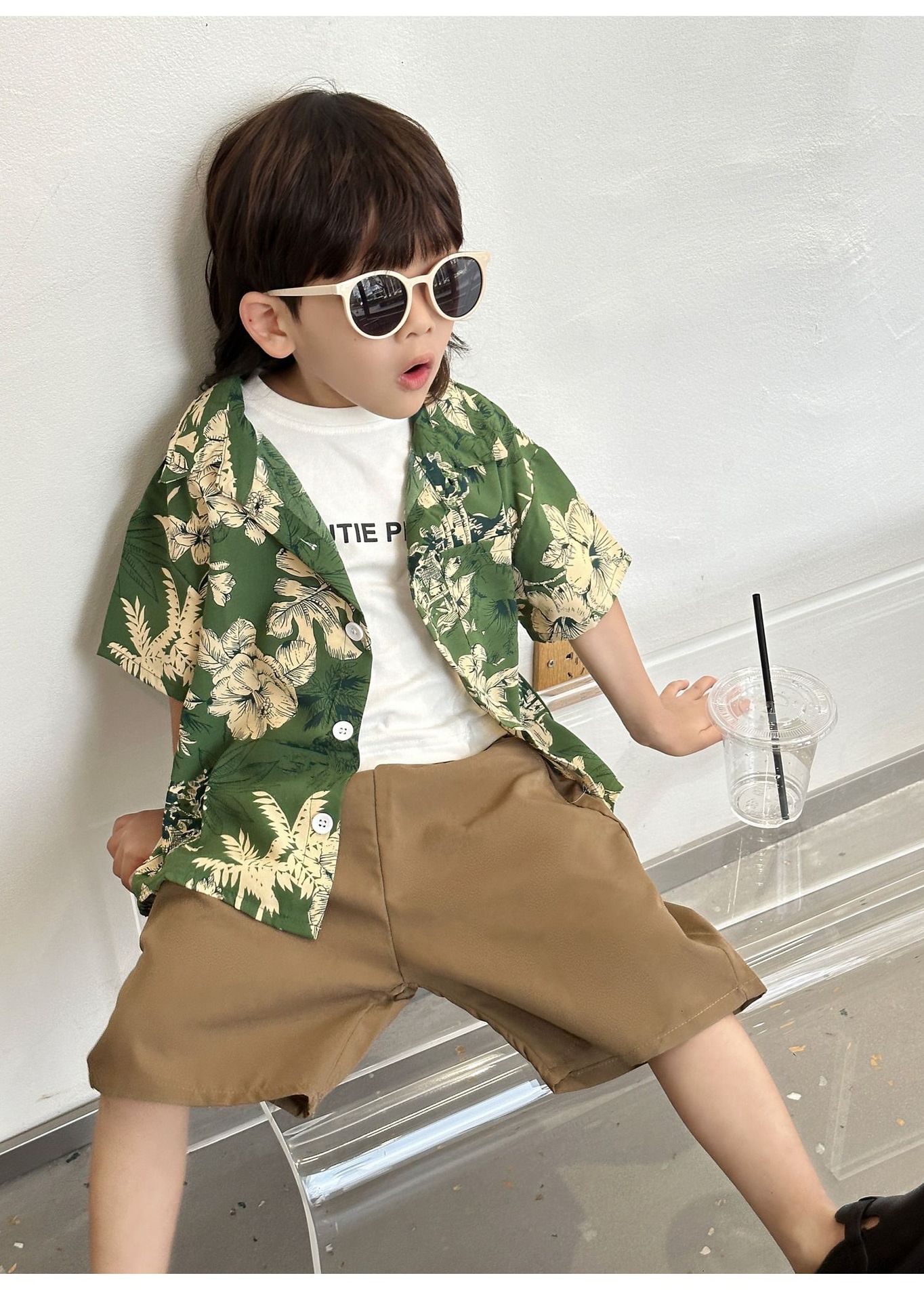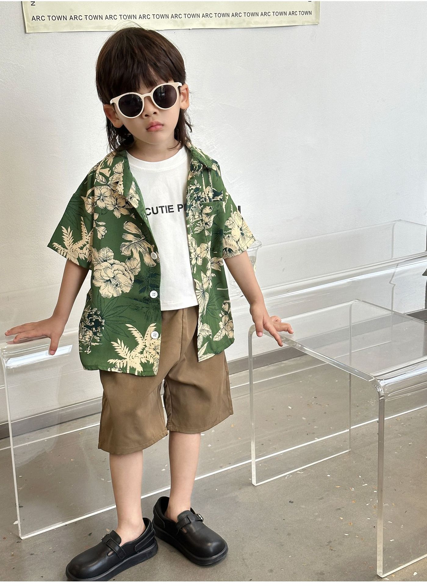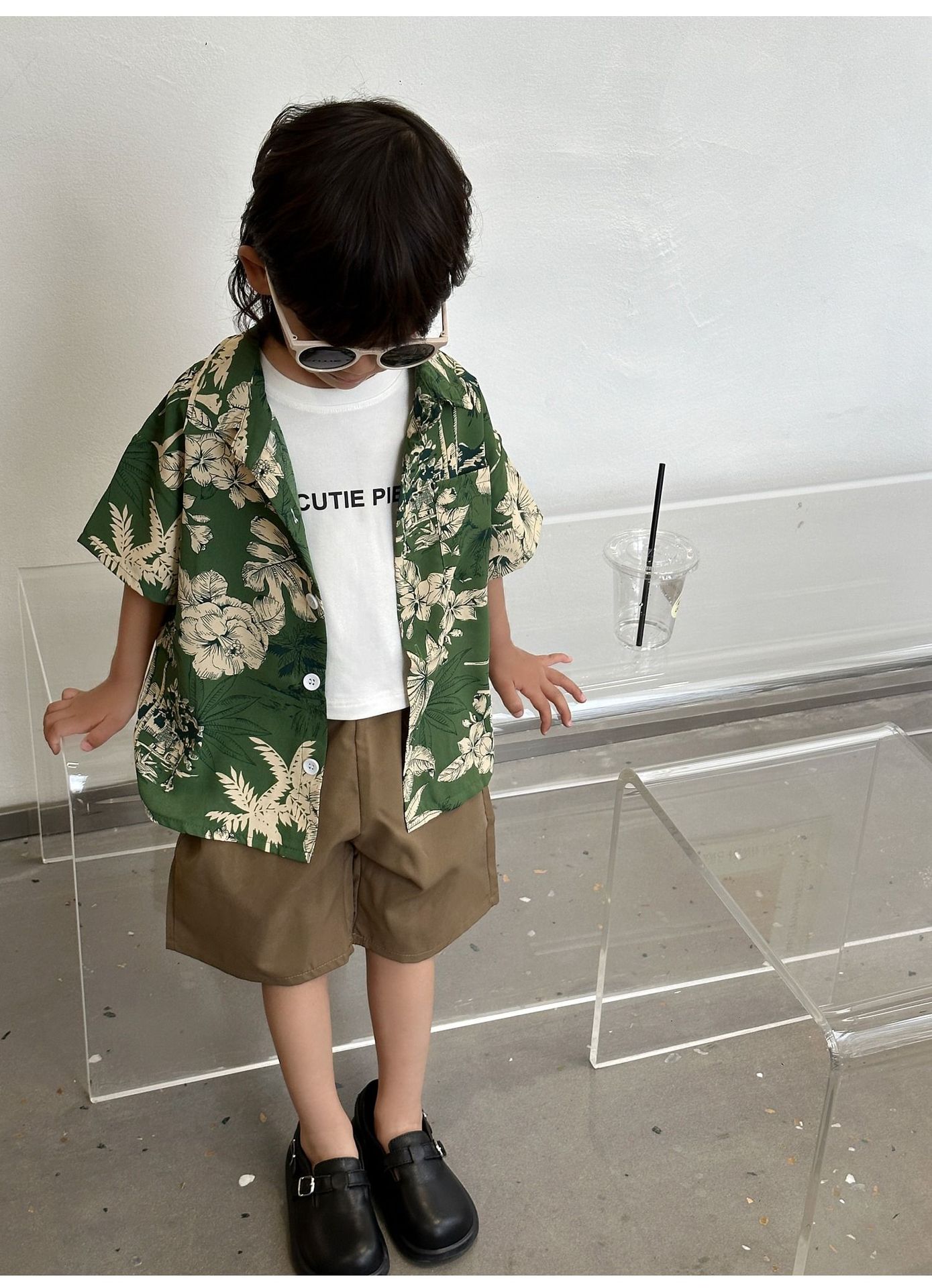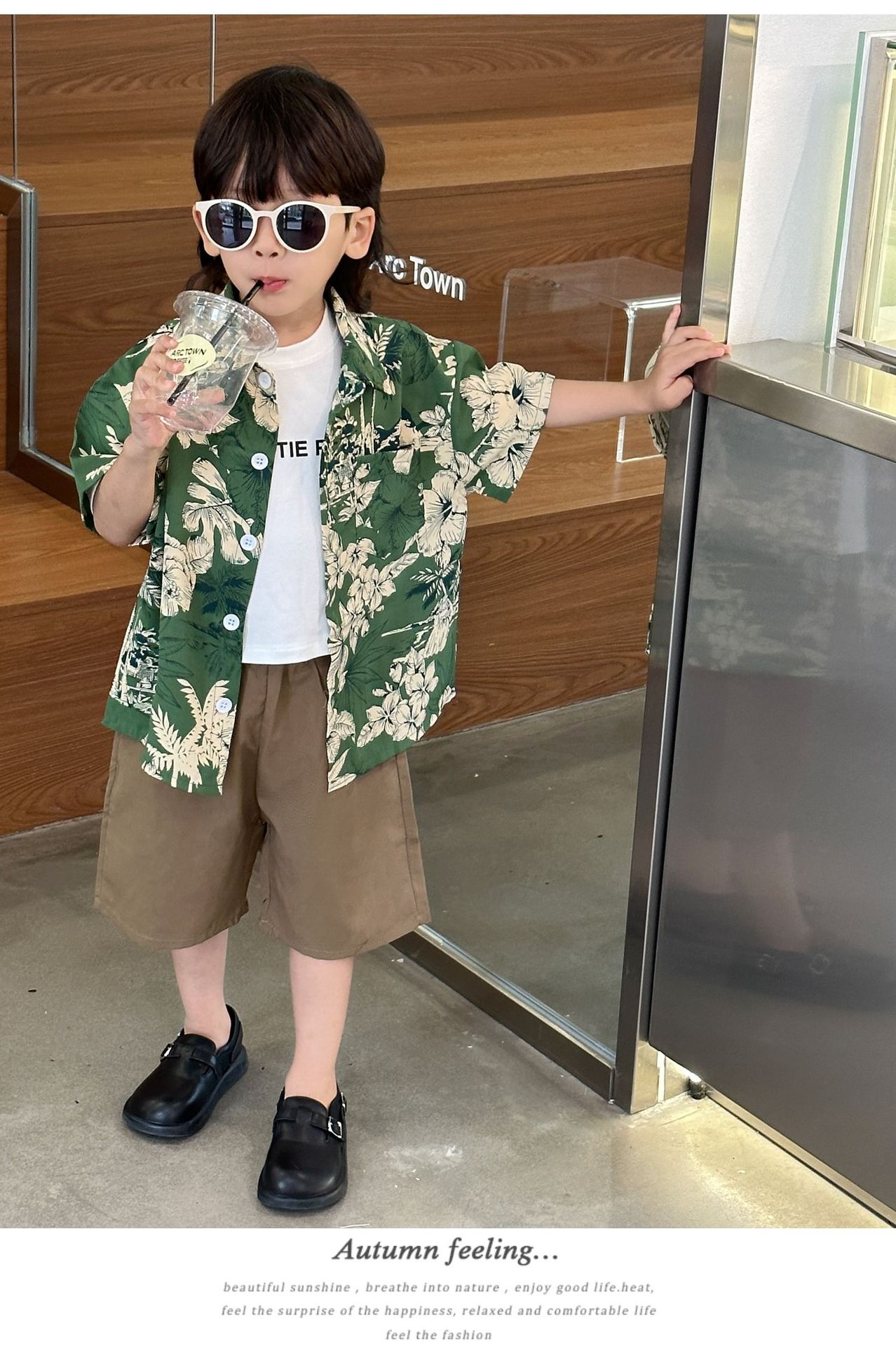 남아용 스트리트 프린트 셔츠, 패셔너블한 홍콩 스타일 남아용 셔츠, 휴가용 아동 셔츠, 남성용 여름 반팔 상의
