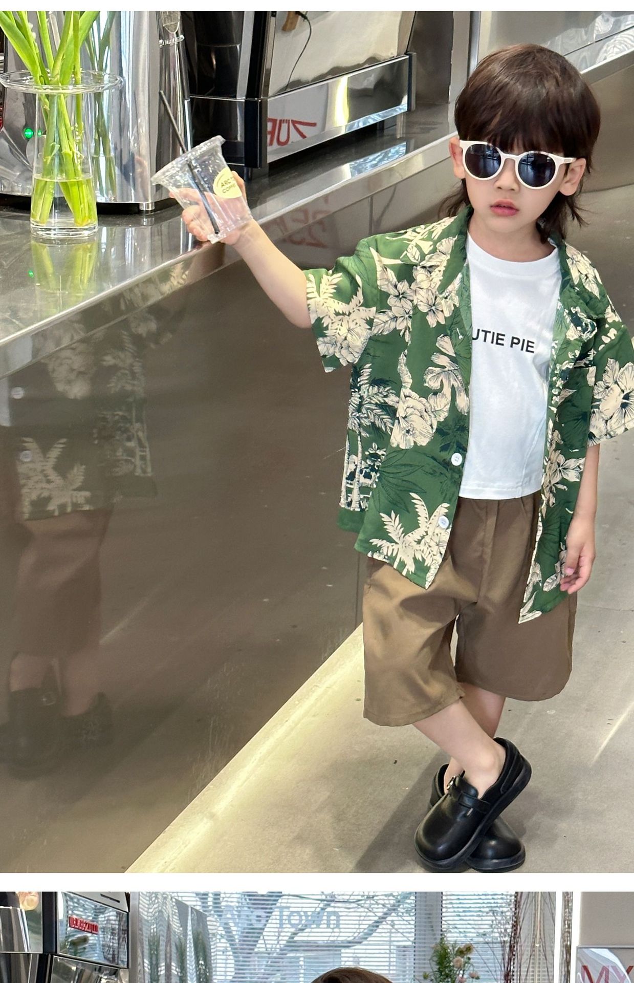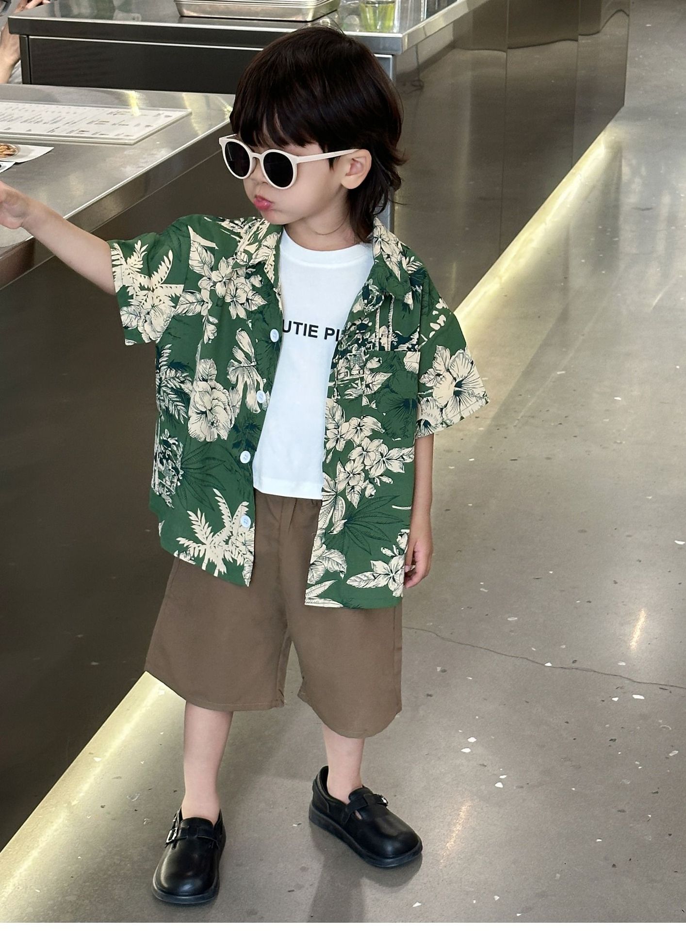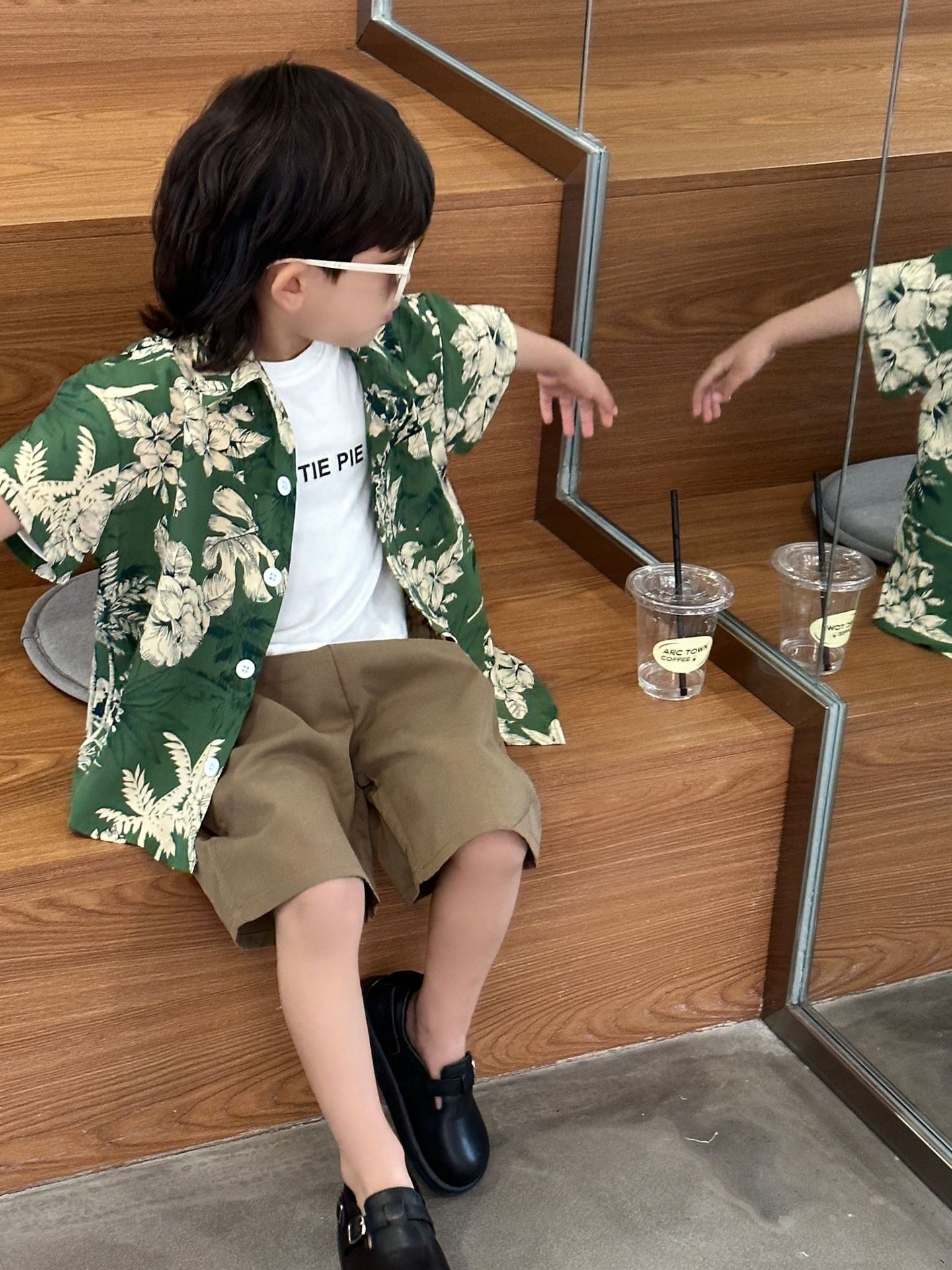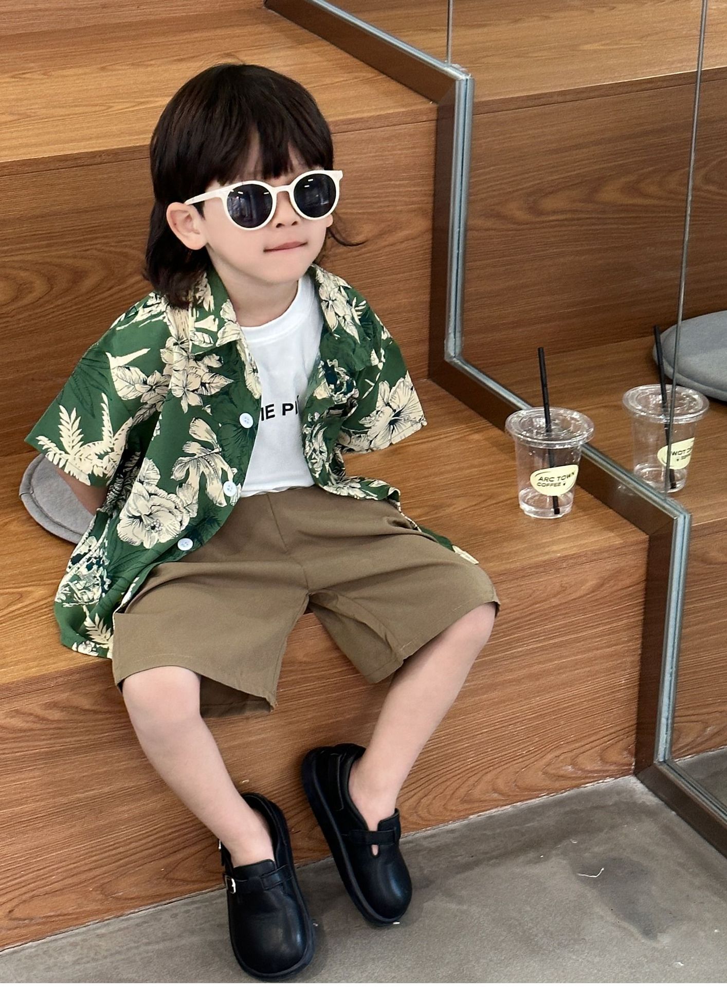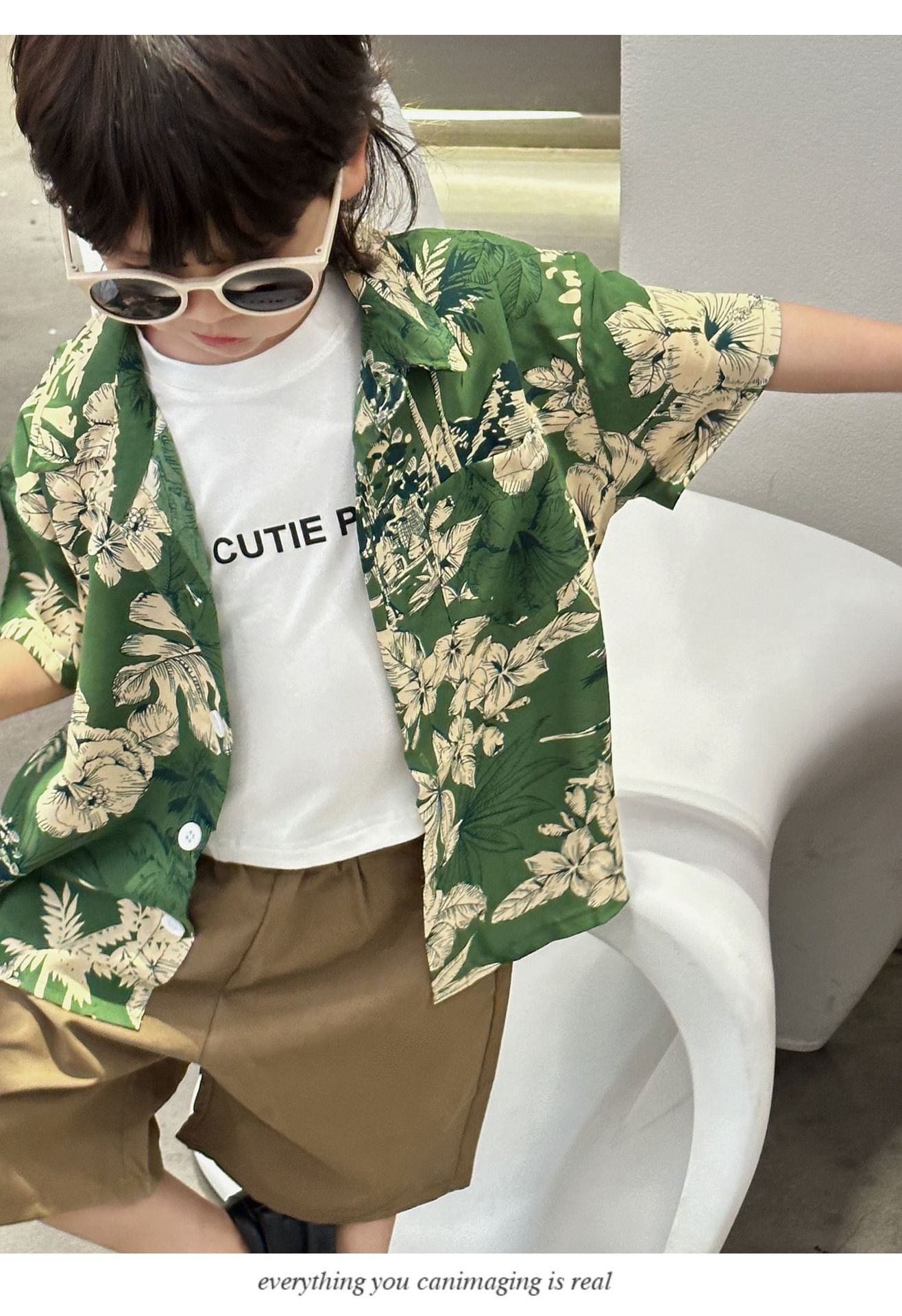 남아용 스트리트 프린트 셔츠, 패셔너블한 홍콩 스타일 남아용 셔츠, 휴가용 아동 셔츠, 남성용 여름 반팔 상의