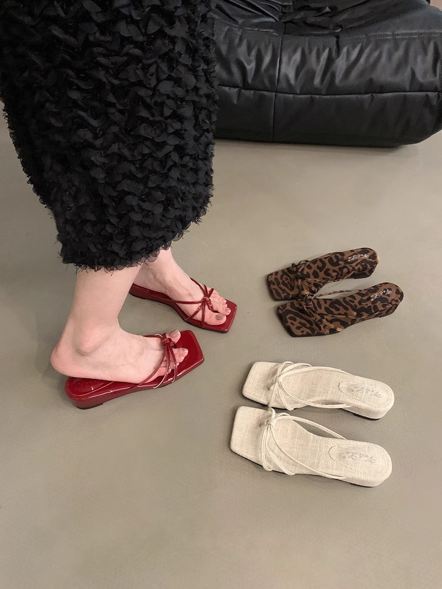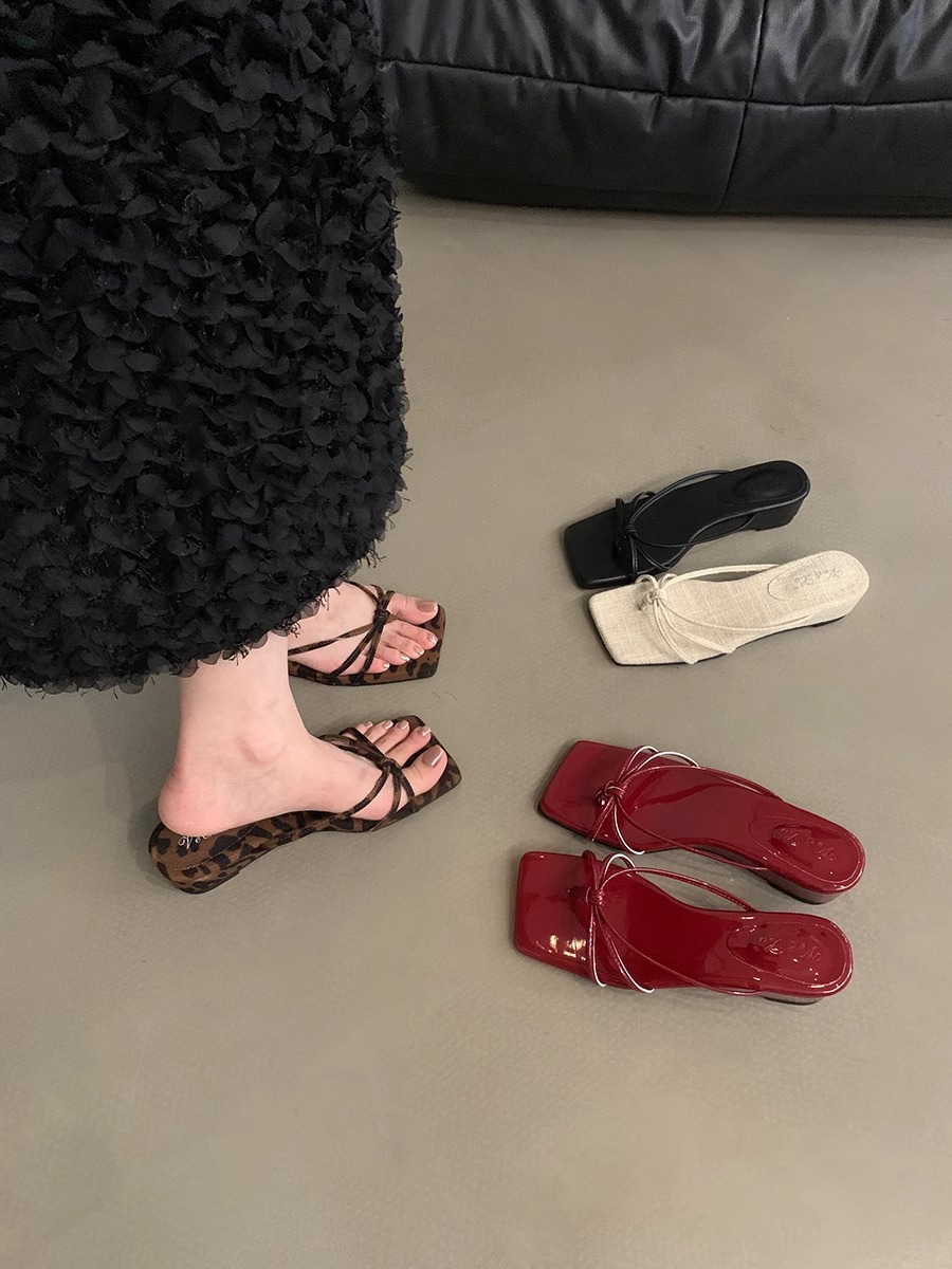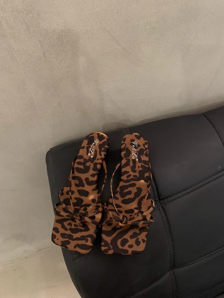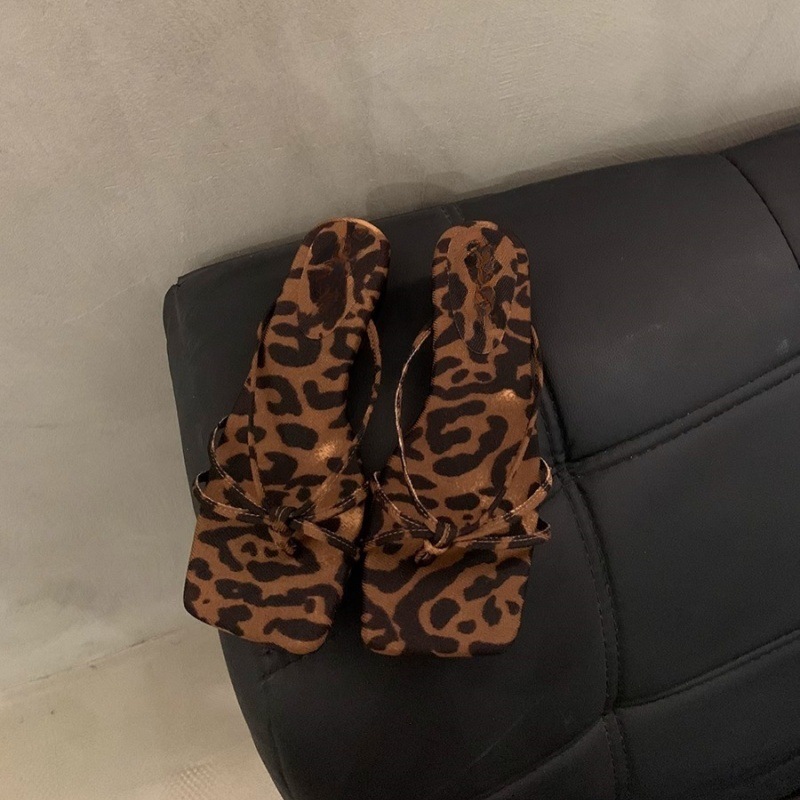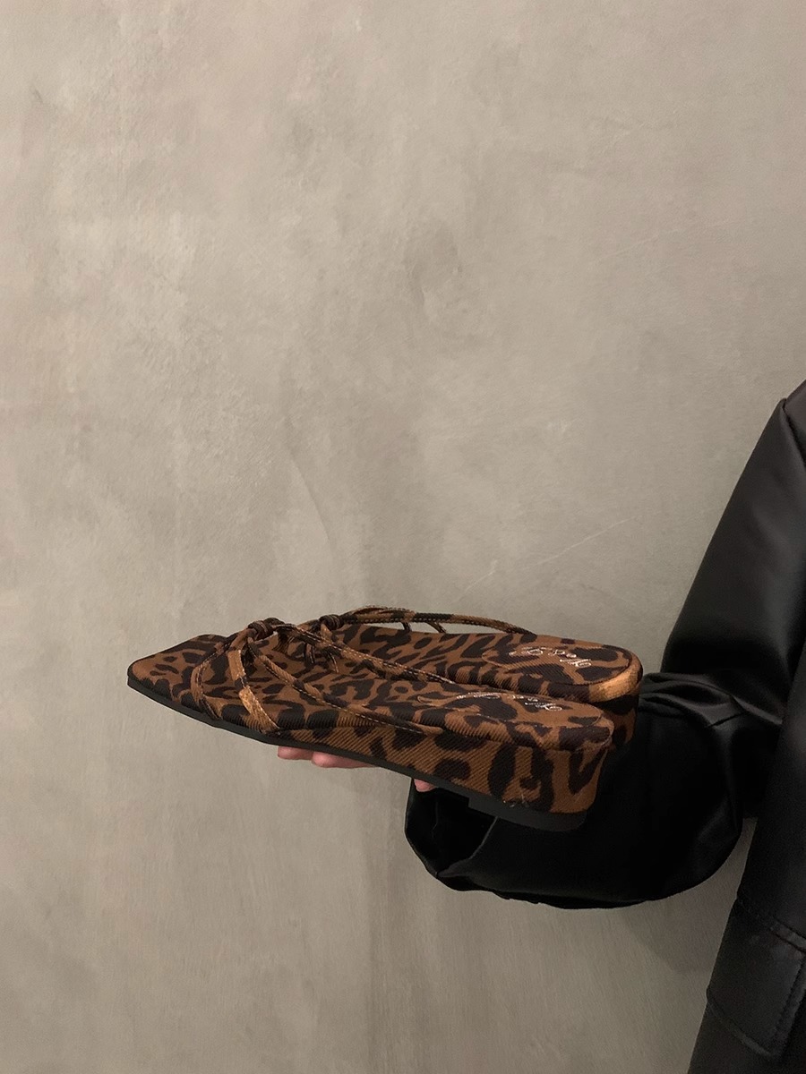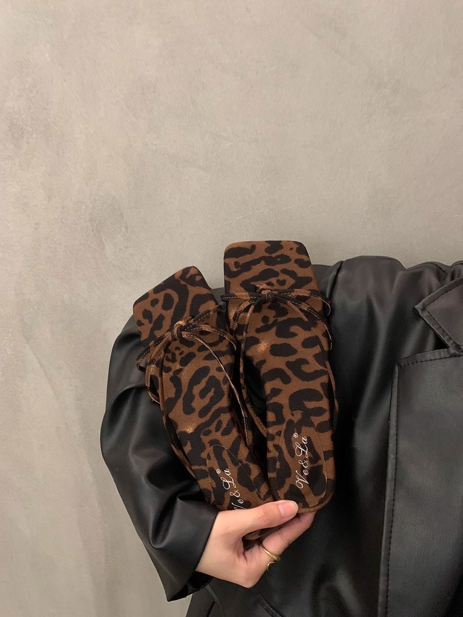 2026년 여름 신상 인터넷 인기 레오파드 프린트 샌들 여성 웨지힐 프렌치 스타일 스커트와 함께 신는 슬리퍼스토어 가기