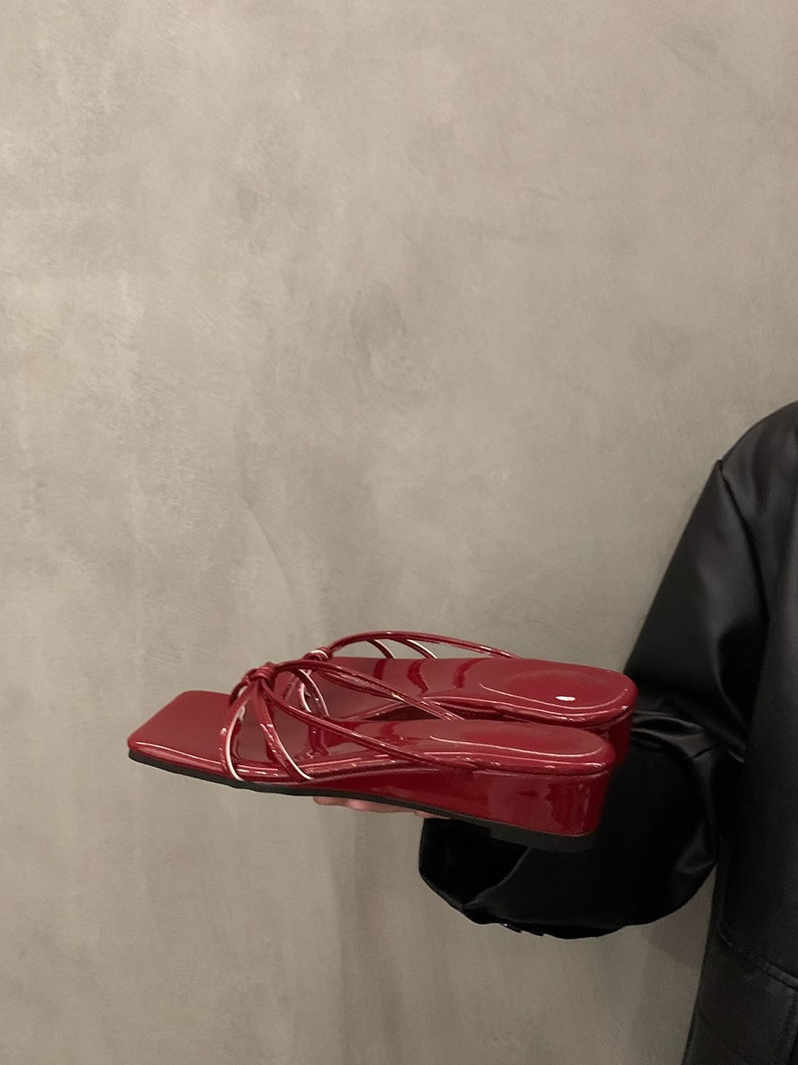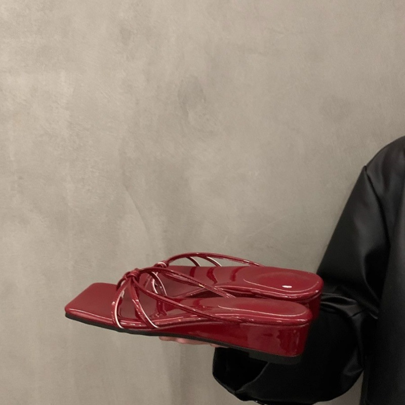2026년 여름 신상 인터넷 인기 레오파드 프린트 샌들 여성 웨지힐 프렌치 스타일 스커트와 함께 신는 슬리퍼