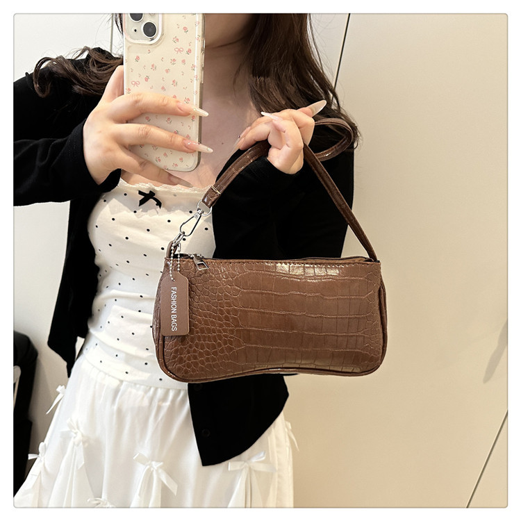 프렌치 니치 디자인 한국 버전 다용도 악어 무늬 바게트 백 레트로 겨드랑이 백 2025 신형 핸드헬드 숄더백스토어 가기