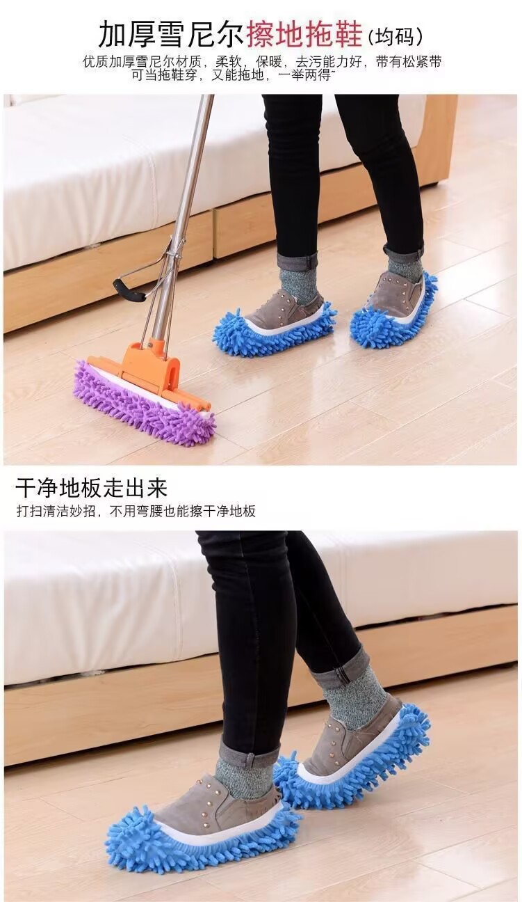 바닥걸레 슬리퍼, 게으른 신발 커버, 가정용 셔닐 천, 바닥걸레, 가정용 걸레 헤드, 탈부착 및 세탁 가능한 무소음 슬리퍼 커버스토어 가기
