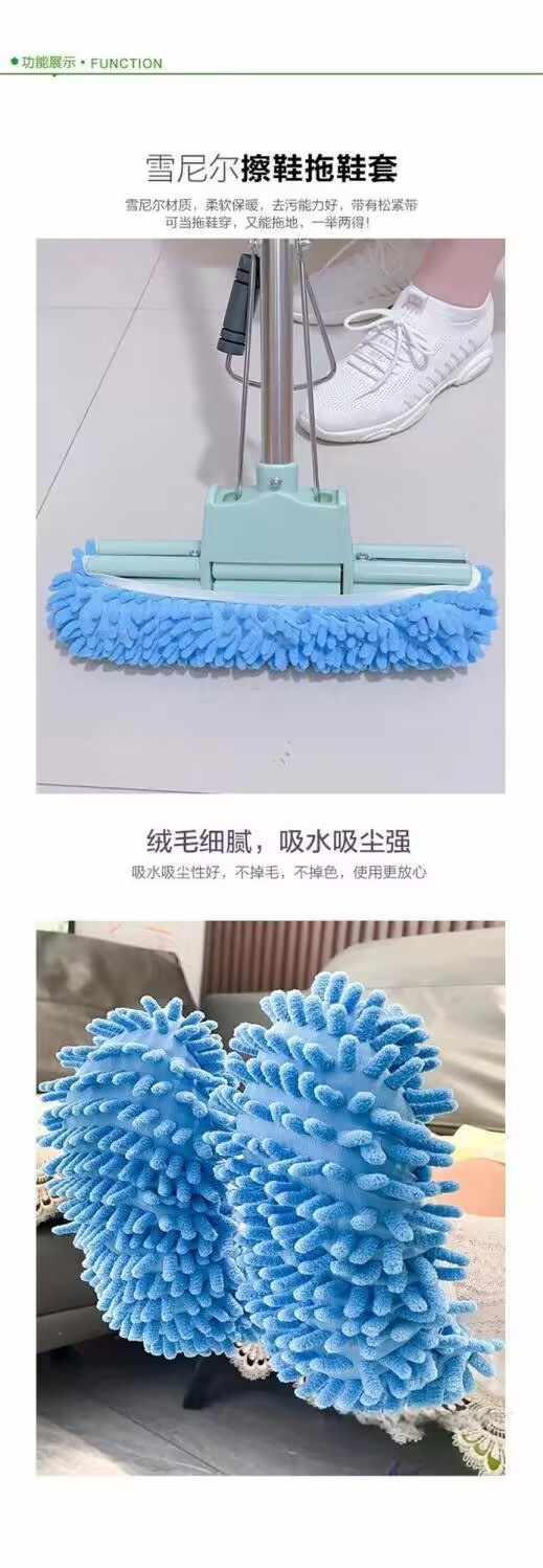 바닥걸레 슬리퍼, 게으른 신발 커버, 가정용 셔닐 천, 바닥걸레, 가정용 걸레 헤드, 탈부착 및 세탁 가능한 무소음 슬리퍼 커버