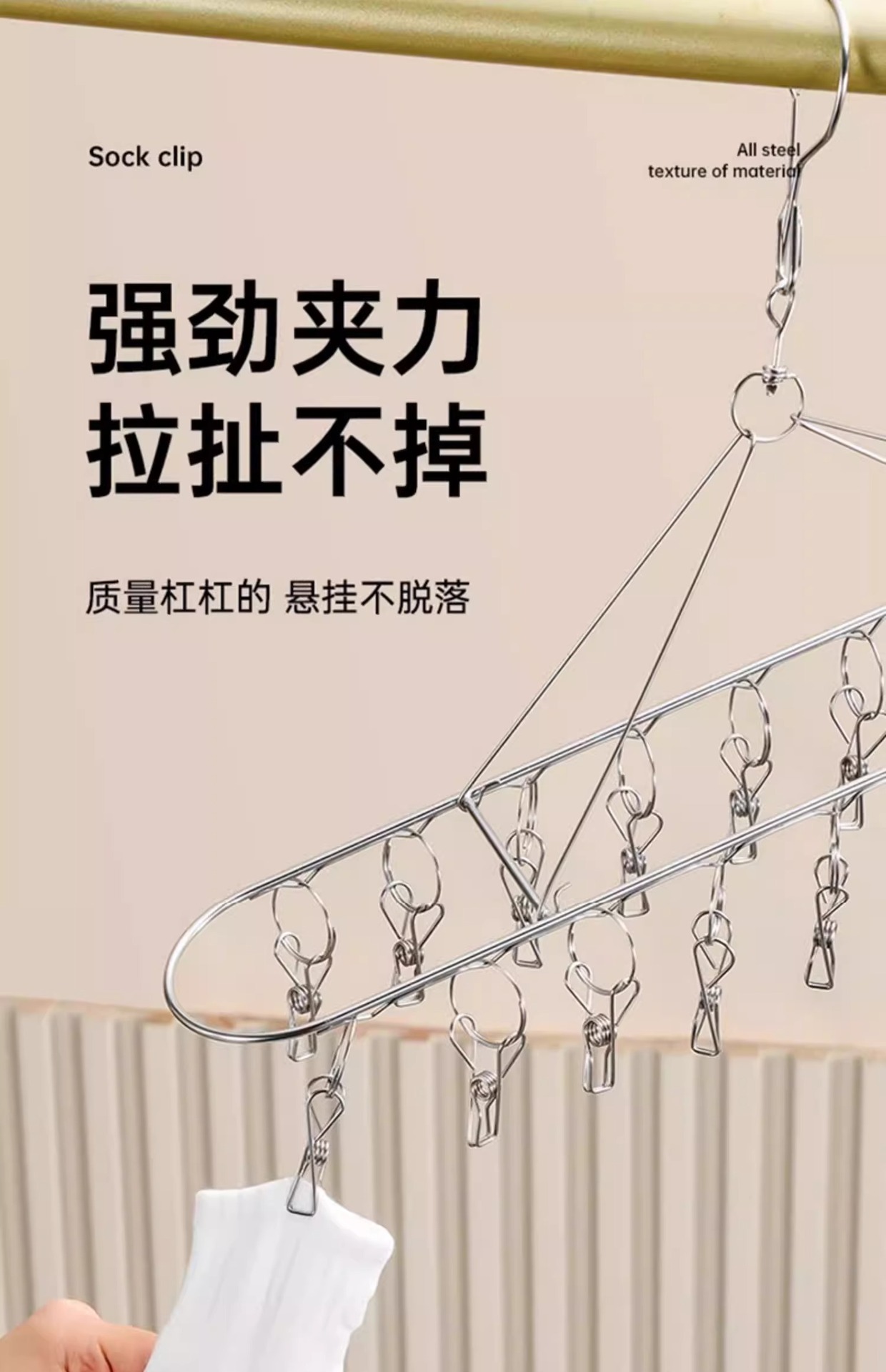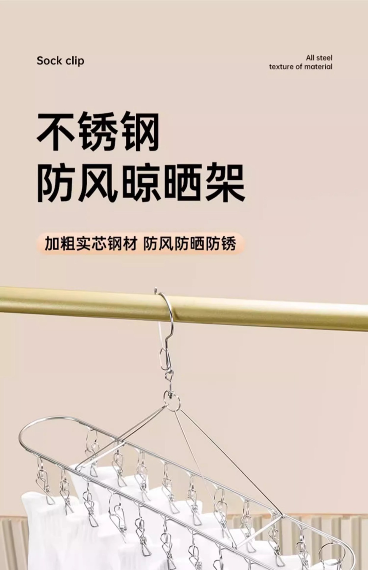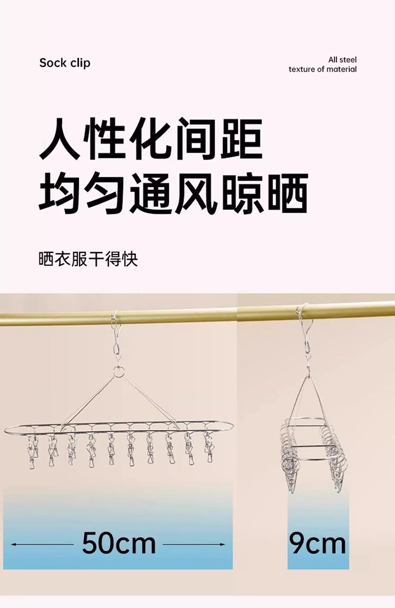 양말 건조대 스테인리스 옷걸이 발코니 가정용 다용도 옷걸이 속옷 건조용 다기능 클립