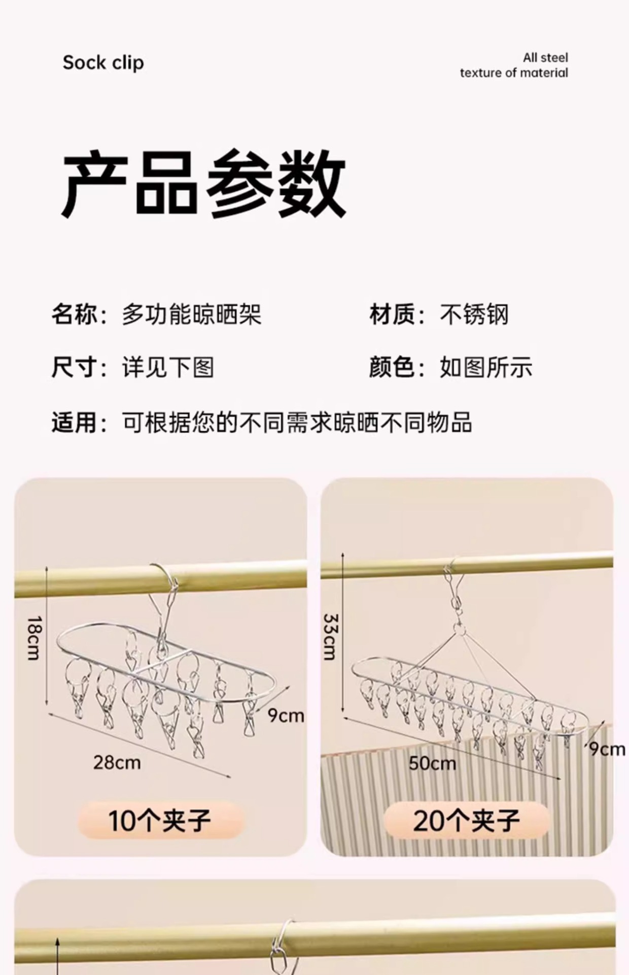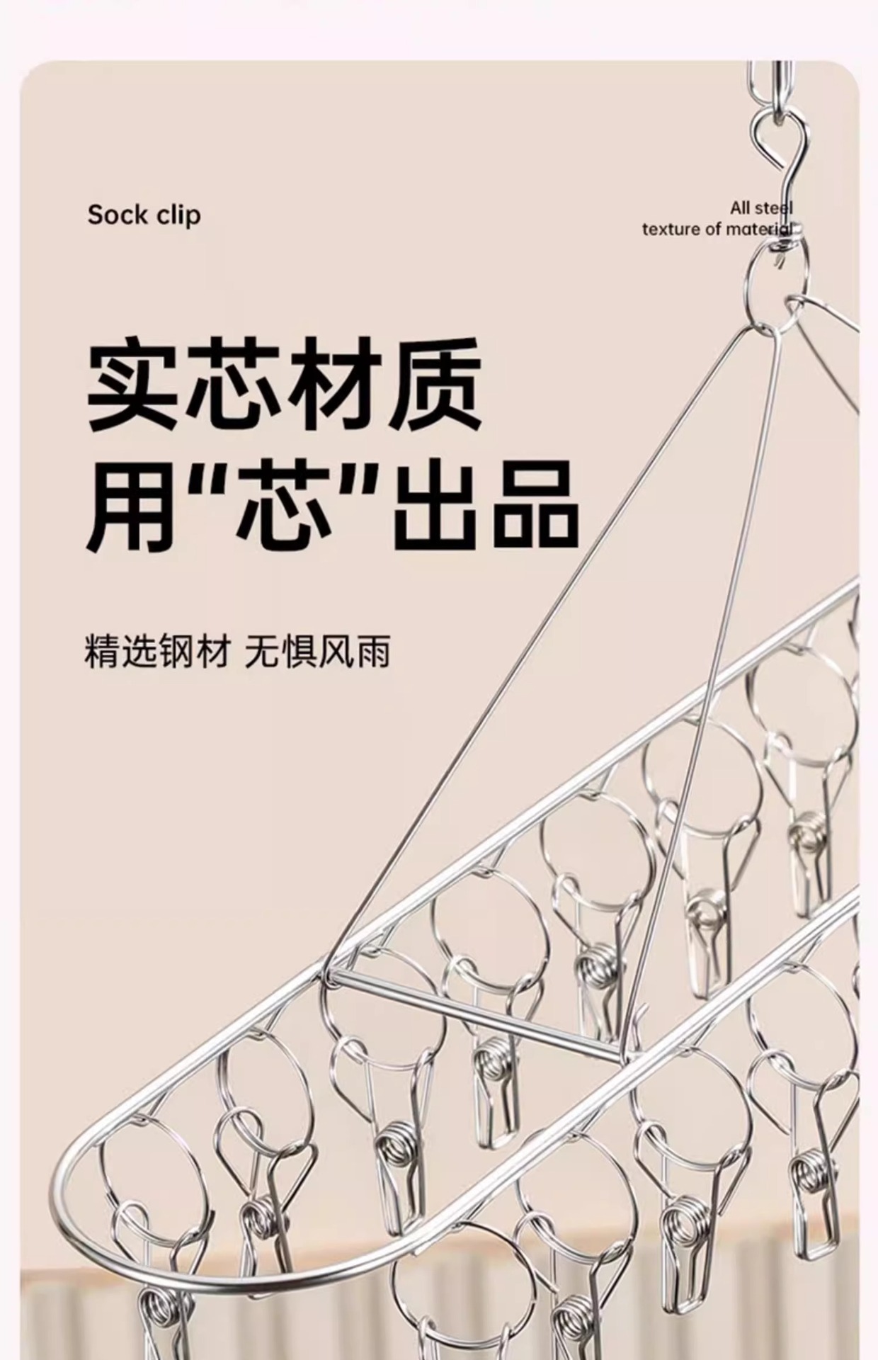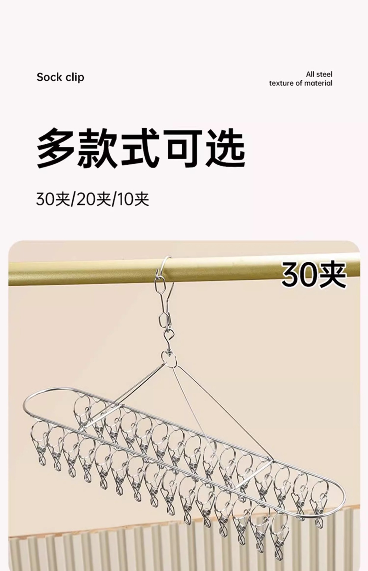 양말 건조대 스테인리스 옷걸이 발코니 가정용 다용도 옷걸이 속옷 건조용 다기능 클립