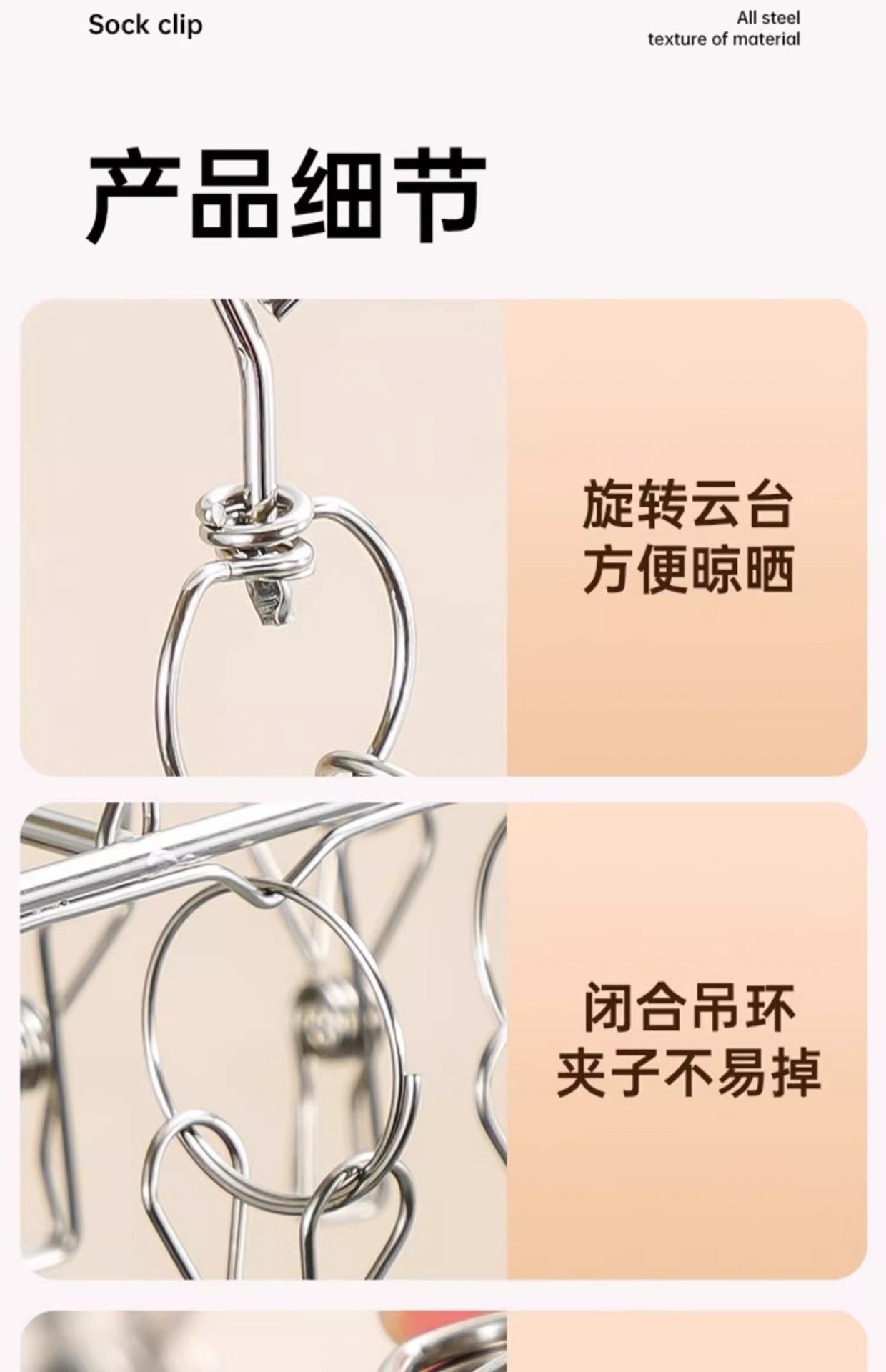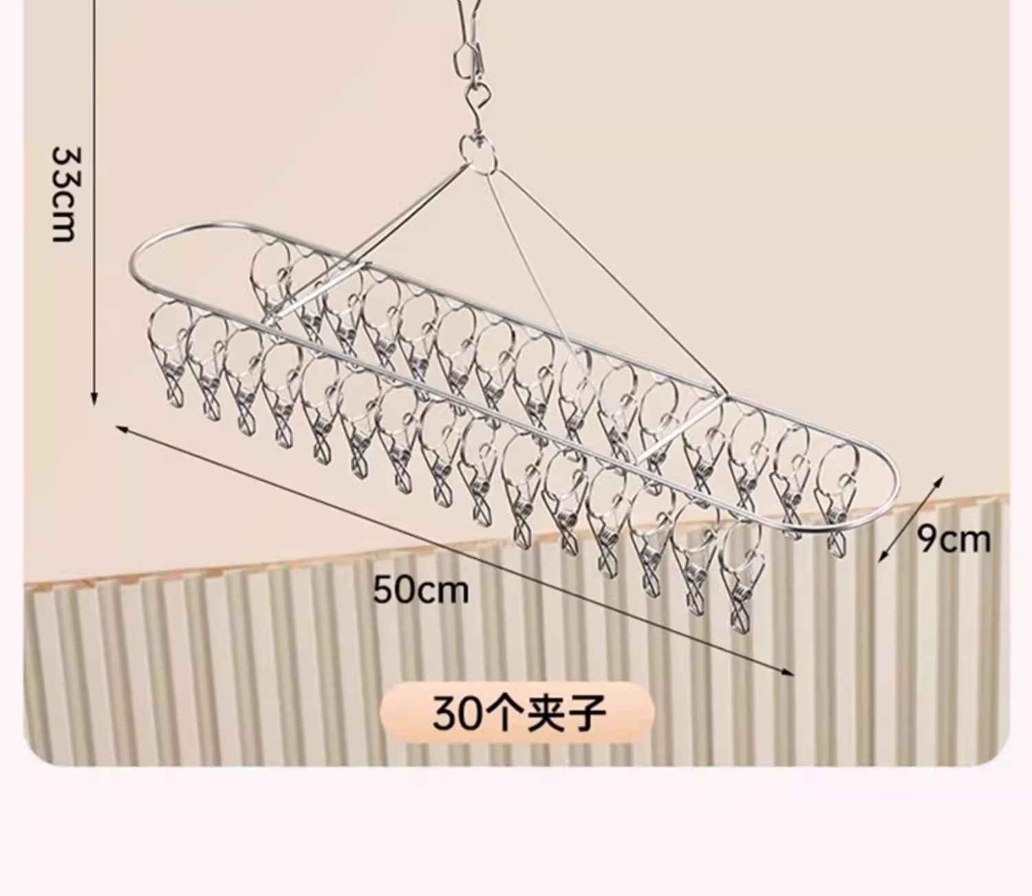 • 스테인리스 스틸 다층 양말 건조대 [3단 30개 클립]