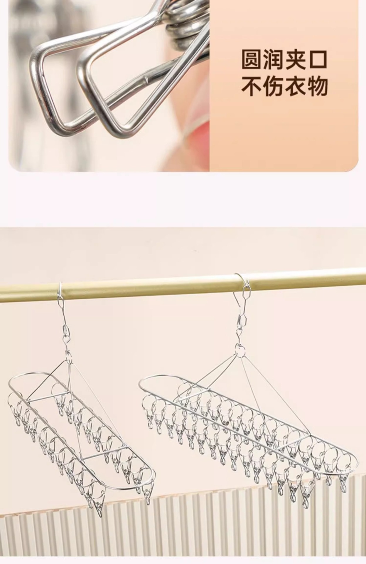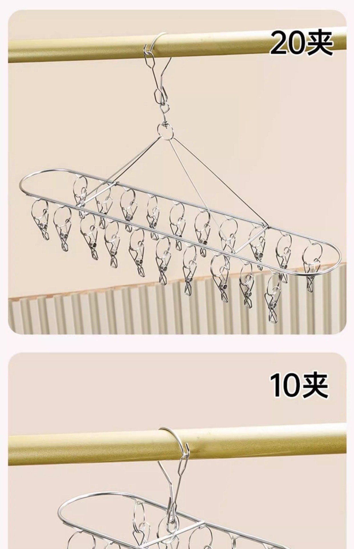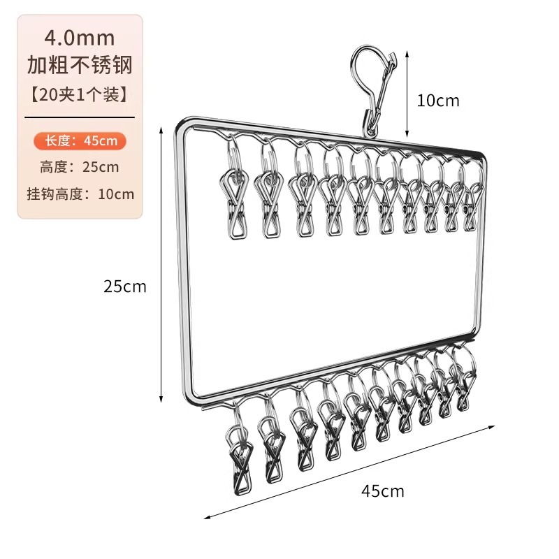 • 스테인리스 스틸 다층 양말 건조대 [2단 20개 클립]