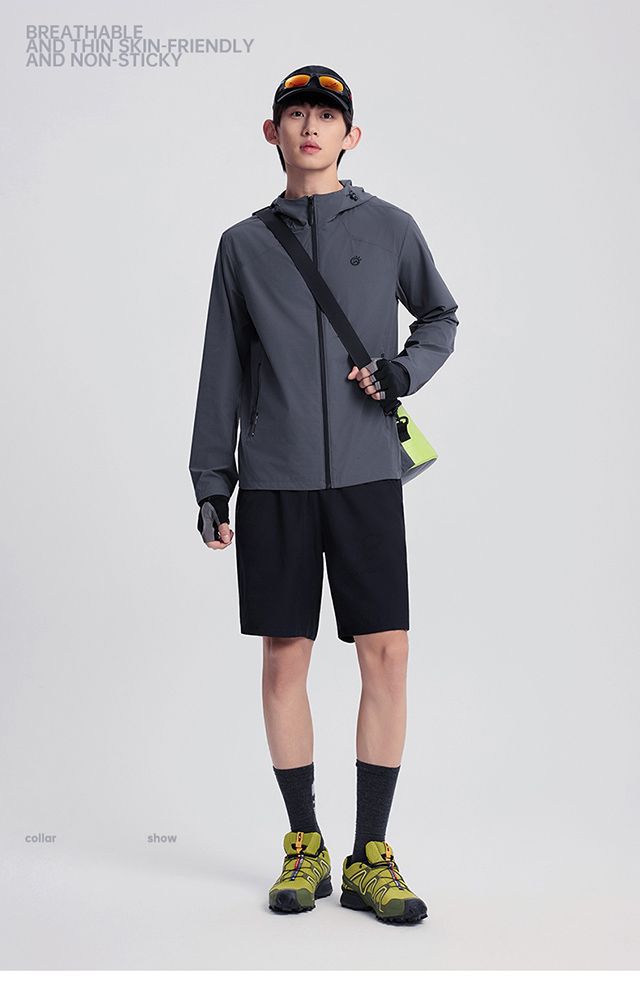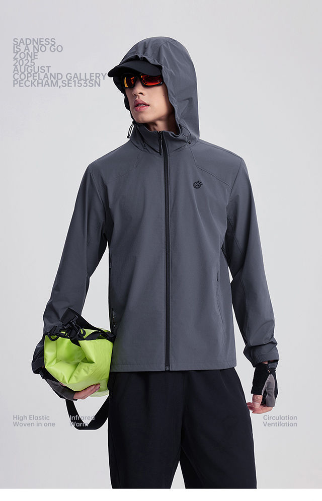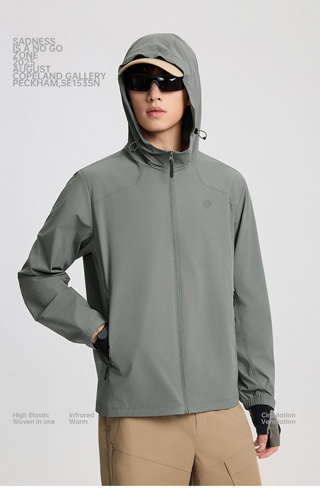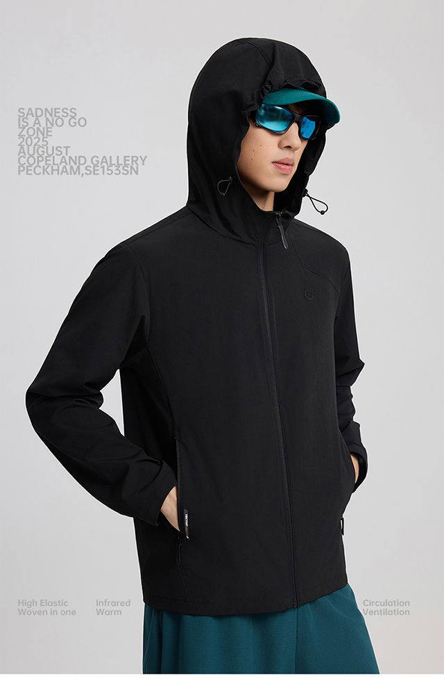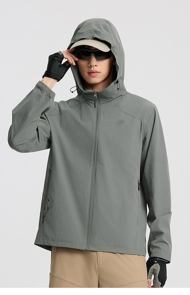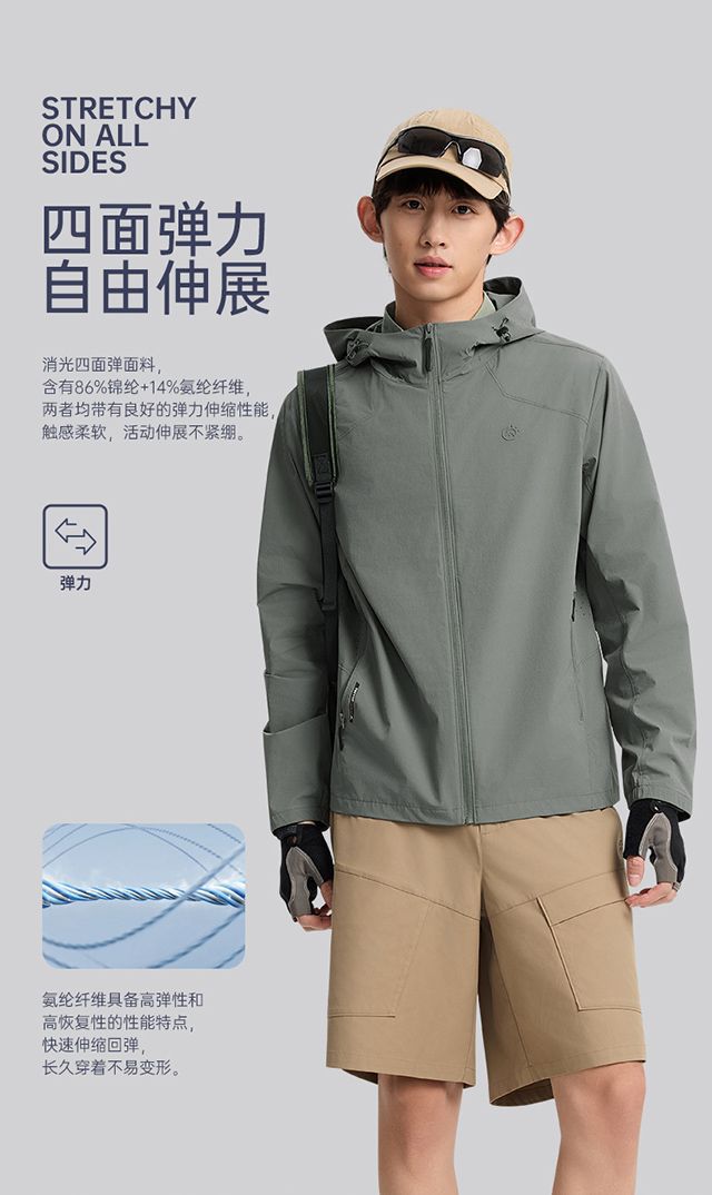 25 탐색 속건성 스트레치 재킷 남성용 경량 스포츠 재킷 봄, 가을 남성용 통기성 속건성 후드 등산 재킷