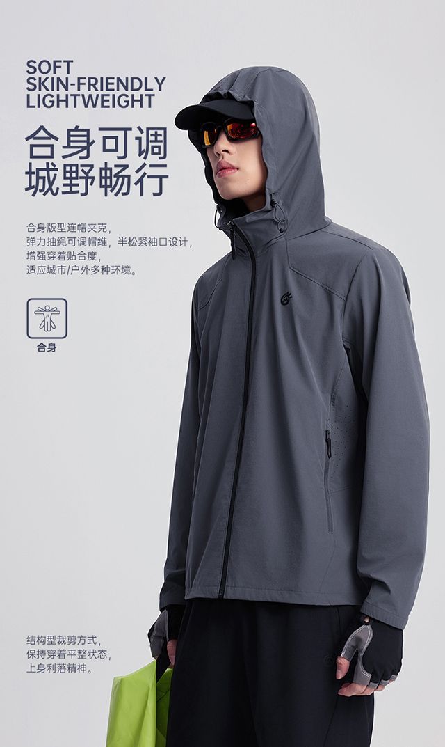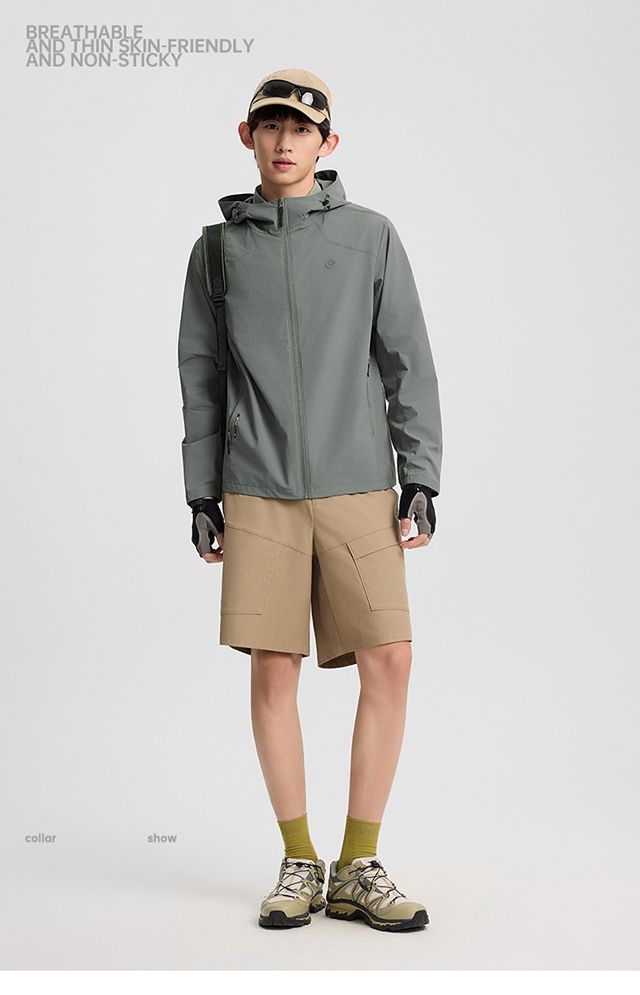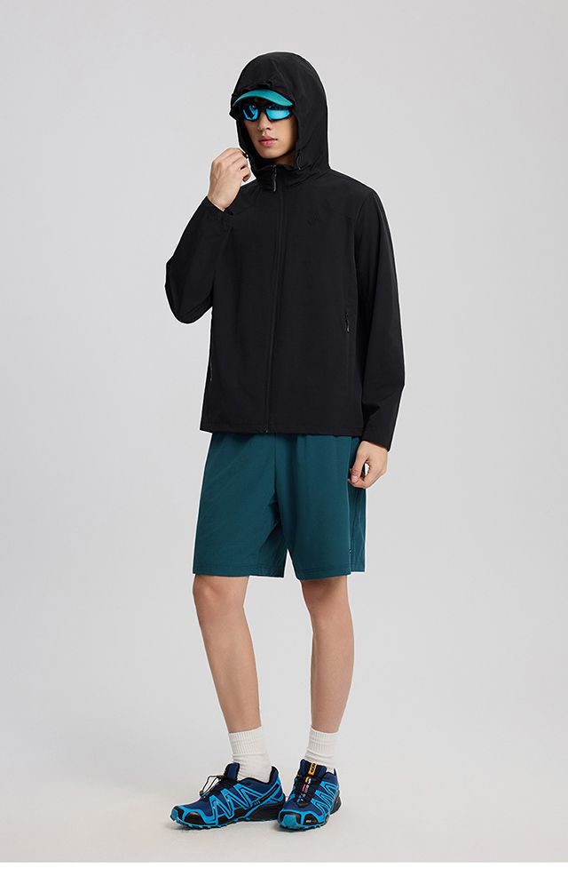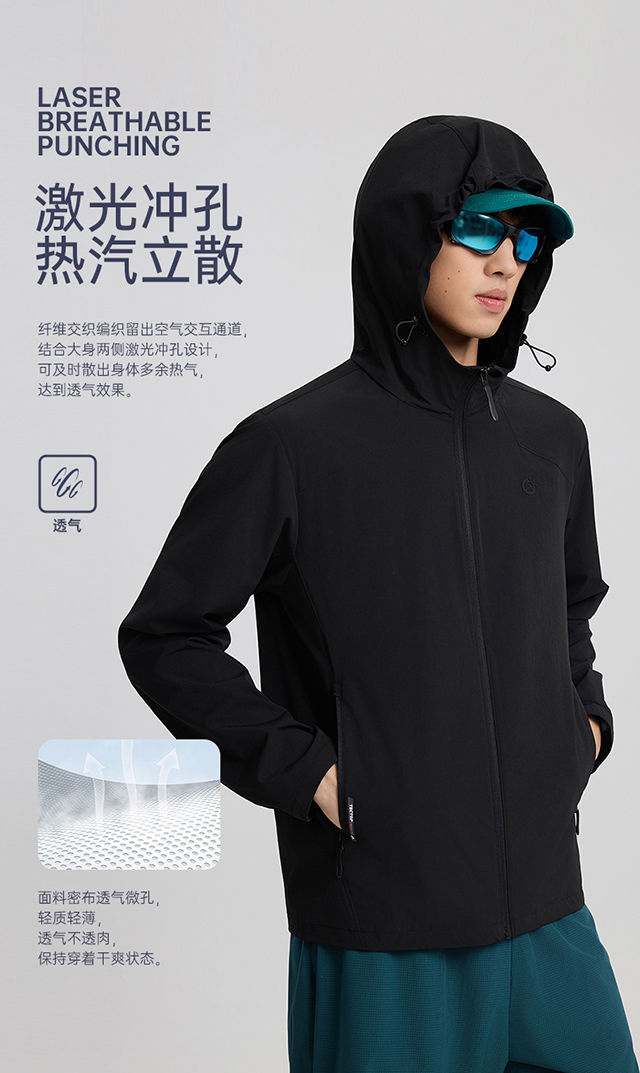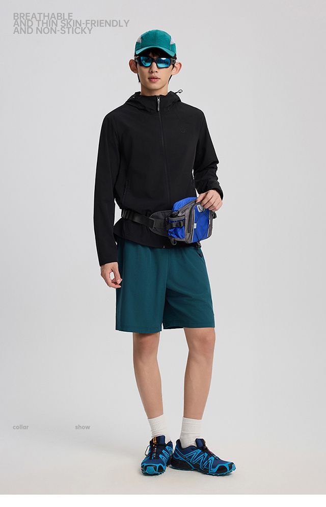 25 탐색 속건성 스트레치 재킷 남성용 경량 스포츠 재킷 봄, 가을 남성용 통기성 속건성 후드 등산 재킷