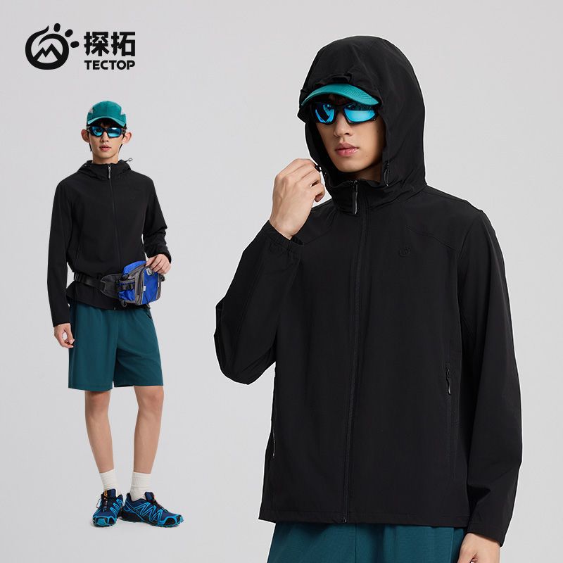 25 탐색 속건성 스트레치 재킷 남성용 경량 스포츠 재킷 봄, 가을 남성용 통기성 속건성 후드 등산 재킷스토어 가기