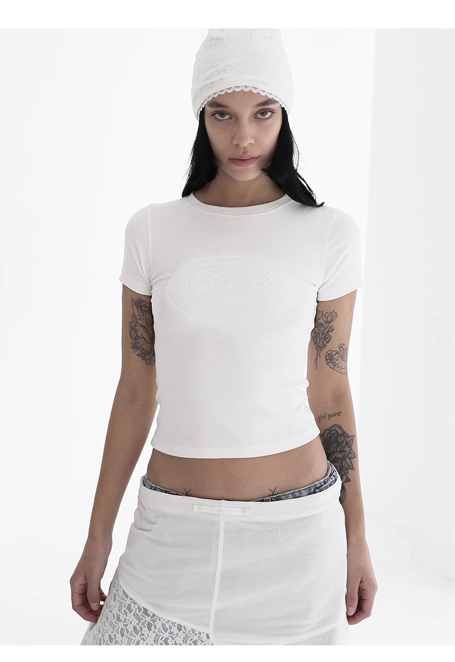 한국어 badblood bcac 시리즈 핫 소녀 반팔 티셔츠 여성 슬리밍 슬림 틈새 탑 트렌드스토어 가기