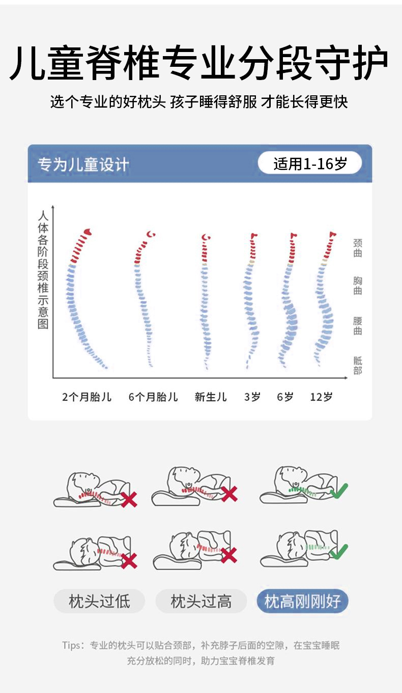 어린이분할척추보호베개 1~3세 유아베개 6~12세 초등학생 수면특수목보호수면베개심