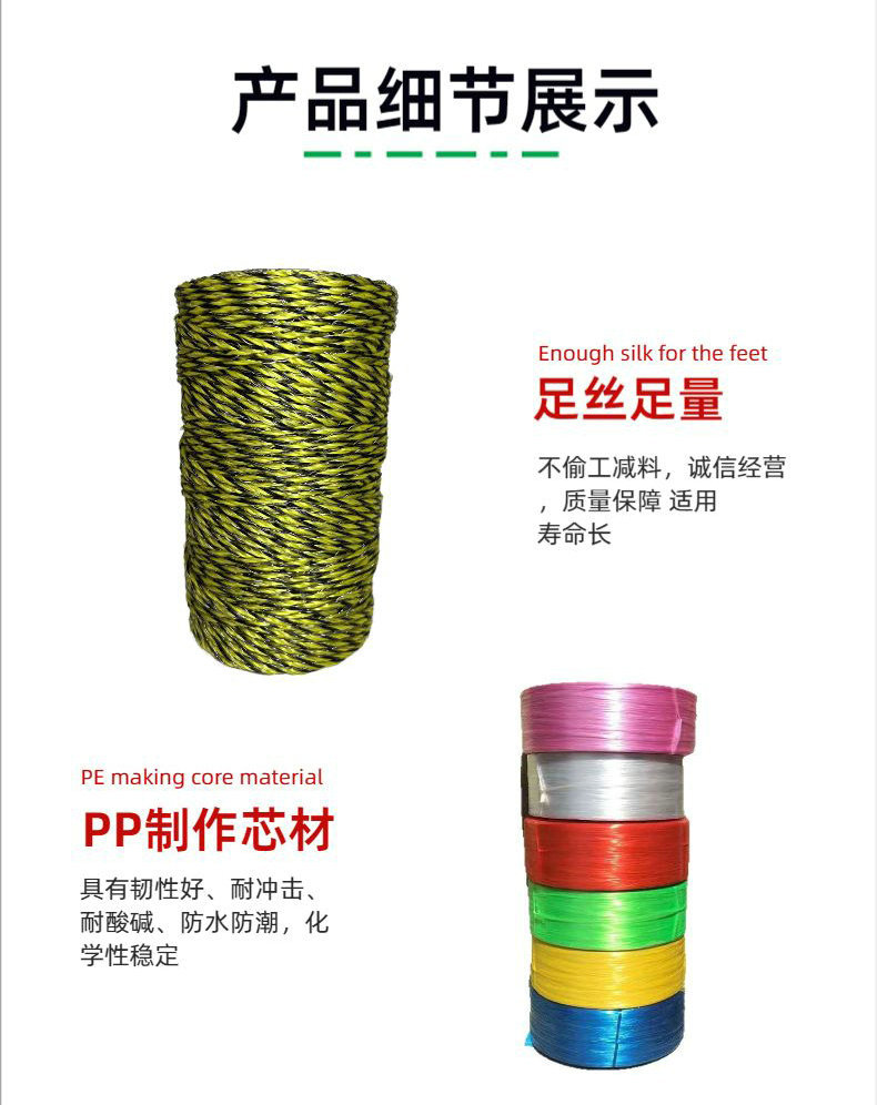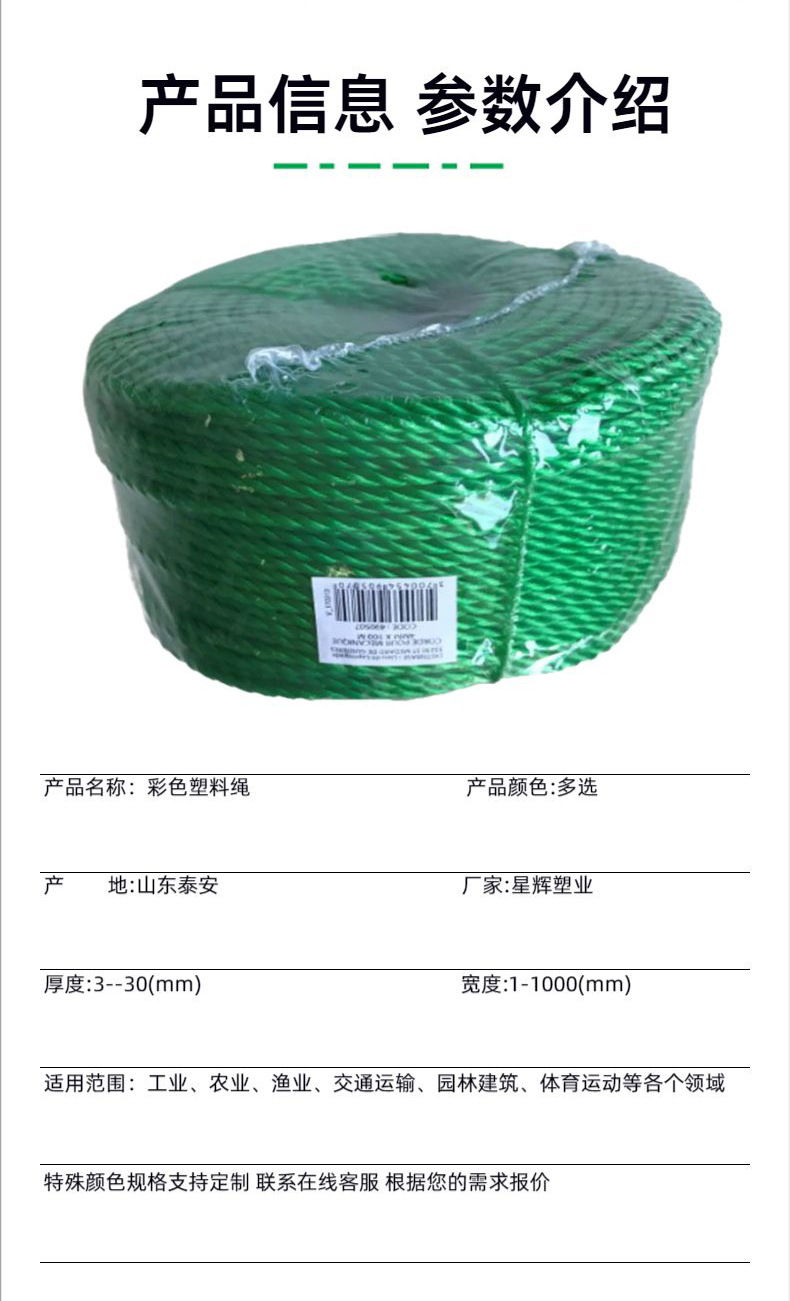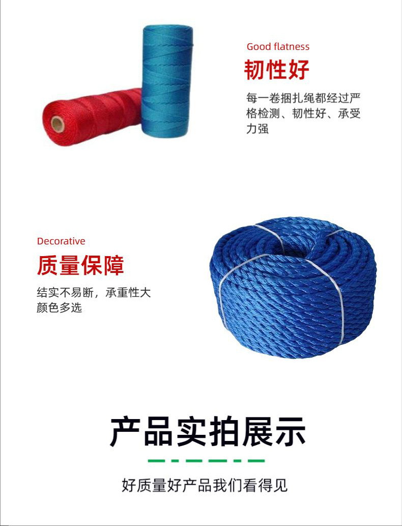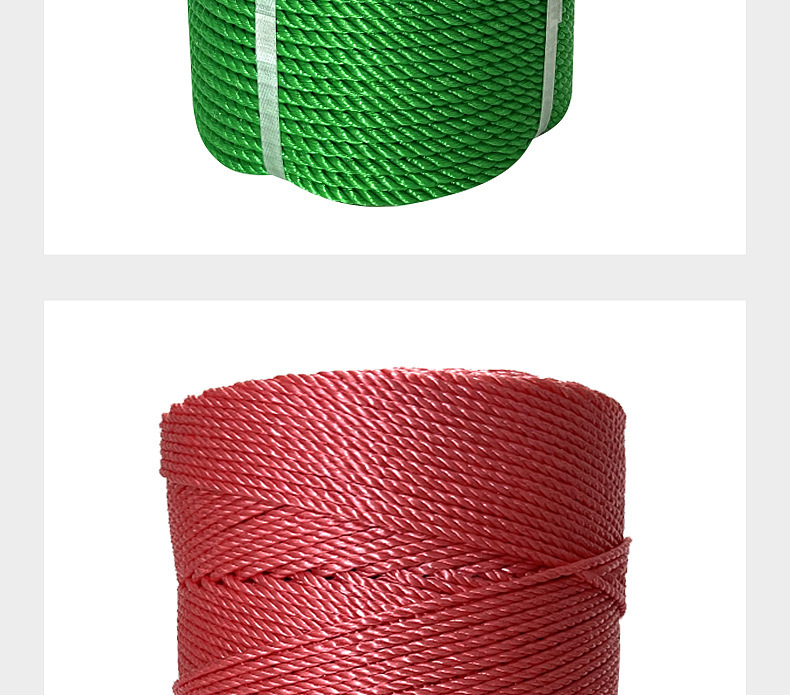 플라스틱 로프 3 가닥 pe 나일론 로프 컬러 pp 찢어짐 필름 로프 포장 로프 직경 3.2mm 땋은 로프