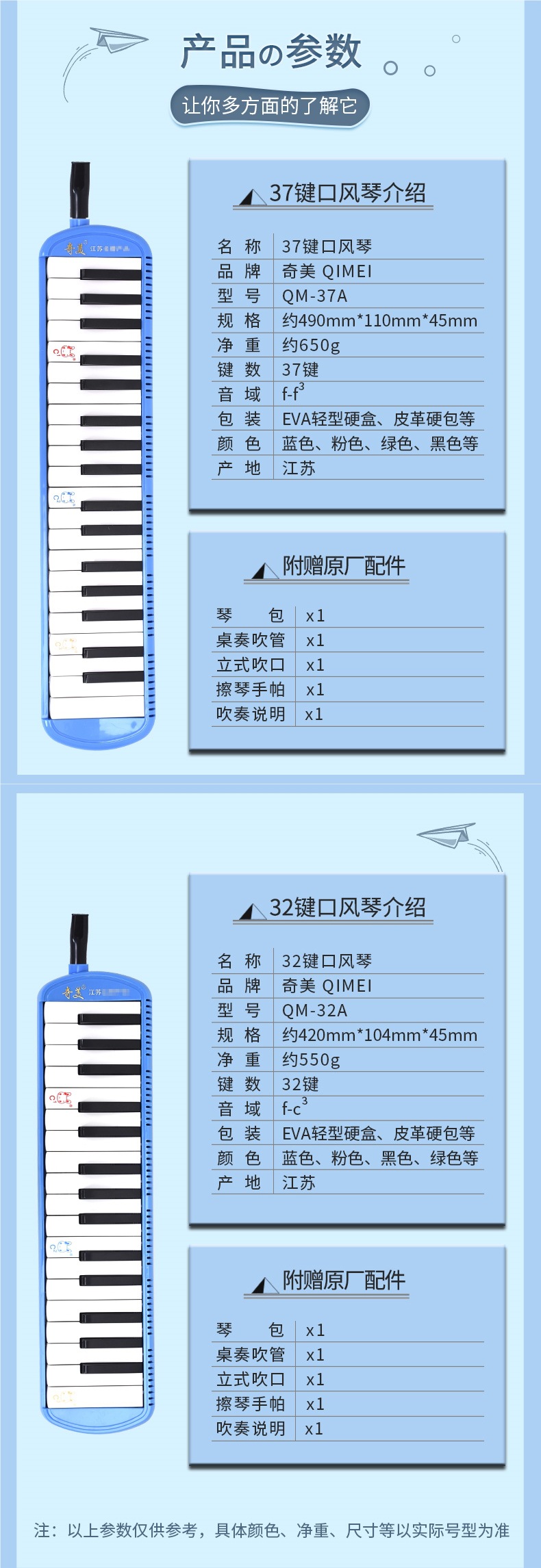 • Anzhe 시리즈 [37키 블루] 경량 소프트 케이스 + 연주 설명서 + 예비 취관 세트