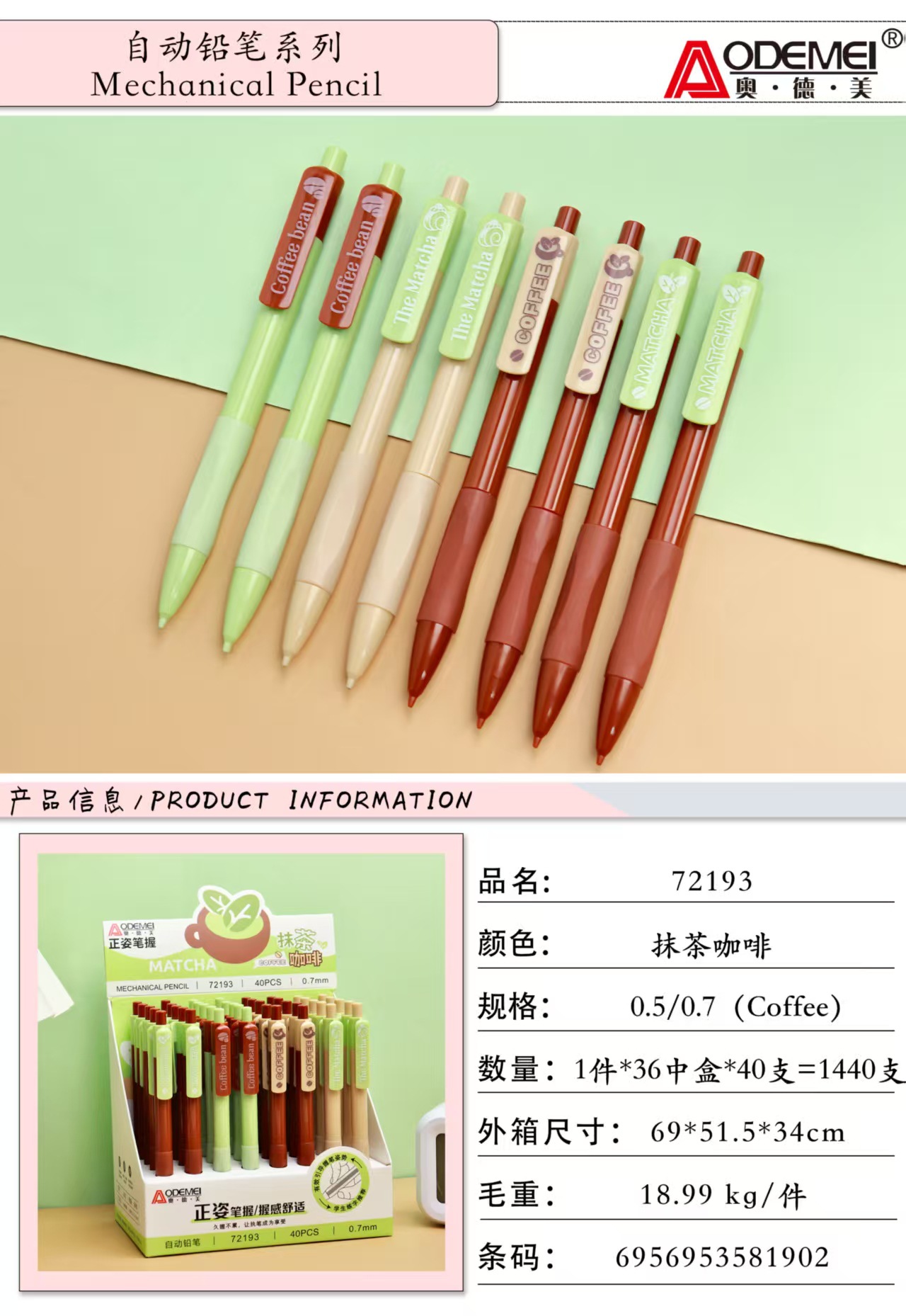 Aodemei 72193 초등 및 중등 학생을위한 크리 에이 티브 말차 커피 색상 샤프 펜슬 자동 연필