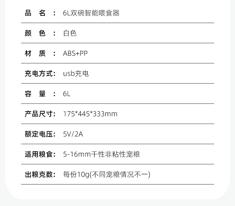 • 6L 자동 공급 모델 - 플라스틱 음식 그릇 장착 [시간 및 정량]|인터넷 연결 필요 없음] (어댑터는 포함되어 있지 않습니다)