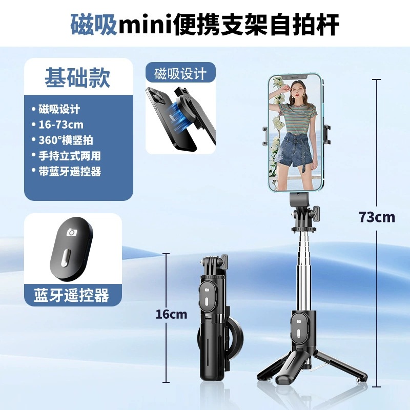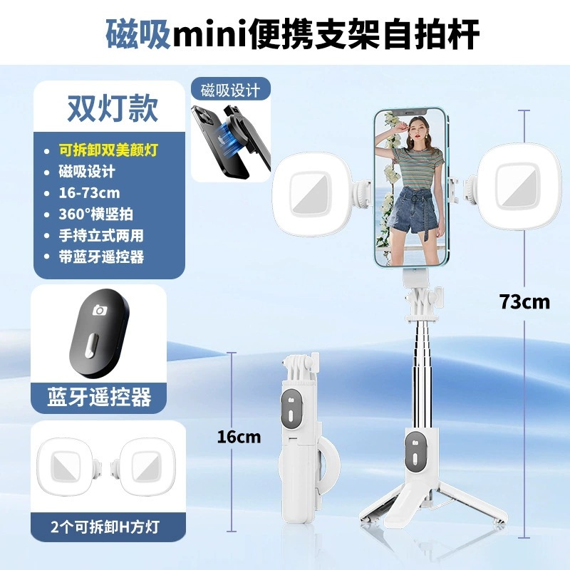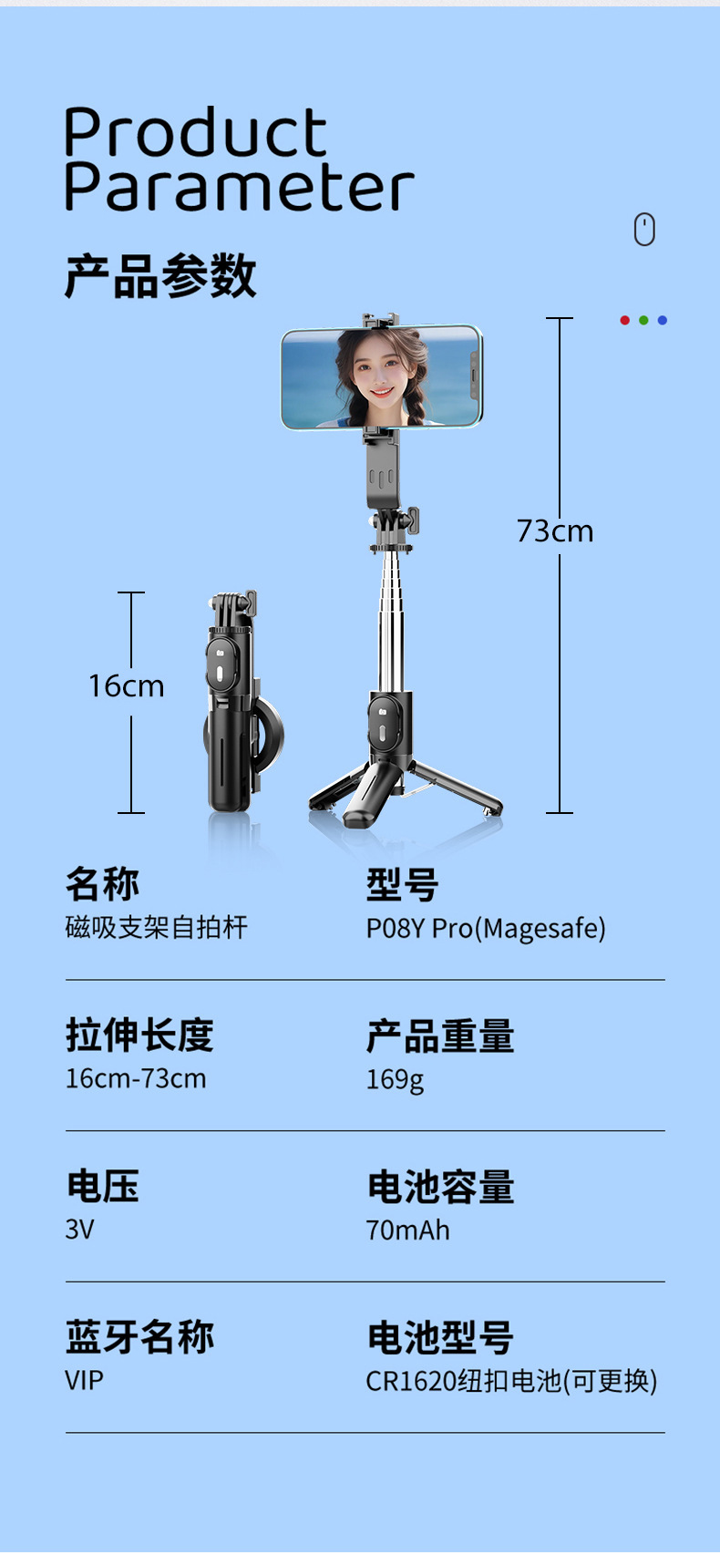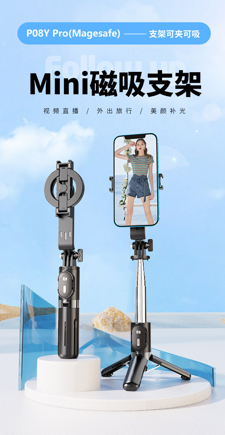 신제품 P08Y 자기 휴대 전화 셀카 스틱 손떨림 방지 텔레스코픽 사진 원격 제어 뷰티 필 라이트 라이브 방송 휴대 전화 홀더