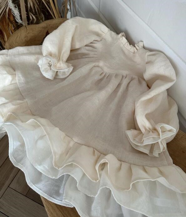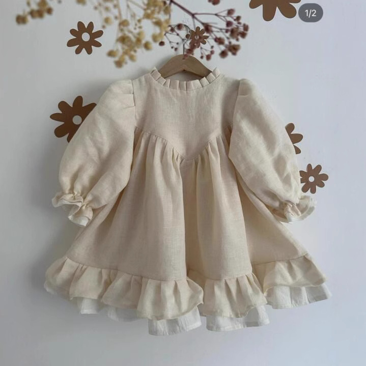 여자 드레스 ins 2025 봄과 가을 리넨 여자 영국 스타일 스플 라이스 캐주얼 궁전 스타일 공주 드레스스토어 가기