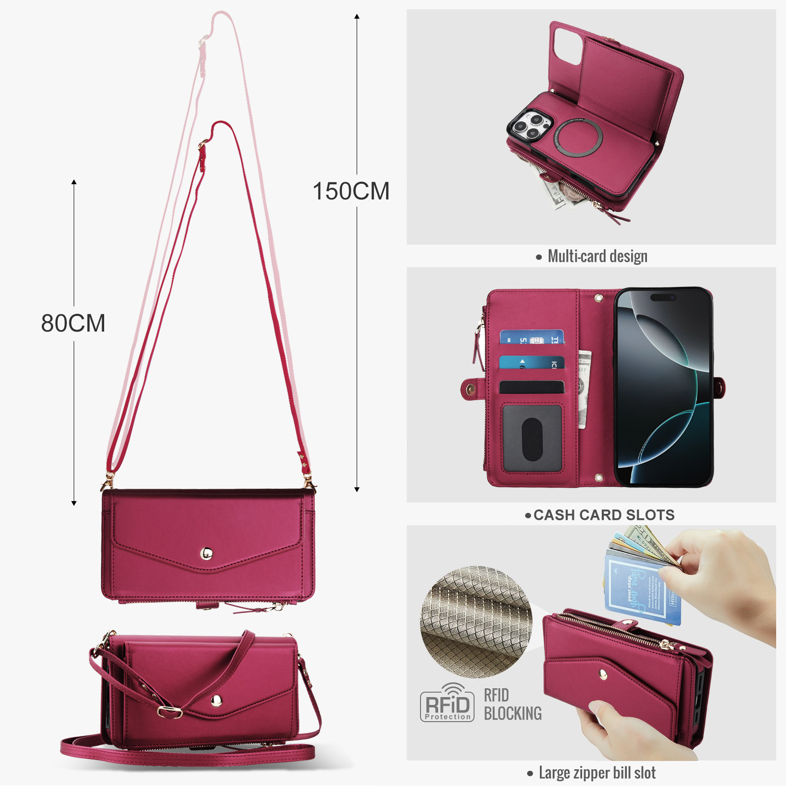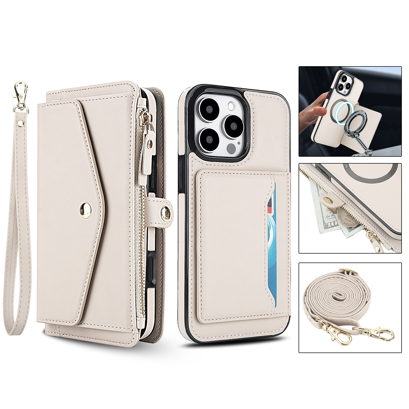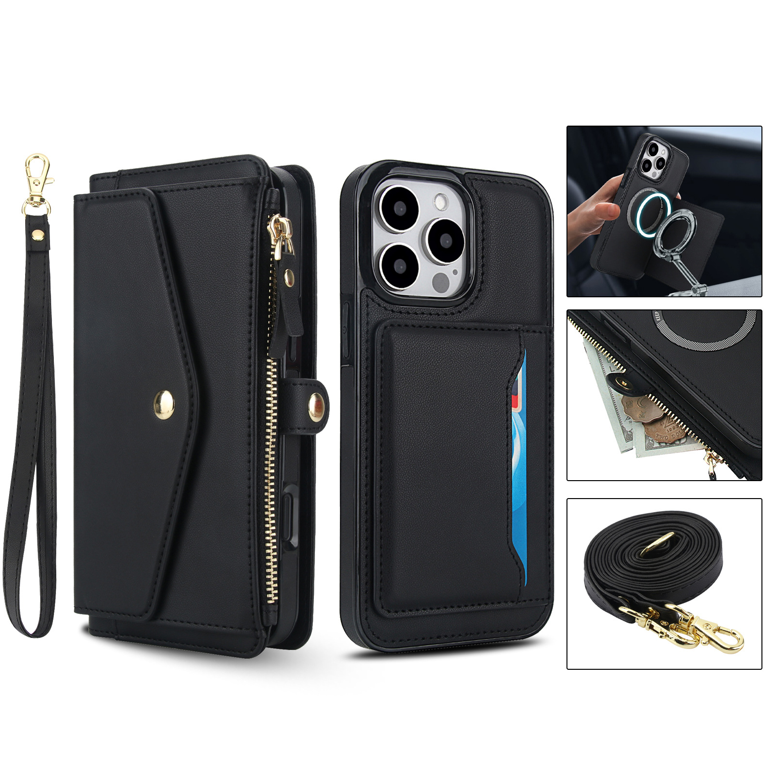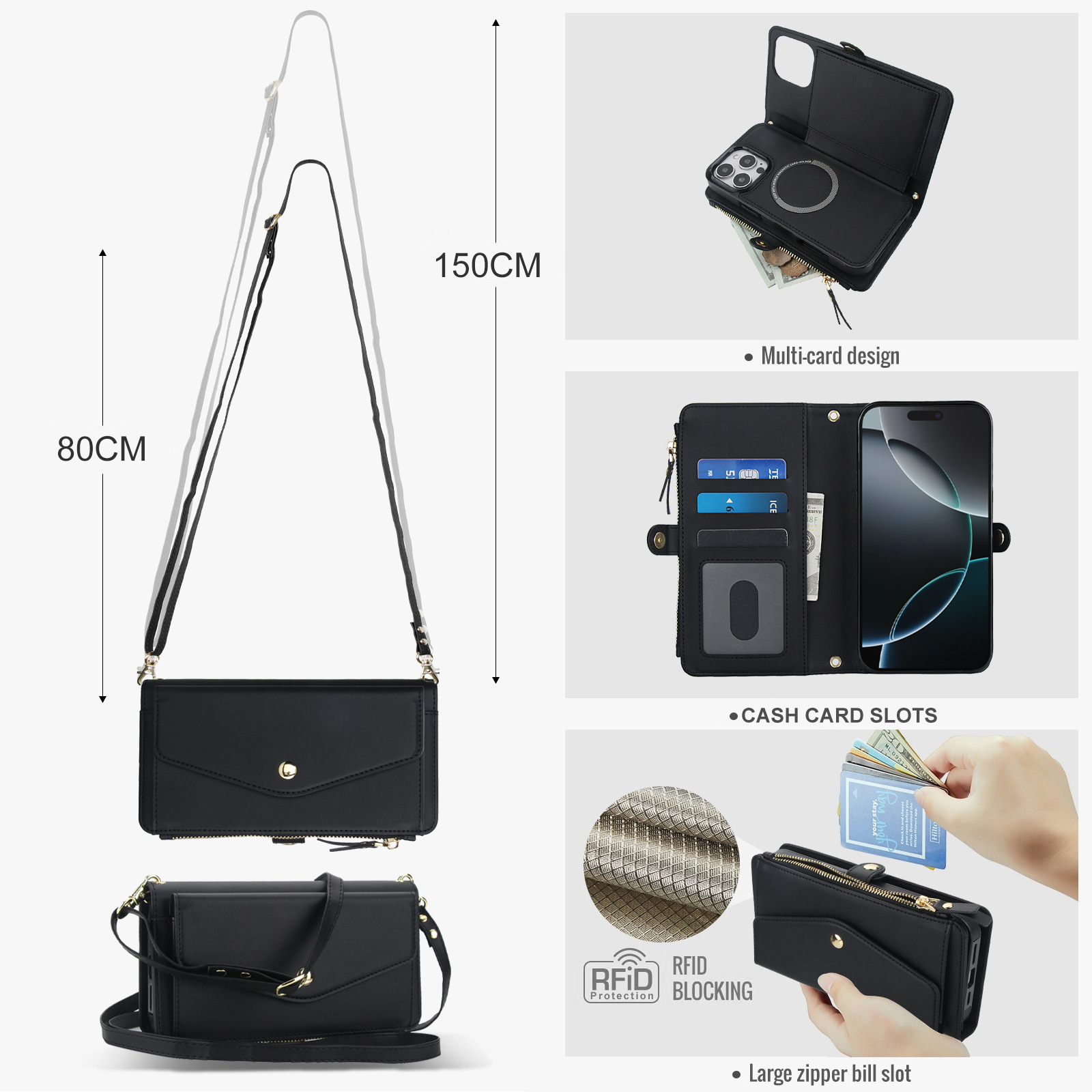 애플 17 RFID 도난 방지 휴대폰 케이스, 삼성 S26 ULTRA 크로스백 지갑형 지퍼 휴대폰 가죽 케이스에 적합