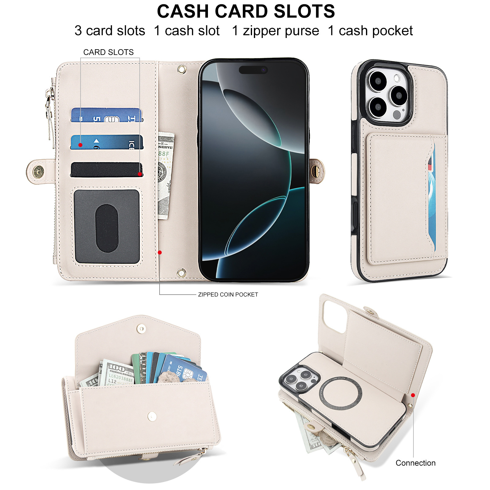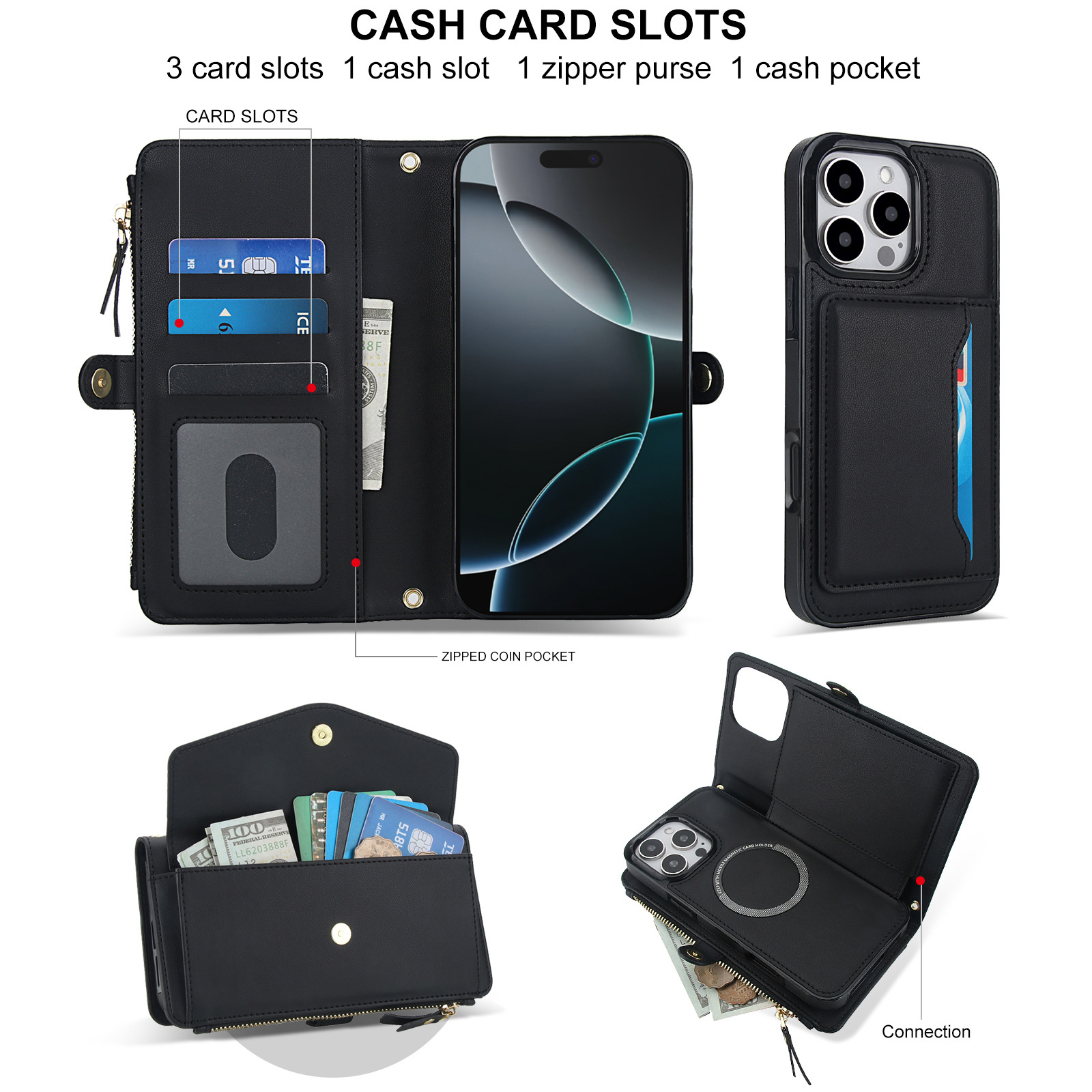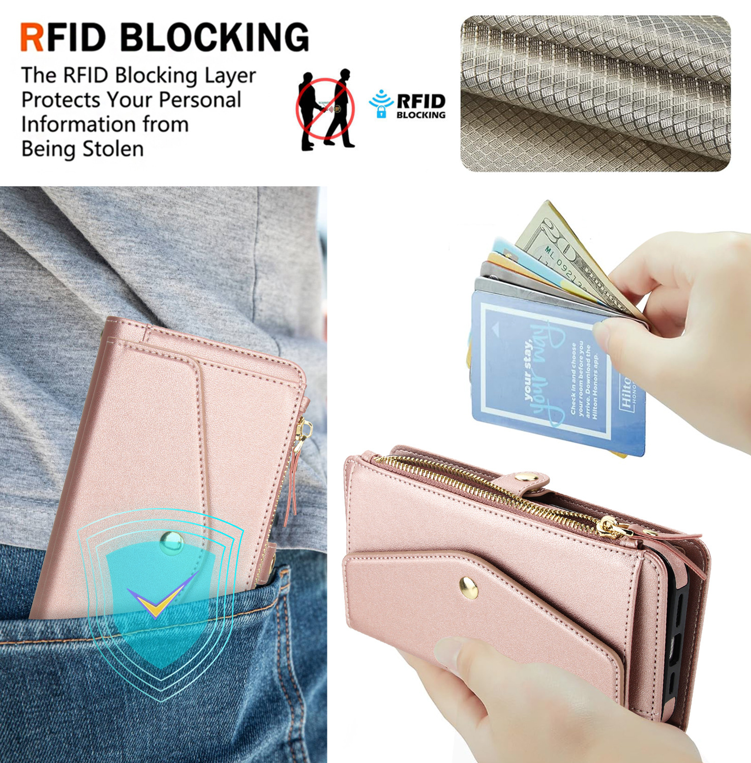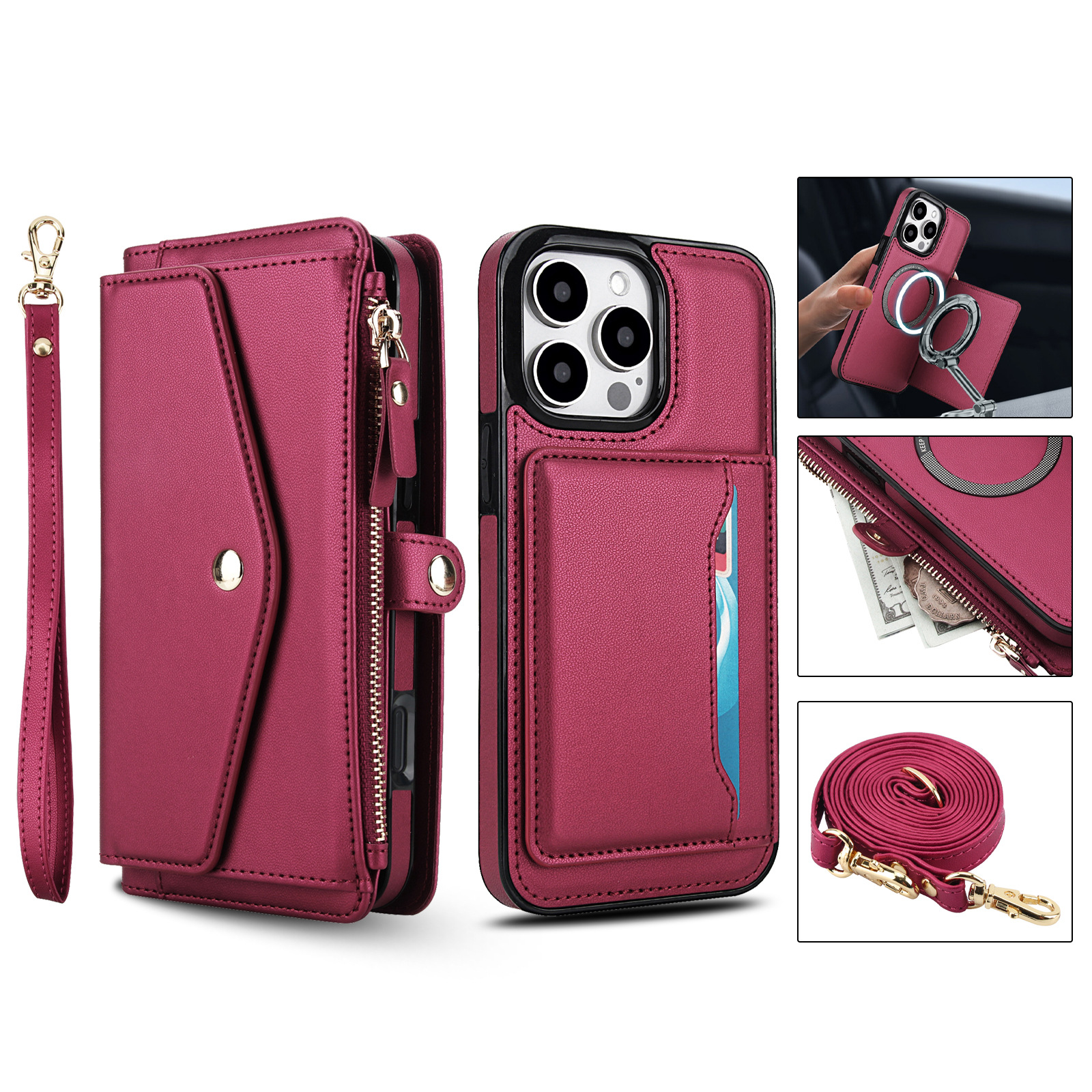 애플 17 RFID 도난 방지 휴대폰 케이스, 삼성 S26 ULTRA 크로스백 지갑형 지퍼 휴대폰 가죽 케이스에 적합