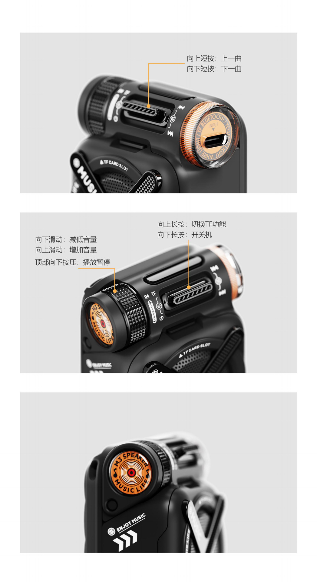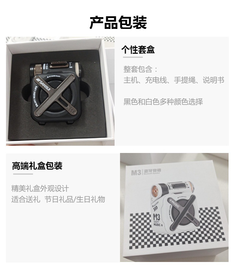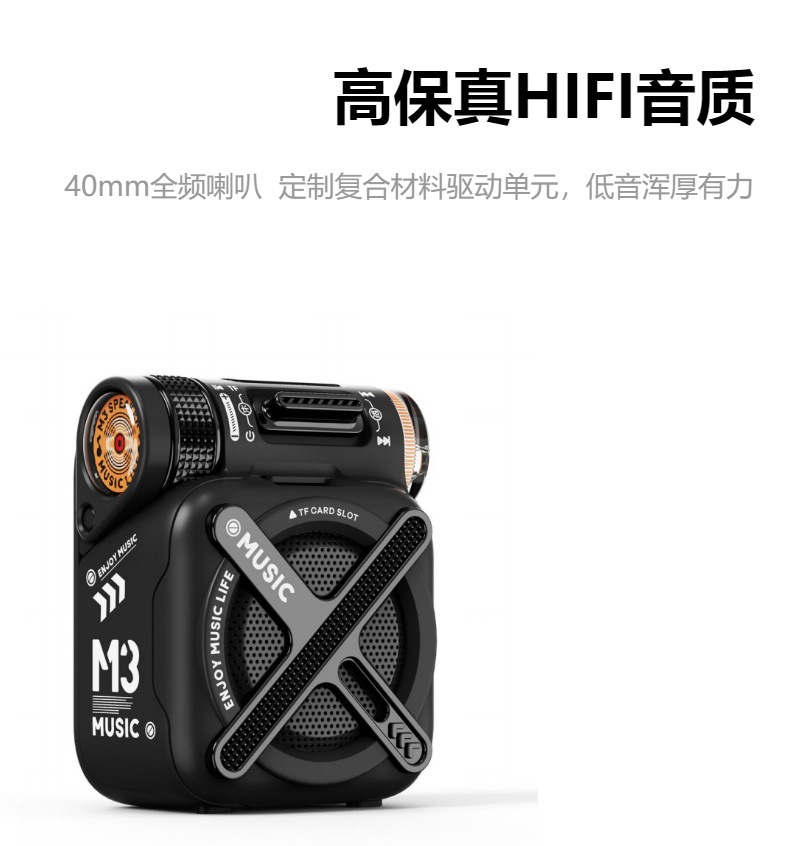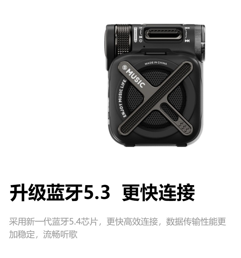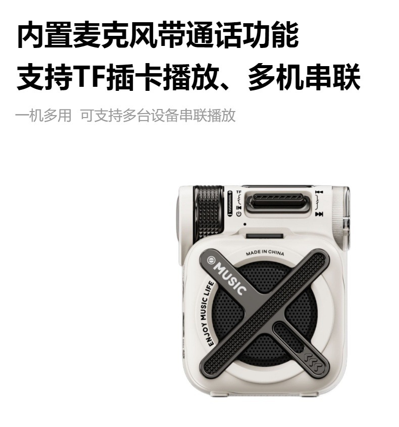 产品功能 蓝牙播放,免提通话,TF插卡,TWS对联