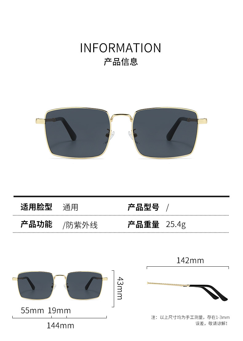 나사형 다리 복고풍 금속 사각형 프레임 선글라스 남성용 고급 유럽 및 미국 국경 간 선글라스 여성용 패션 안경스토어 가기