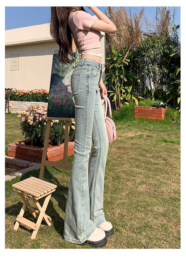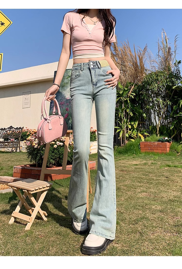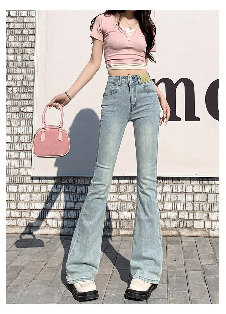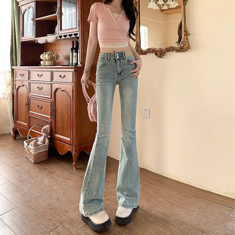 빅사이즈 아메리칸 스타일 핫걸 마이크로 플레어 청바지 여성용 봄가을 2025 신상 하이웨이스트 슬림핏 신축성 있는 바닥 길이 바지스토어 가기