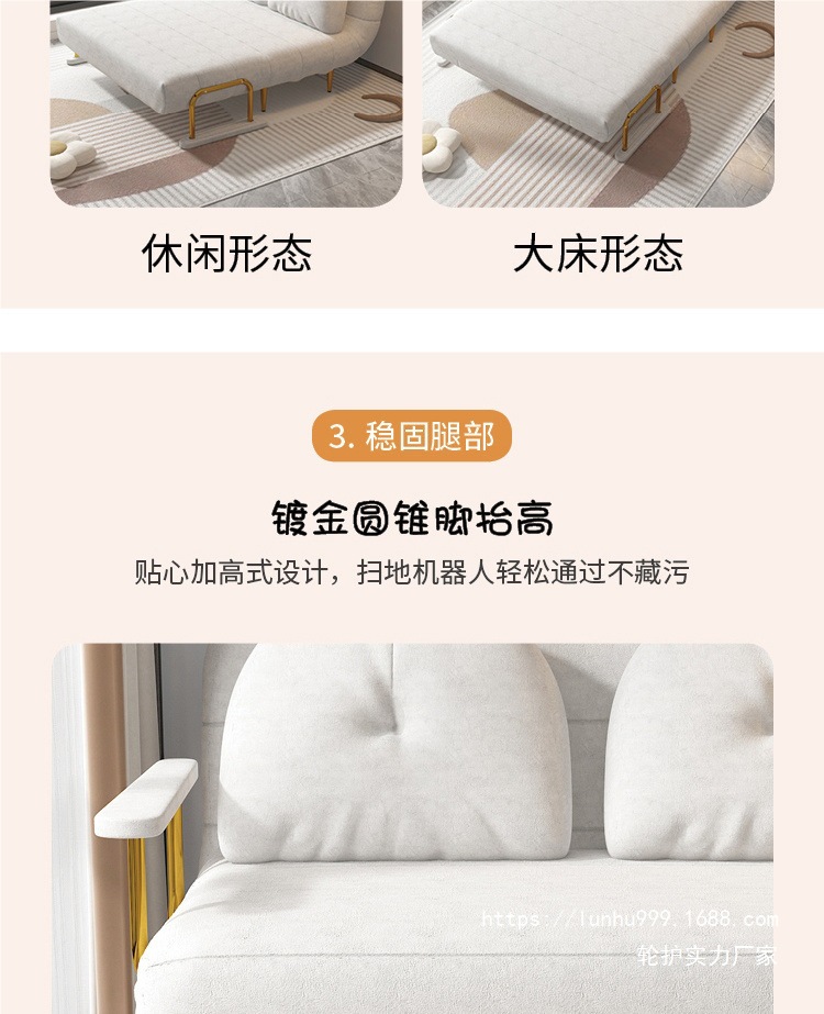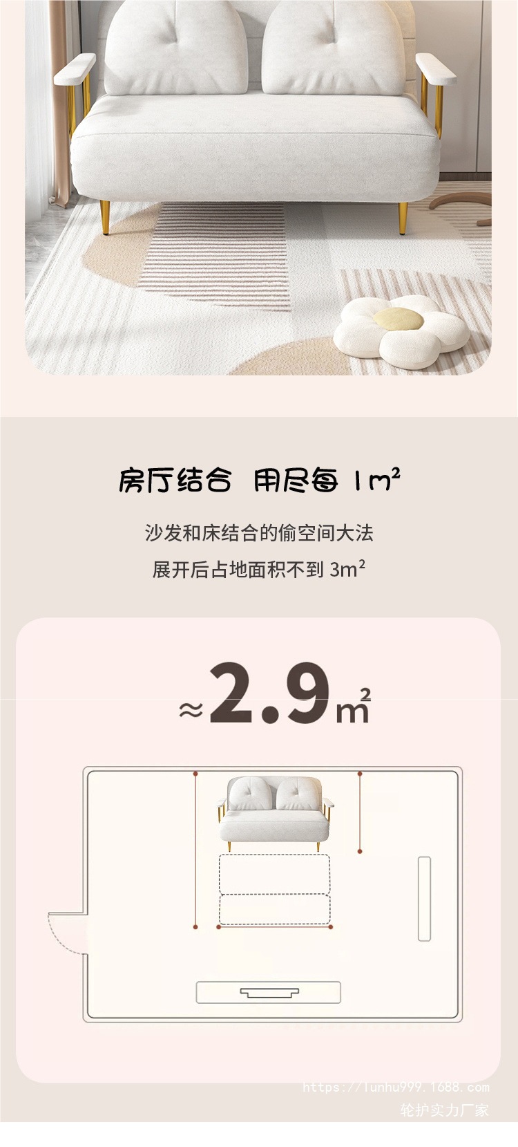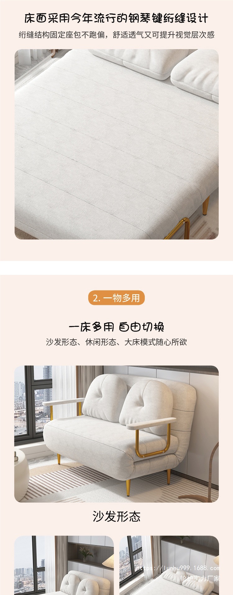 새로운 소파 베드 더블 접이식 소파 작은 아파트 이중 목적 크림 스타일 소파 거실 고양이 스크래치 천 싱글 소파