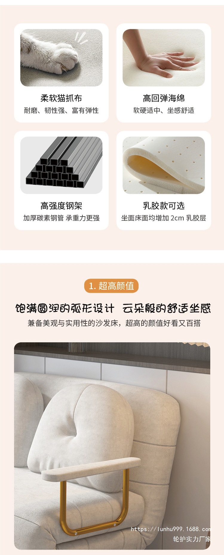 새로운 소파 베드 더블 접이식 소파 작은 아파트 이중 목적 크림 스타일 소파 거실 고양이 스크래치 천 싱글 소파스토어 가기
