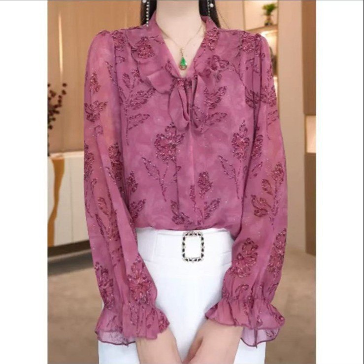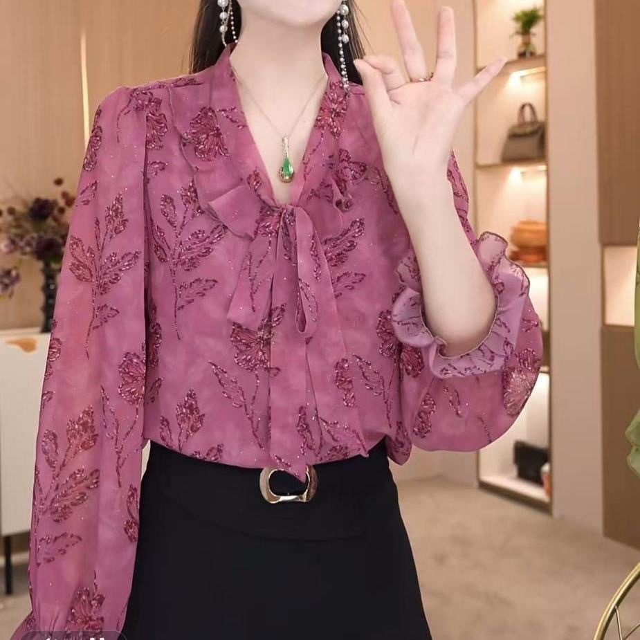가벼운 럭셔리 하이 엔드 중년 어머니 쉬폰 셔츠 2025 새로운 여름 하이 엔드 감년 스타일 셔츠 슬리밍 탑스토어 가기