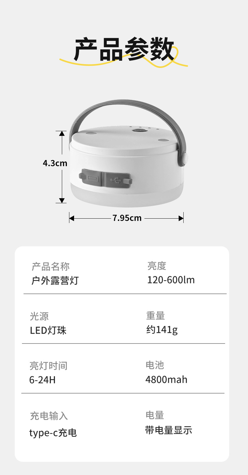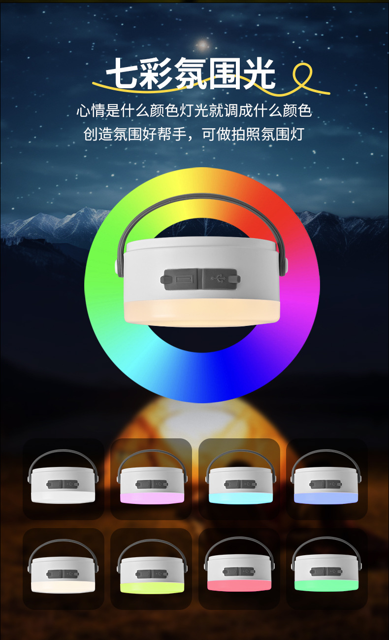 휴대용 충전식 텐트 램프, 야외 강한 조명, 캠핑 전구, 교수형 램프, 비상 초고휘도, 긴 수명의 캠핑 램프