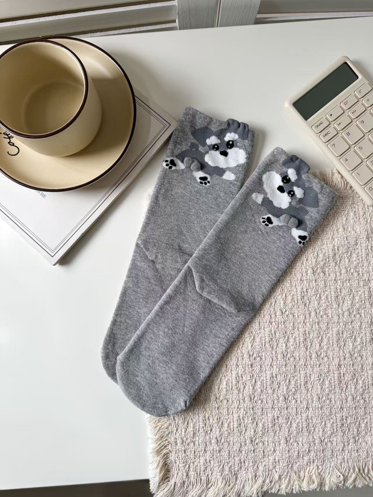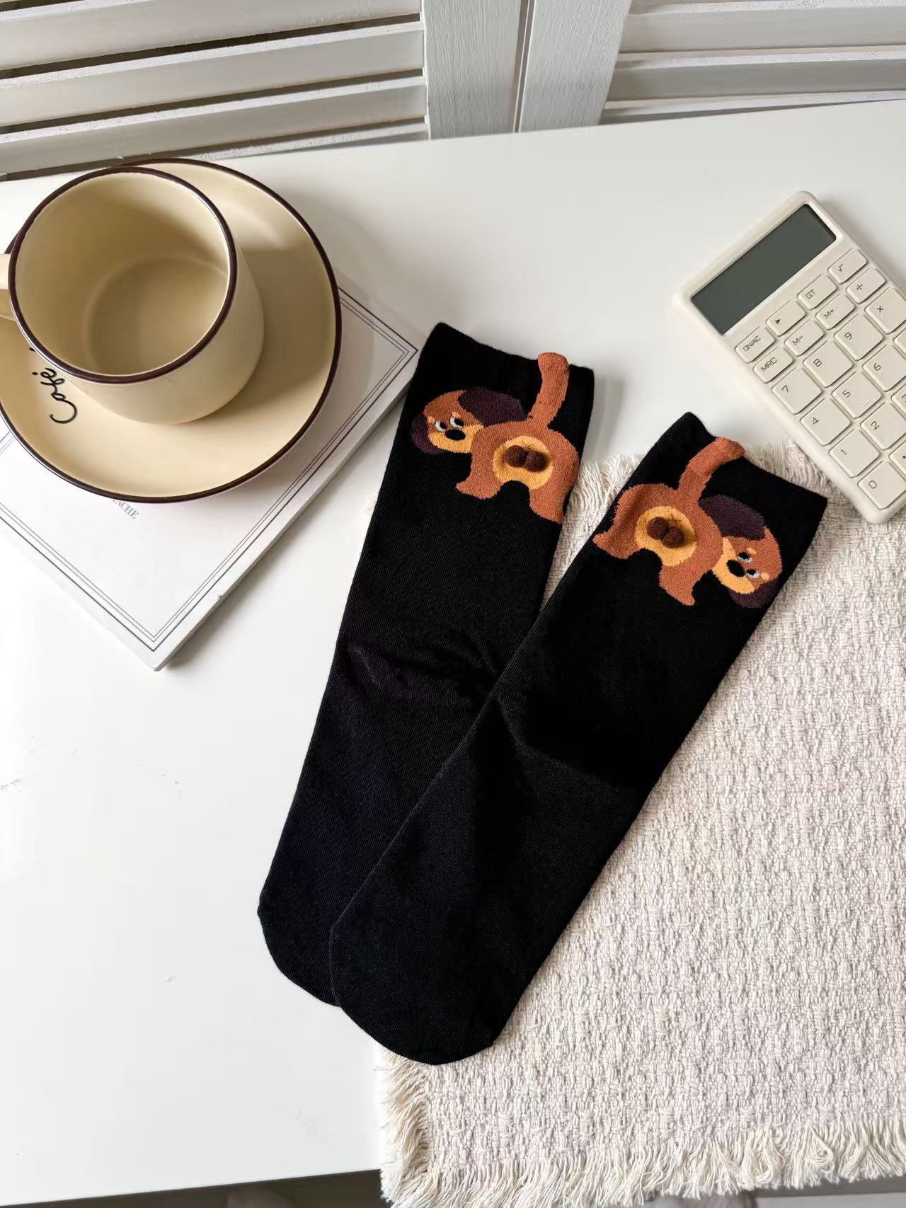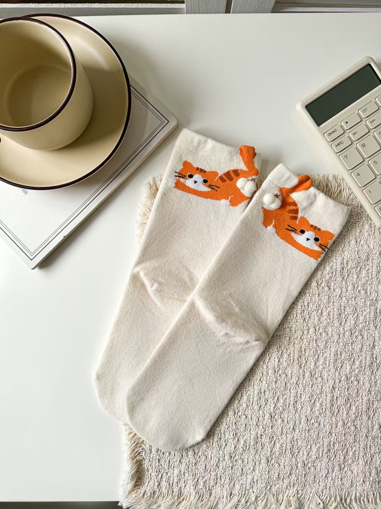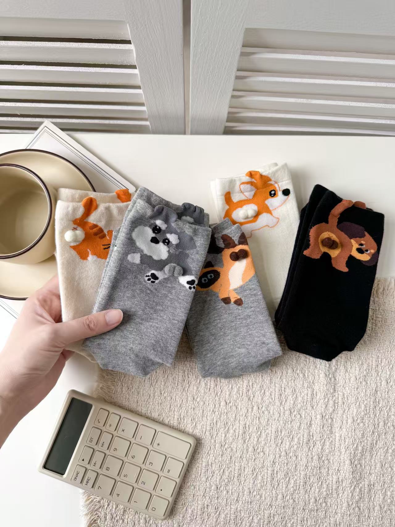 [재고 있음] 여름 여성용 흰색 만화 고양이 징글 달걀 양말 ins 코튼 귀여운 웃긴 중간 튜브 양말