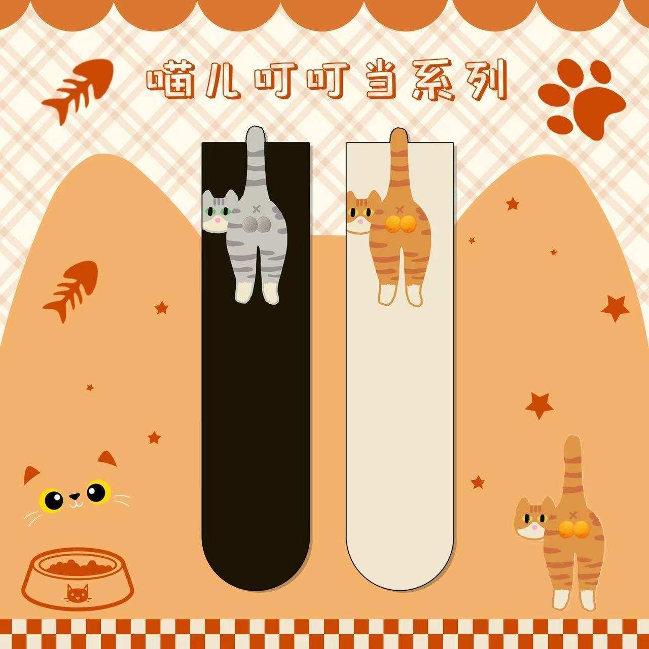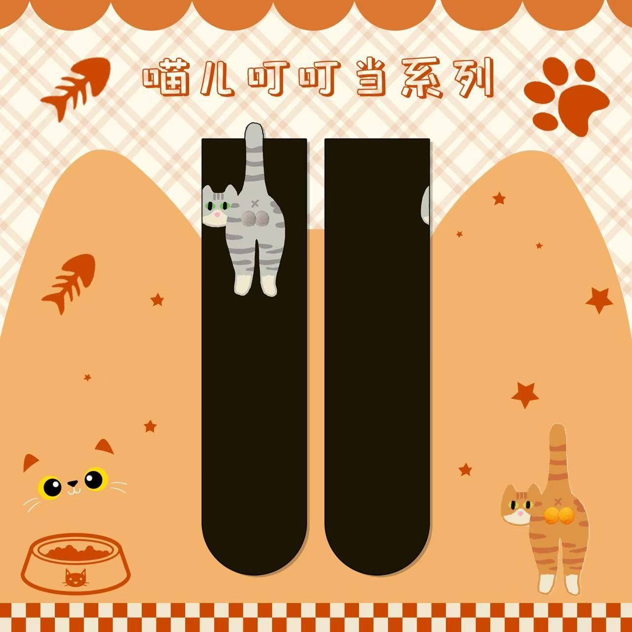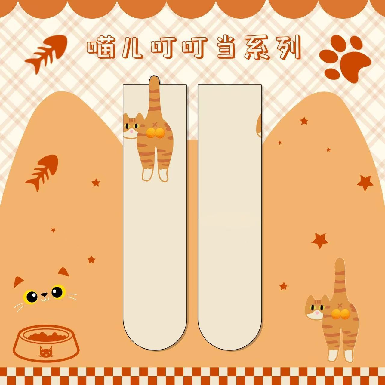 [재고 있음] 여름 여성용 흰색 만화 고양이 징글 달걀 양말 ins 코튼 귀여운 웃긴 중간 튜브 양말스토어 가기