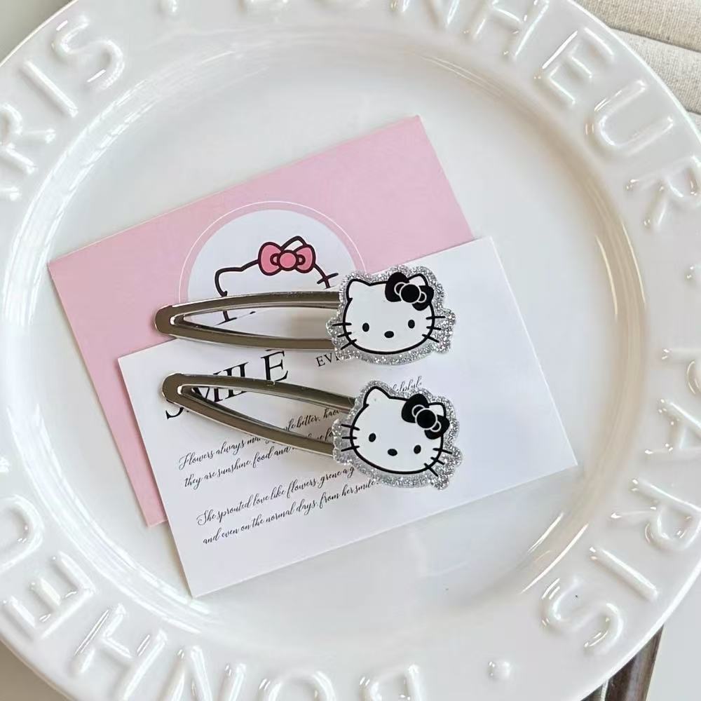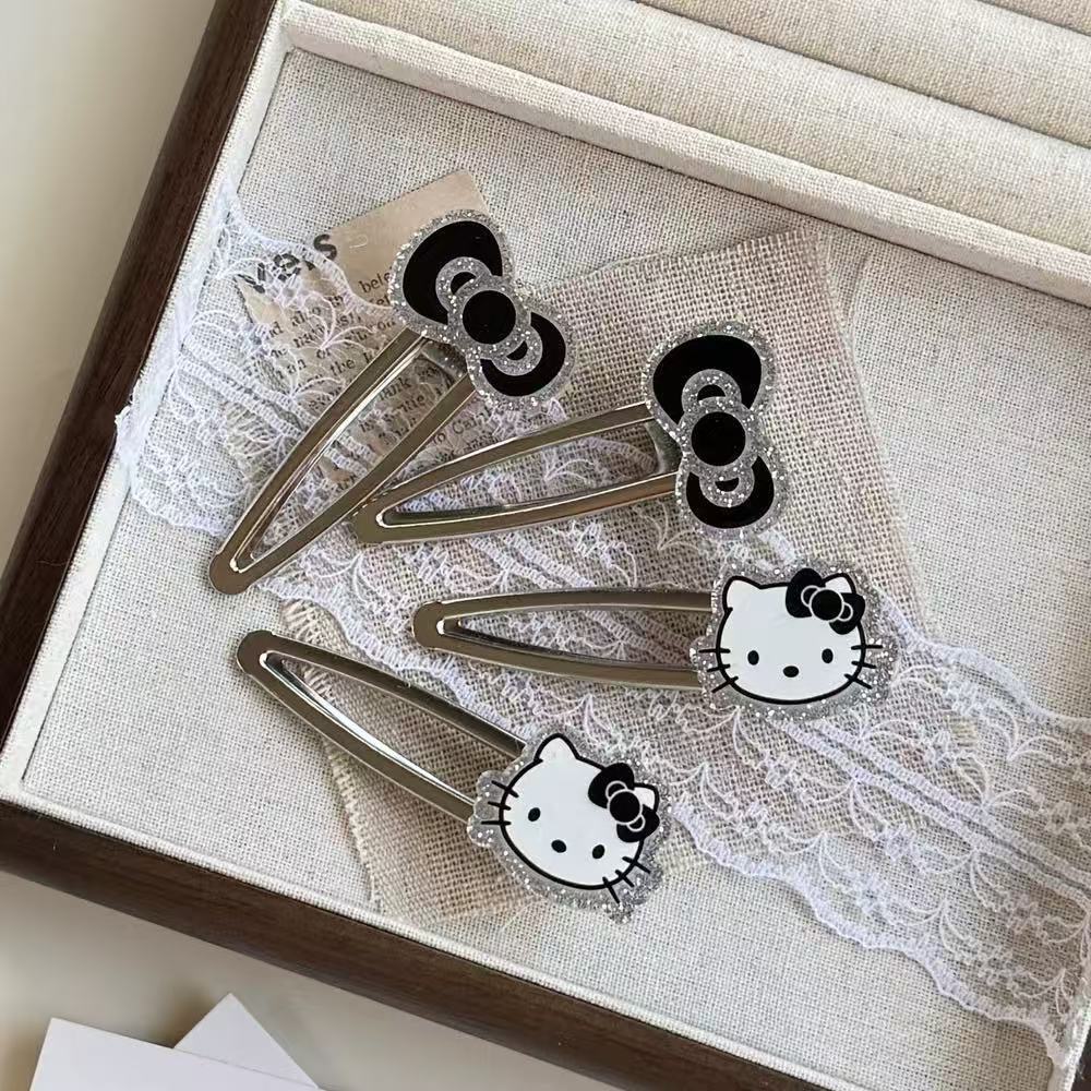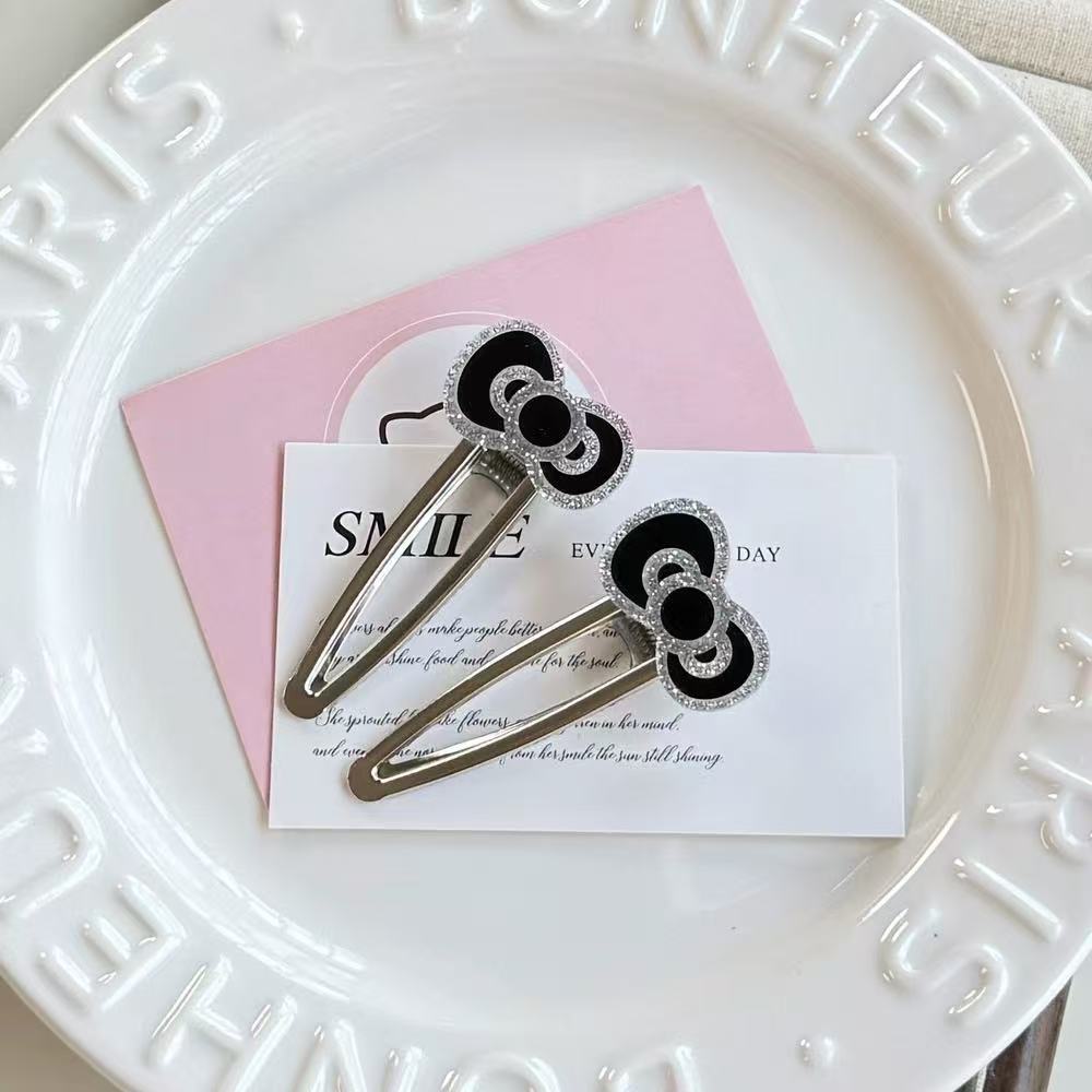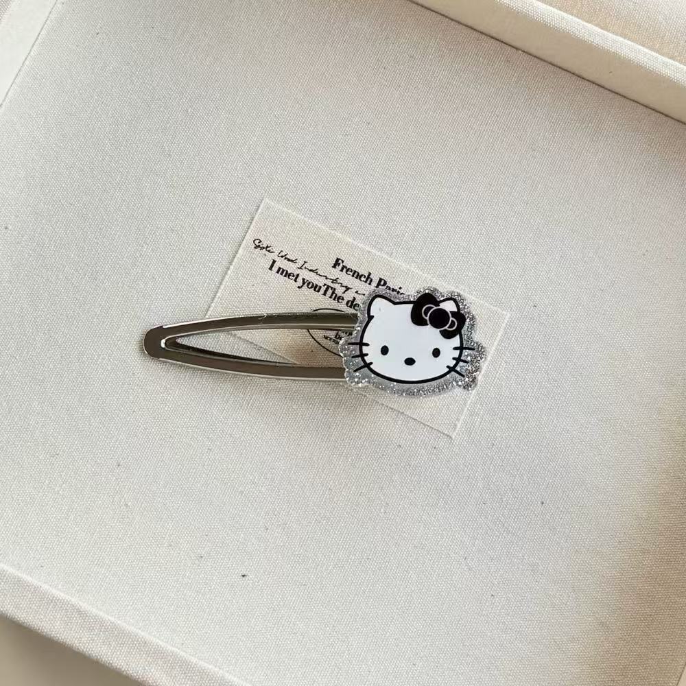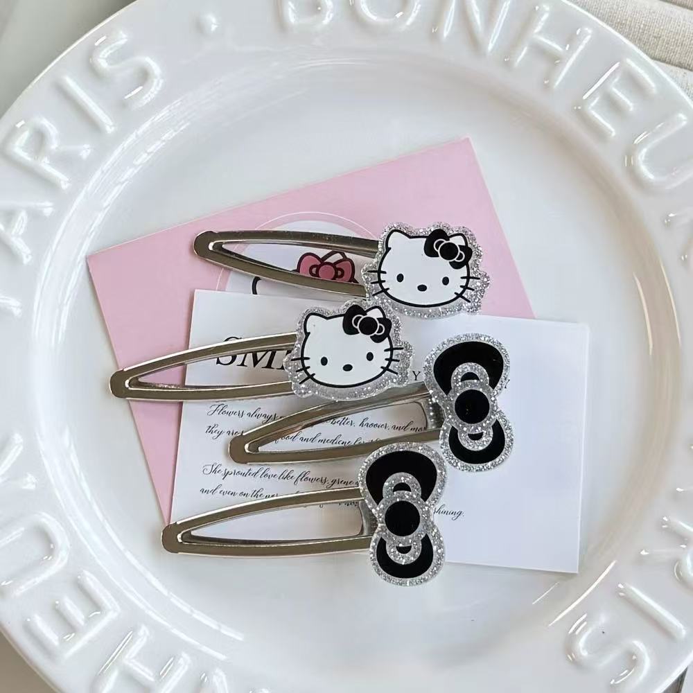 블랙 실버 kt 고양이 합금 머리핀 심플한 디자인 고양이 앞머리 사이드 클립 다용도 머리핀 클립