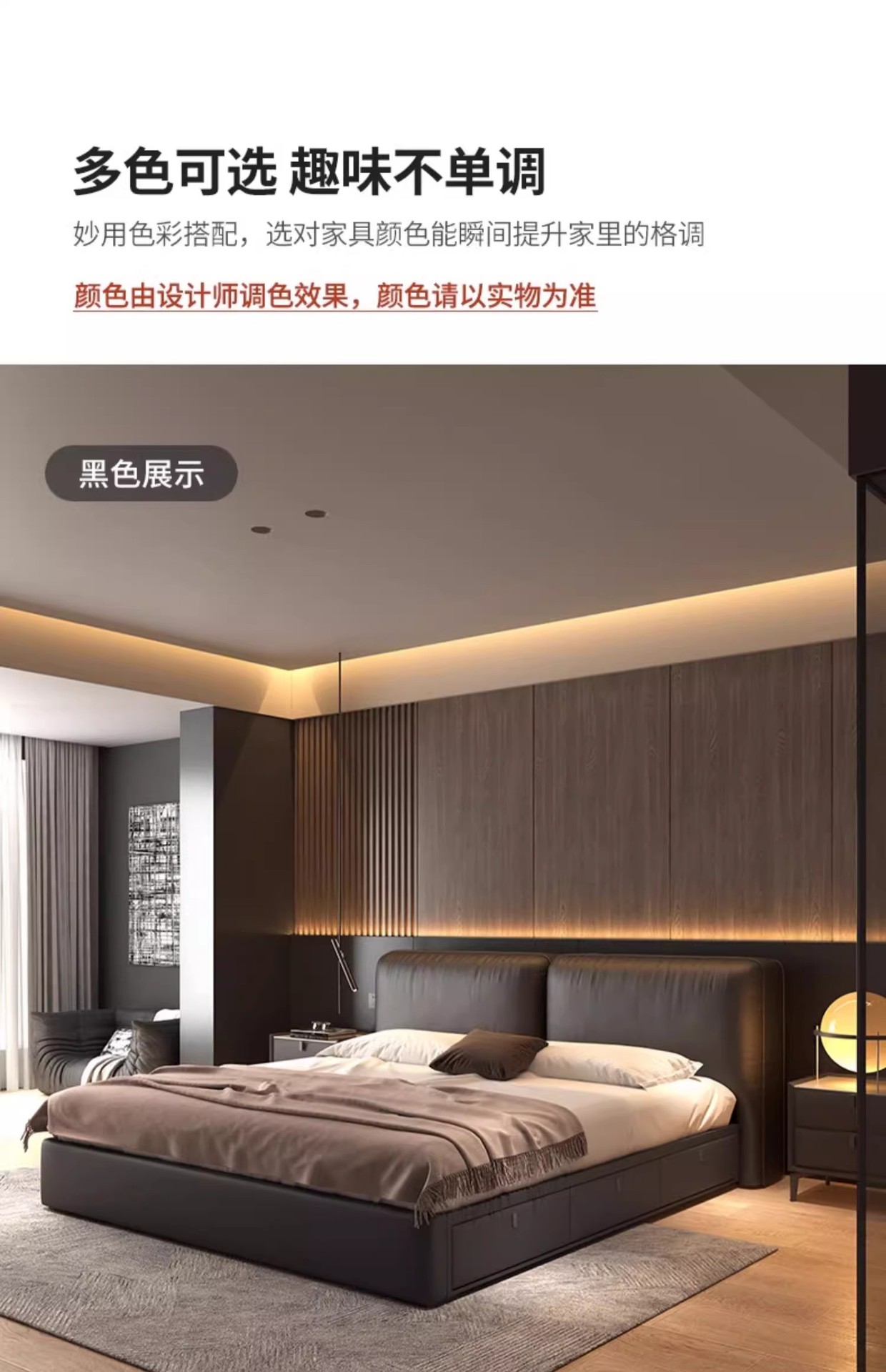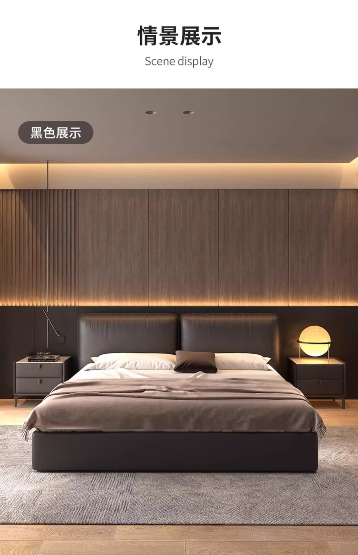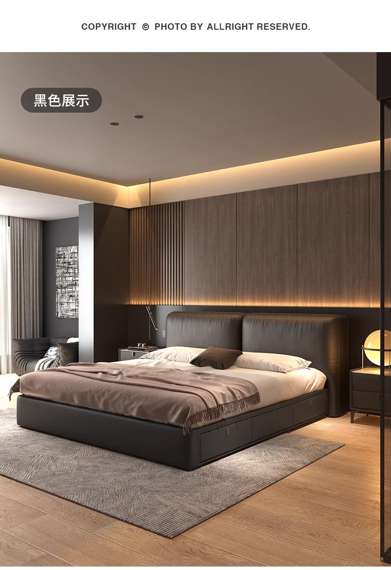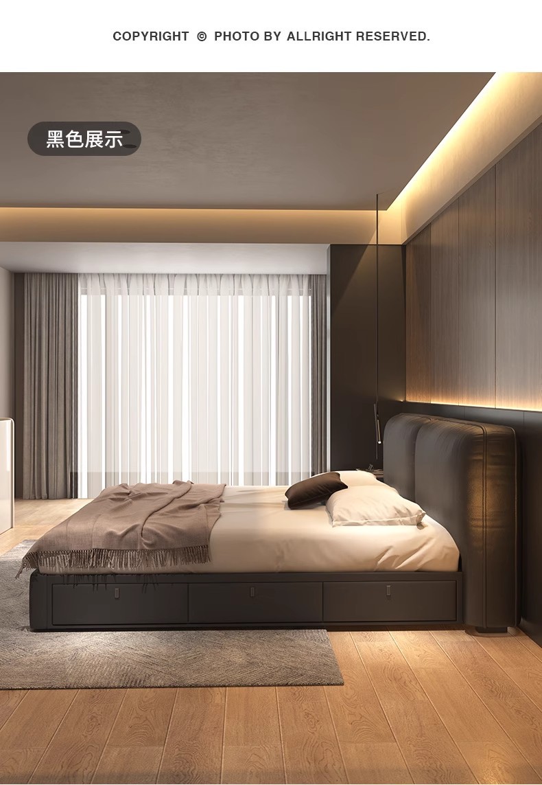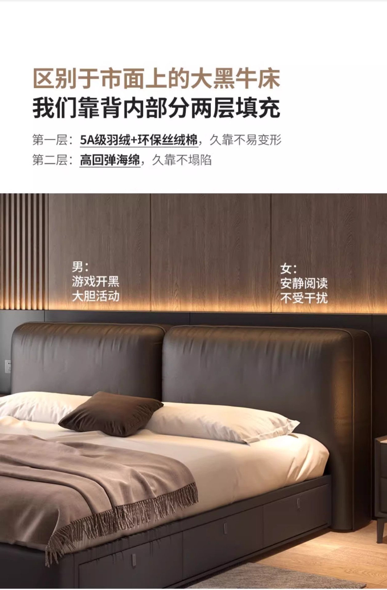 빅 블랙 소 가죽 침대 마스터 침실 더블 침대 소프트 박스형 수납 침대 이탈리안 모던 미니멀리스트 1.8m 웨딩 침대스토어 가기