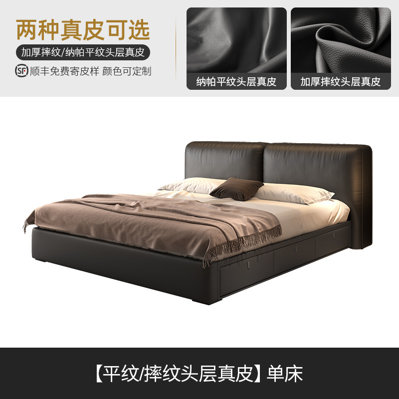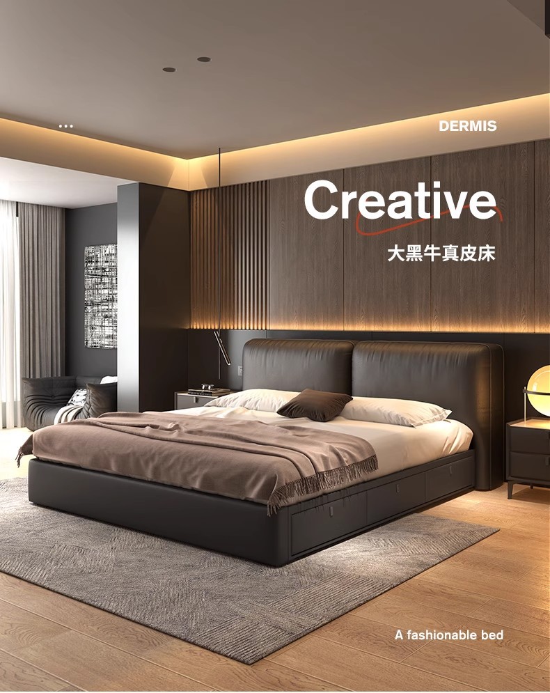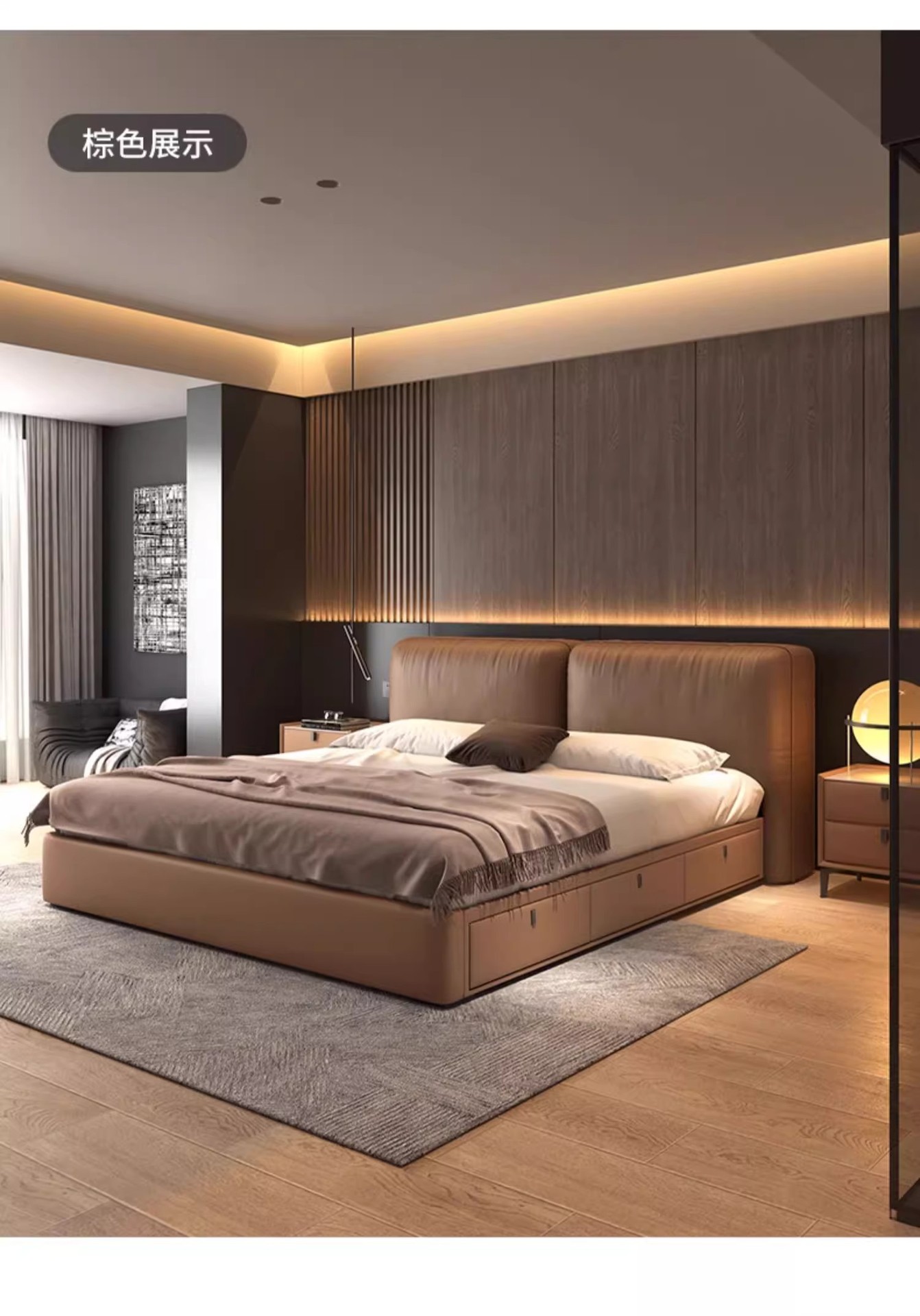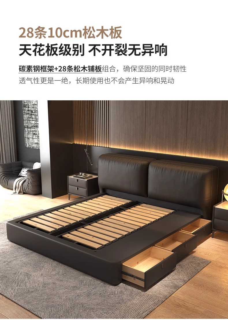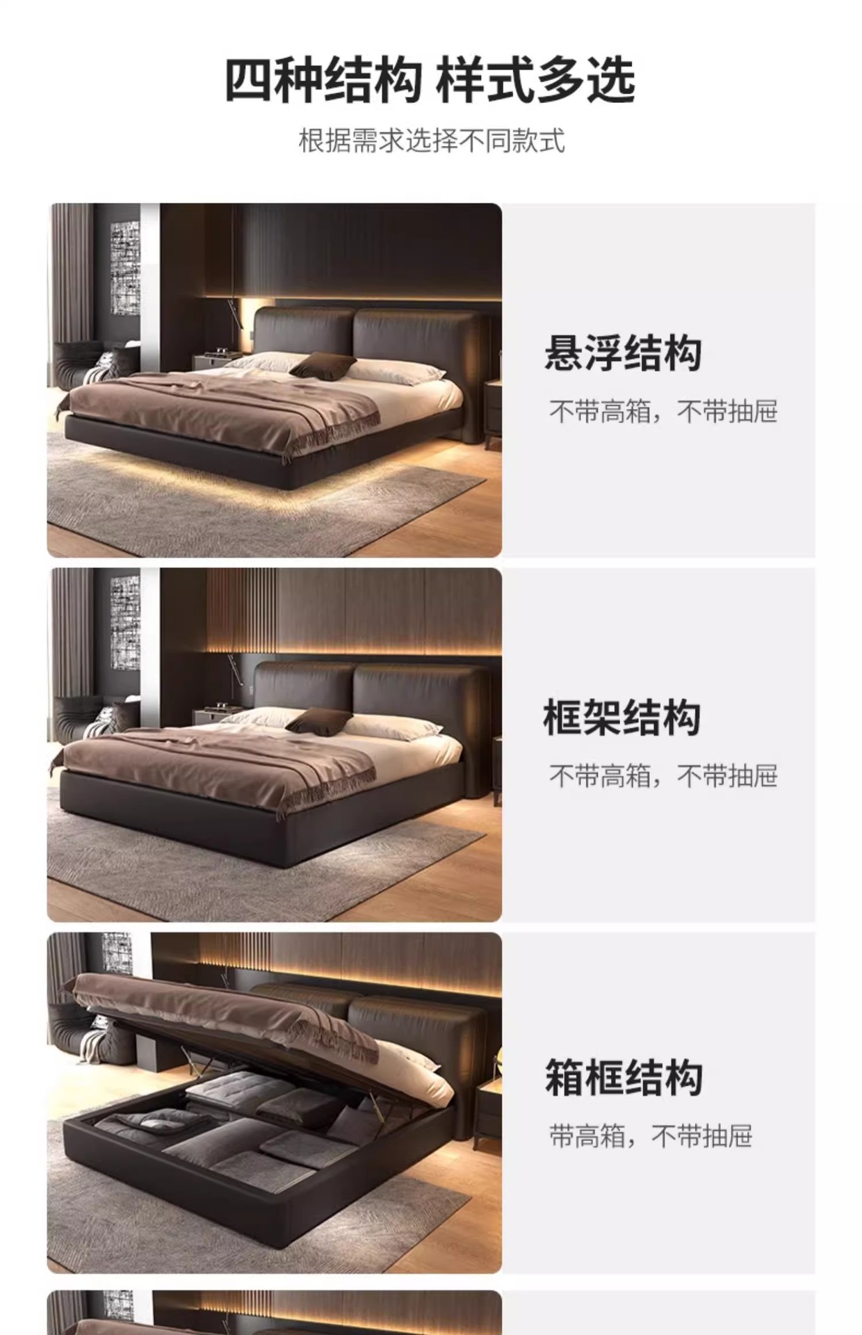 빅 블랙 소 가죽 침대 마스터 침실 더블 침대 소프트 박스형 수납 침대 이탈리안 모던 미니멀리스트 1.8m 웨딩 침대스토어 가기