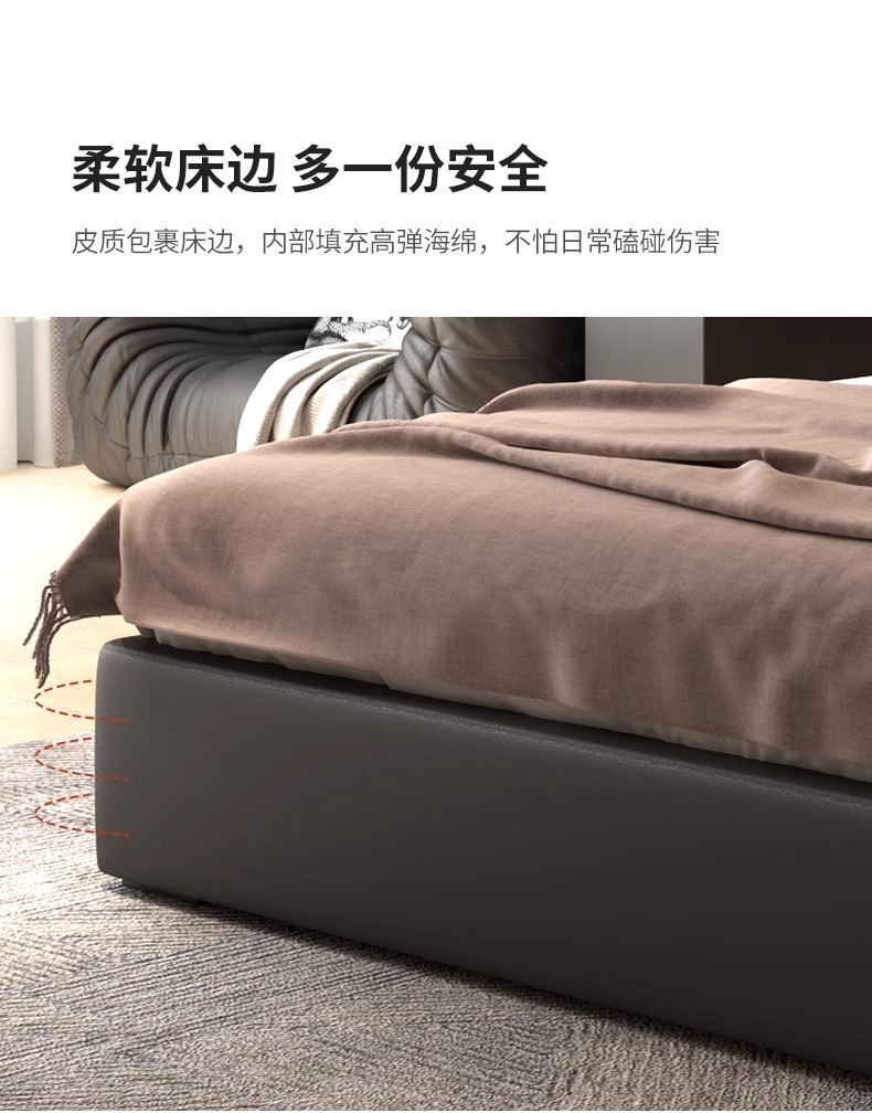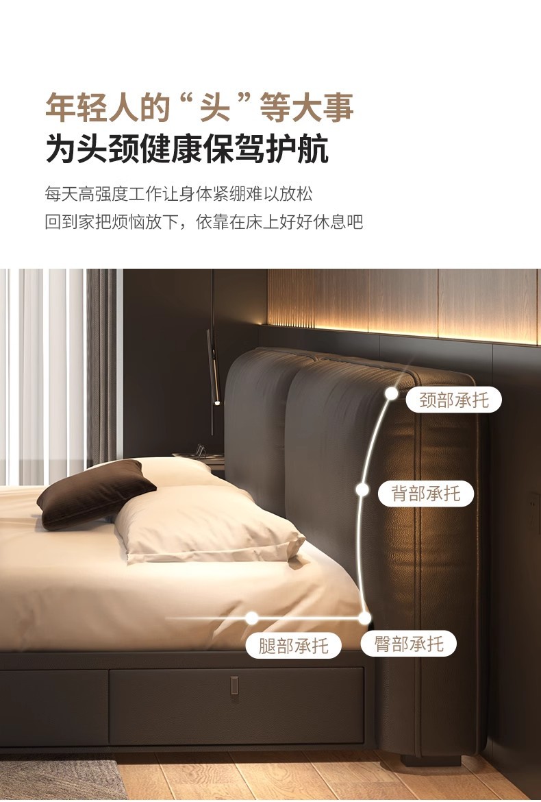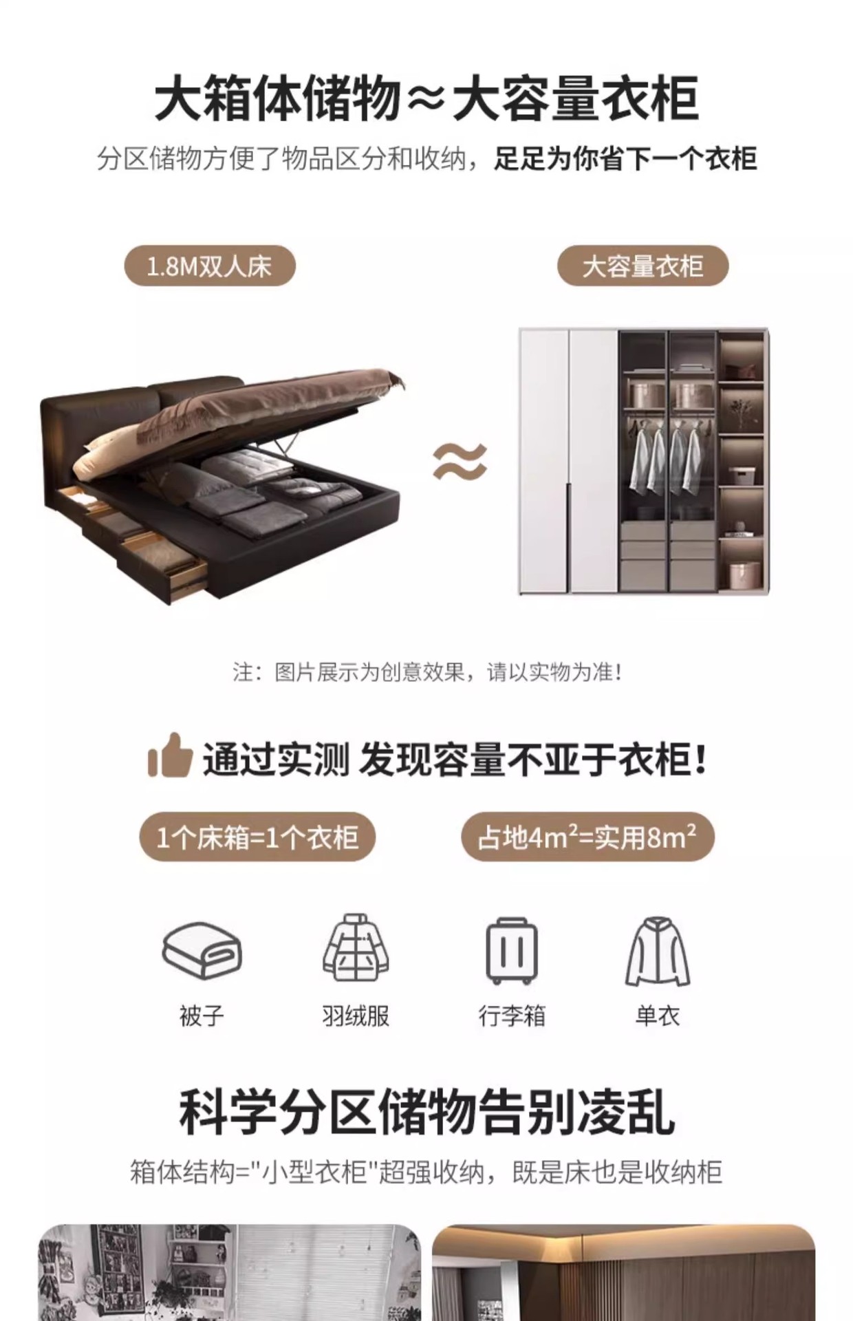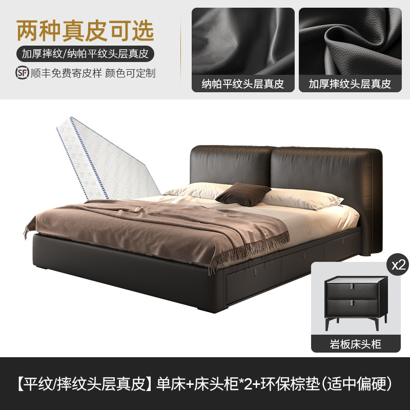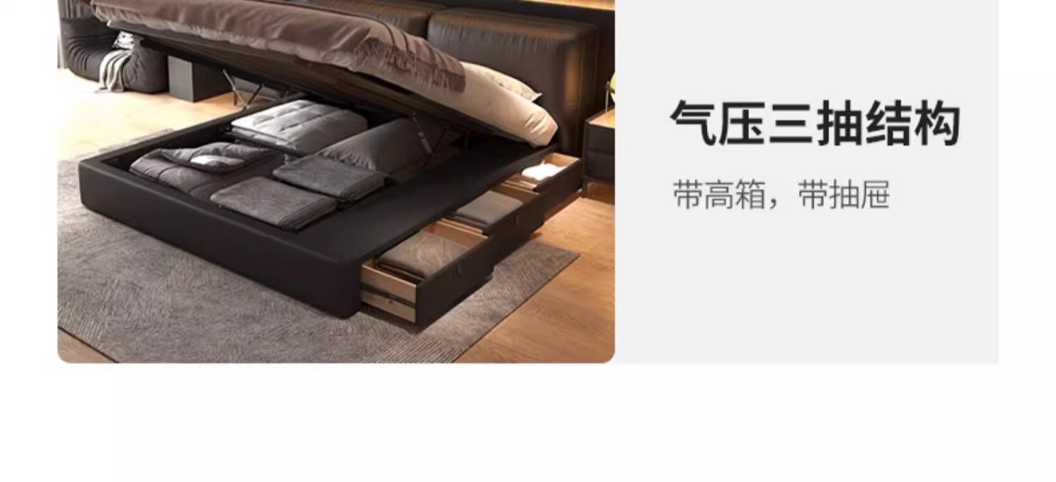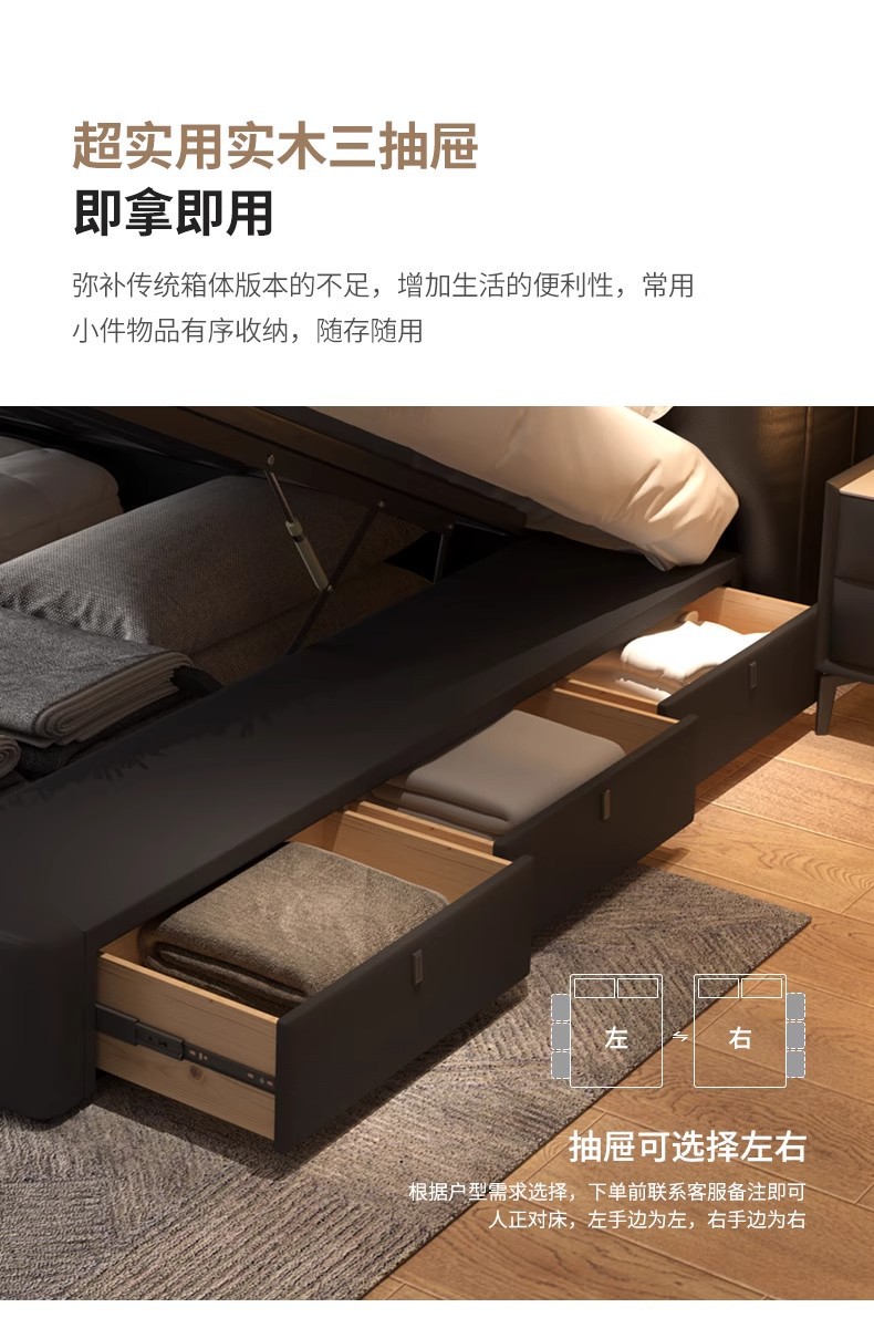 빅 블랙 소 가죽 침대 마스터 침실 더블 침대 소프트 박스형 수납 침대 이탈리안 모던 미니멀리스트 1.8m 웨딩 침대스토어 가기