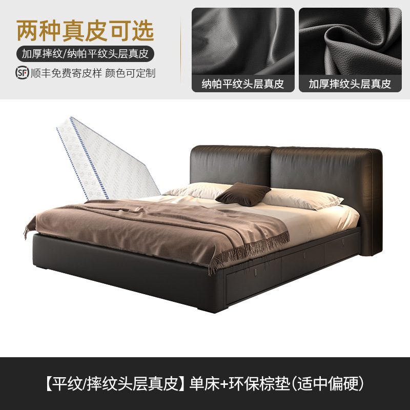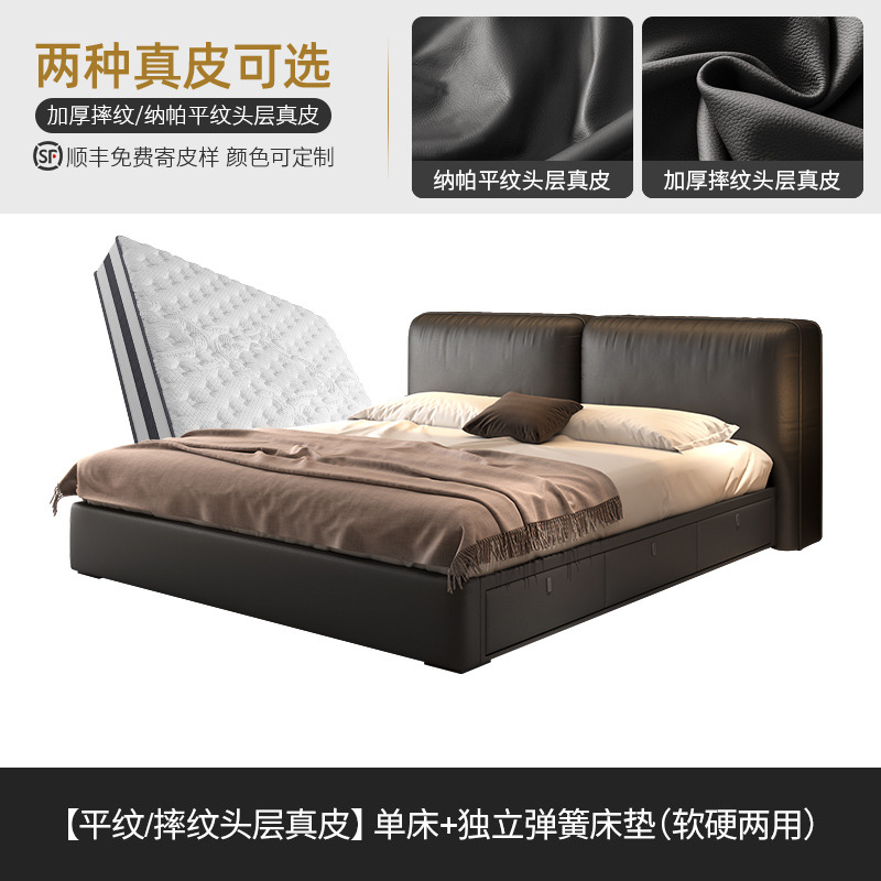 • [일반/플랫 패턴 1층 천연가죽] 싱글 침대 + 독립 스프링 매트리스(소프트 및 하드 겸용)